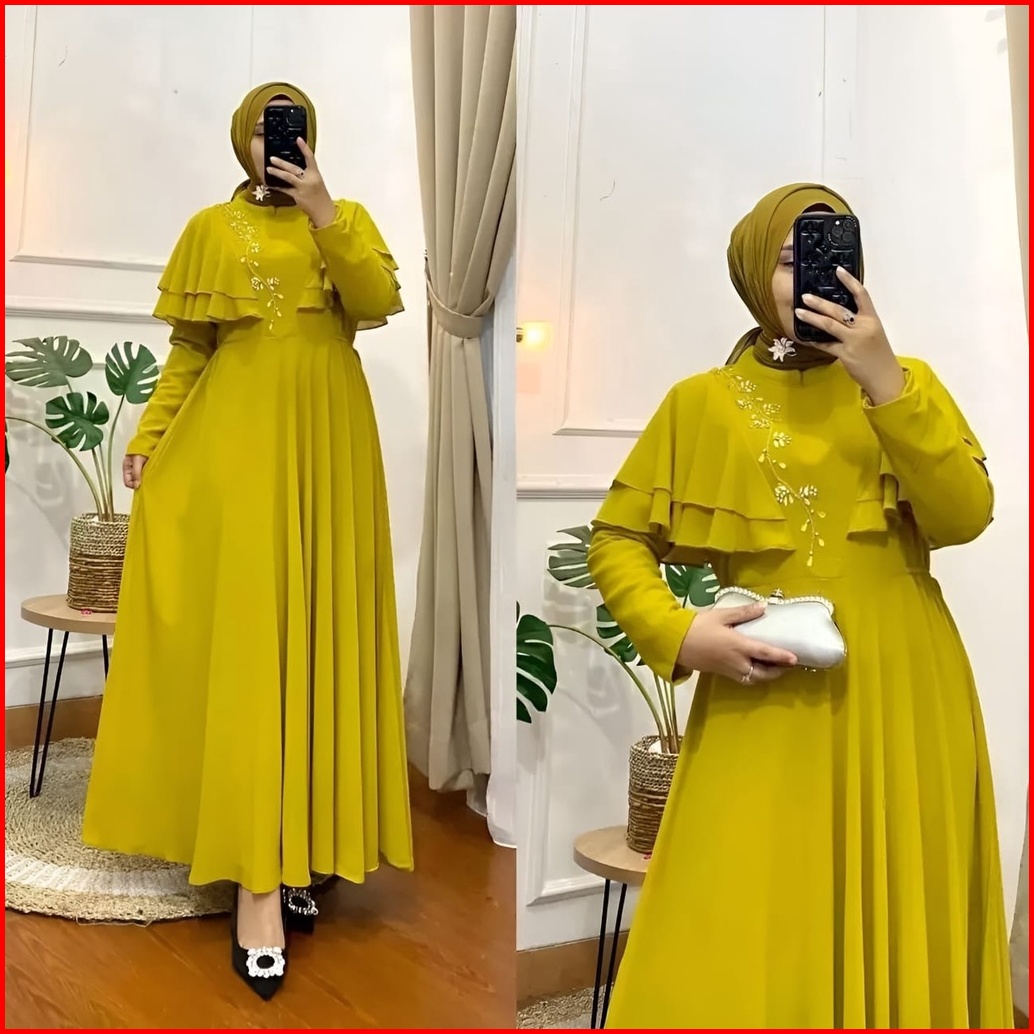 R.a - Arvika Maxy Gamis Muslim Lebaran Wanita L Dress Kondangan Premium Fit To Xl Besar Fashion Terlaris
