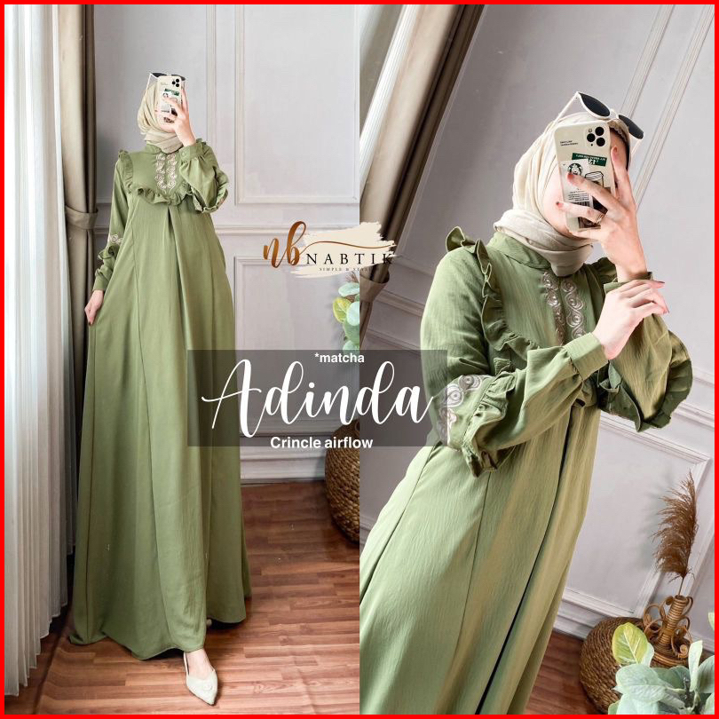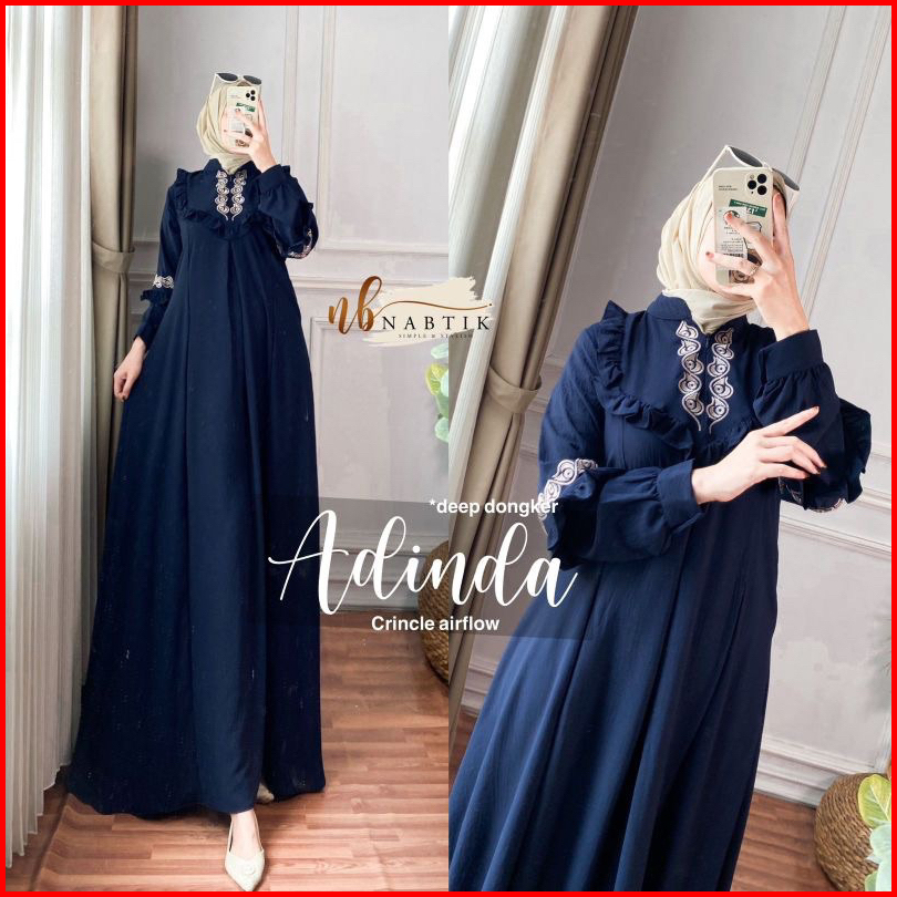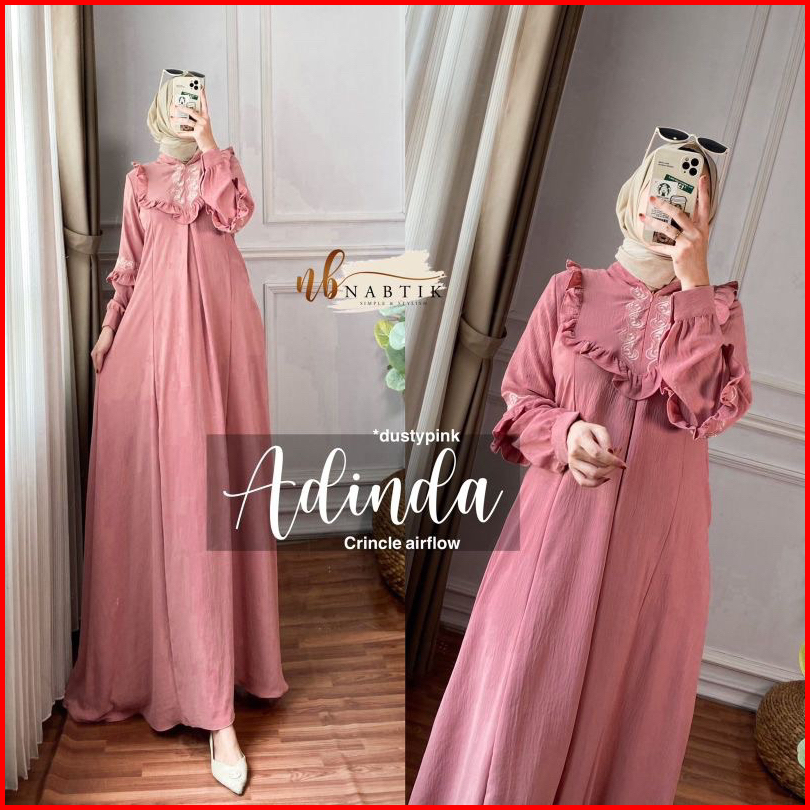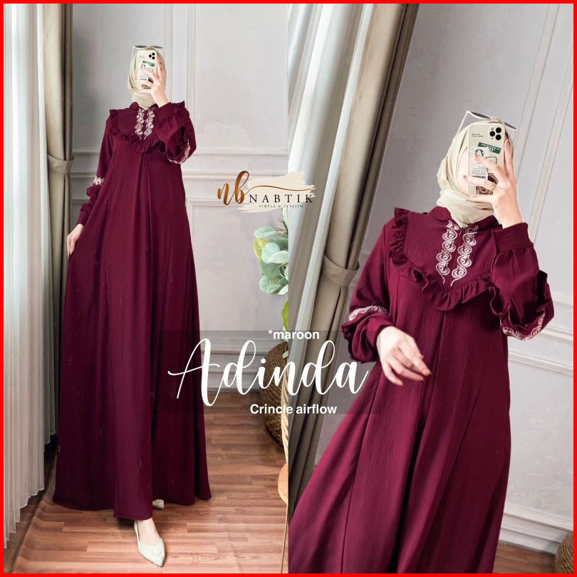 Adinda Dress Maxy Bordir Cringkel Airflow Gamis Bordir Asli