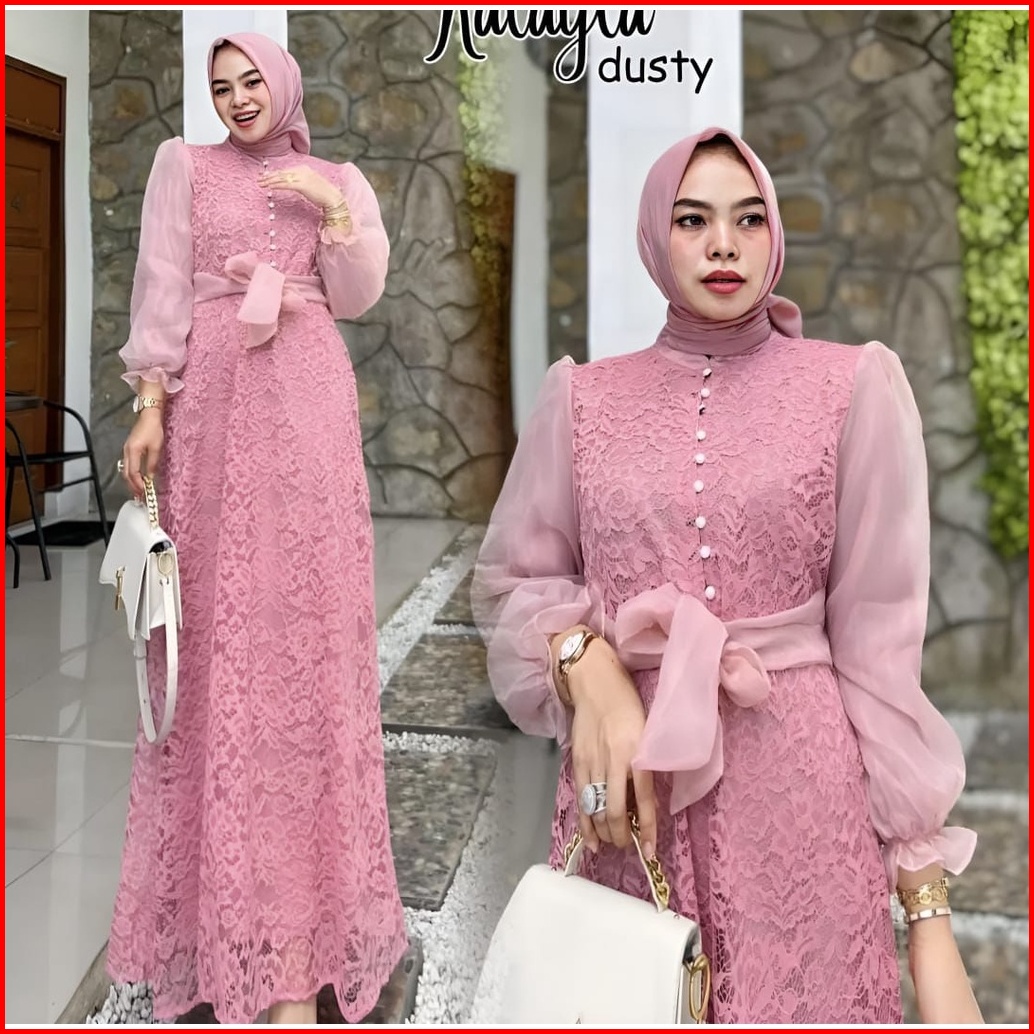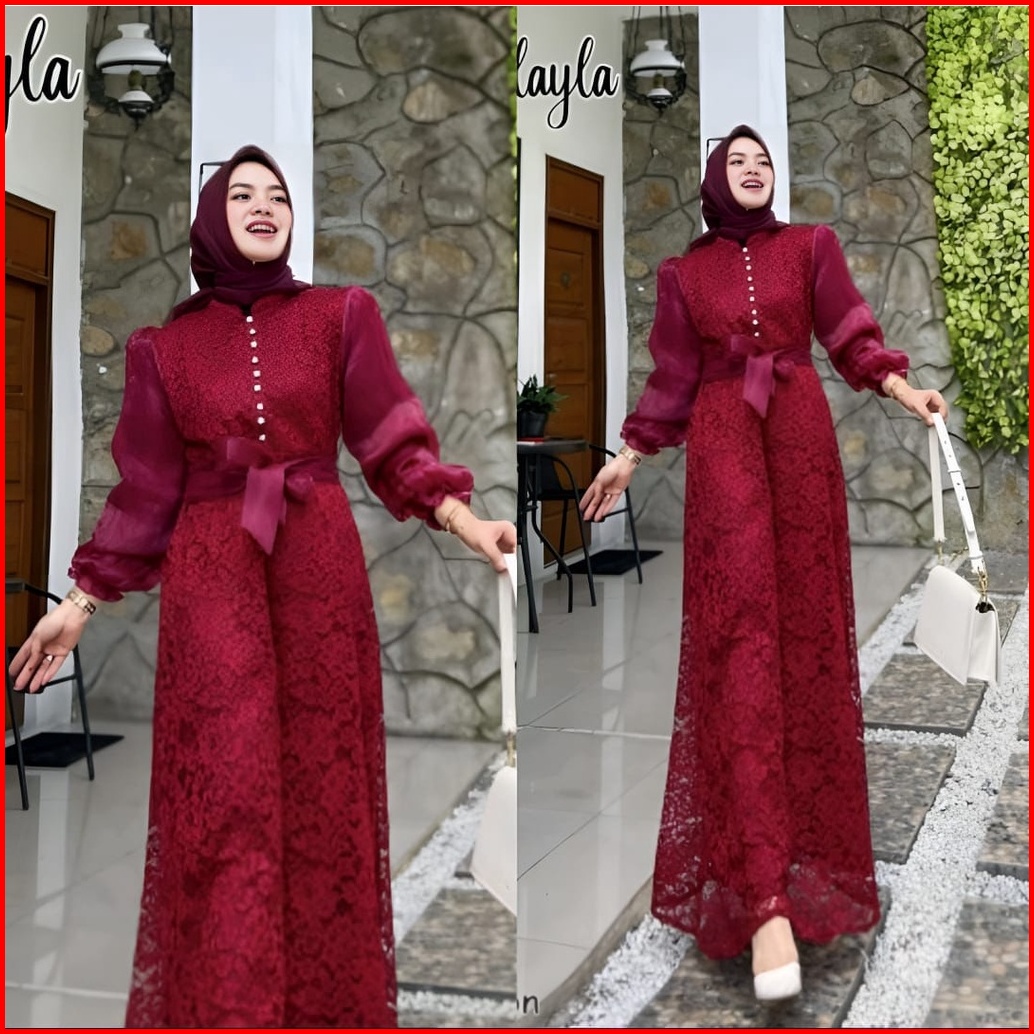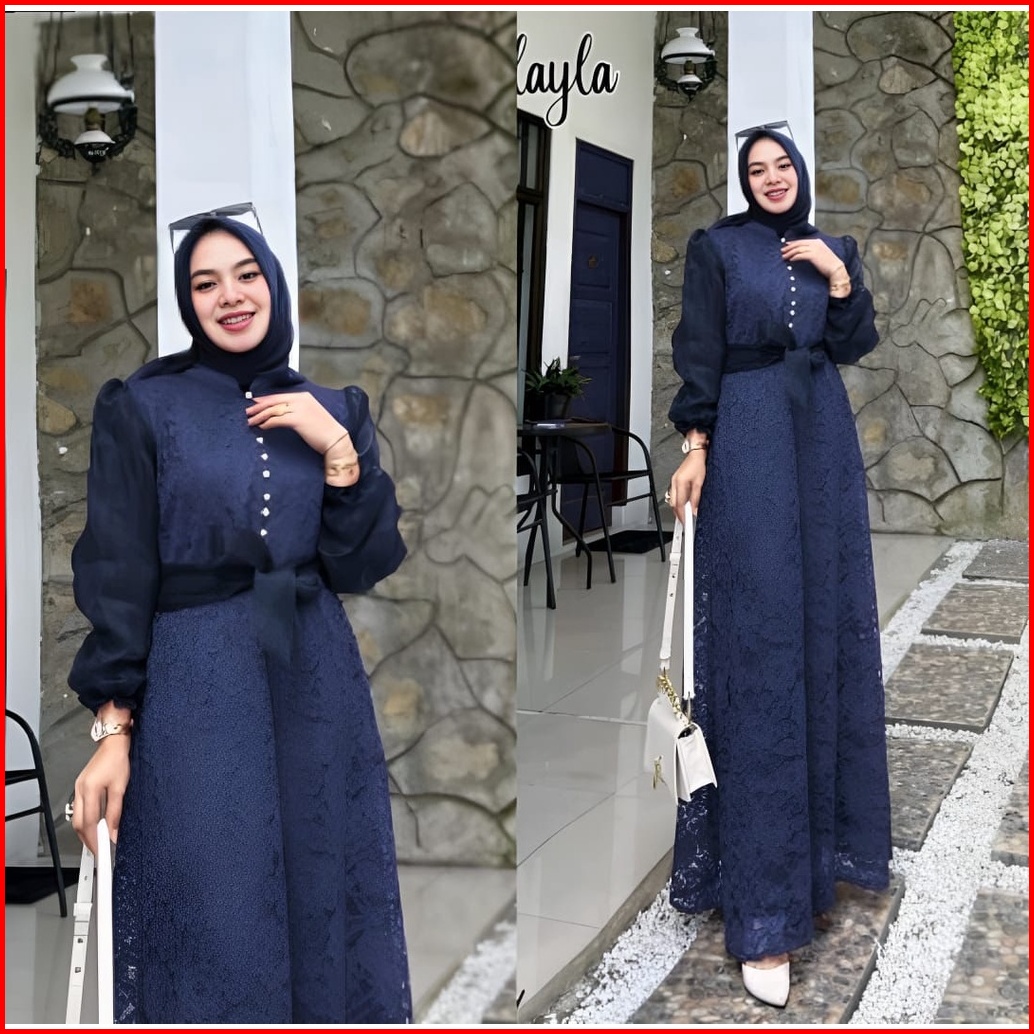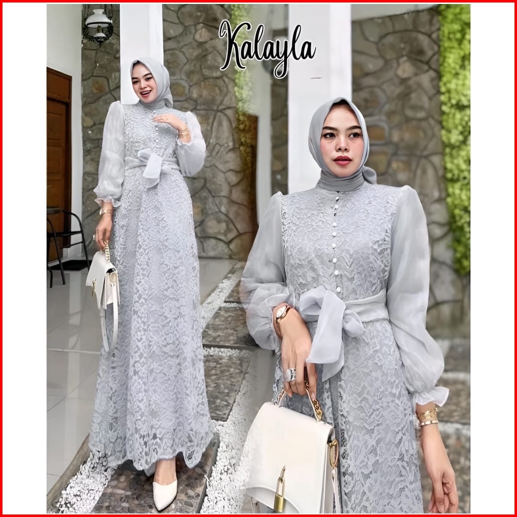 Vallina Outfit - Kalayla Dress Maxy Gamis Muslim Wanita Gaun Pesta Kondangan Matt Brukat Tulang Premium Korean Style