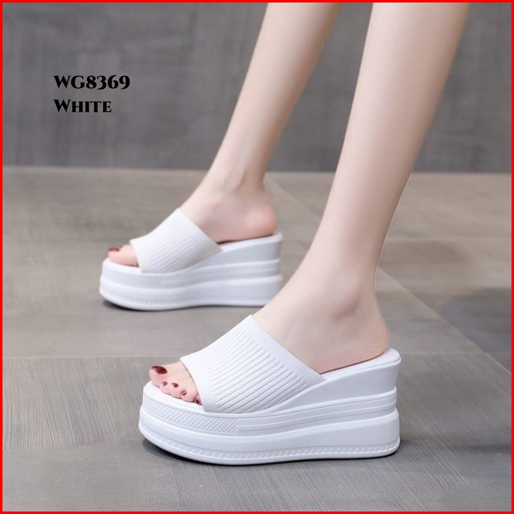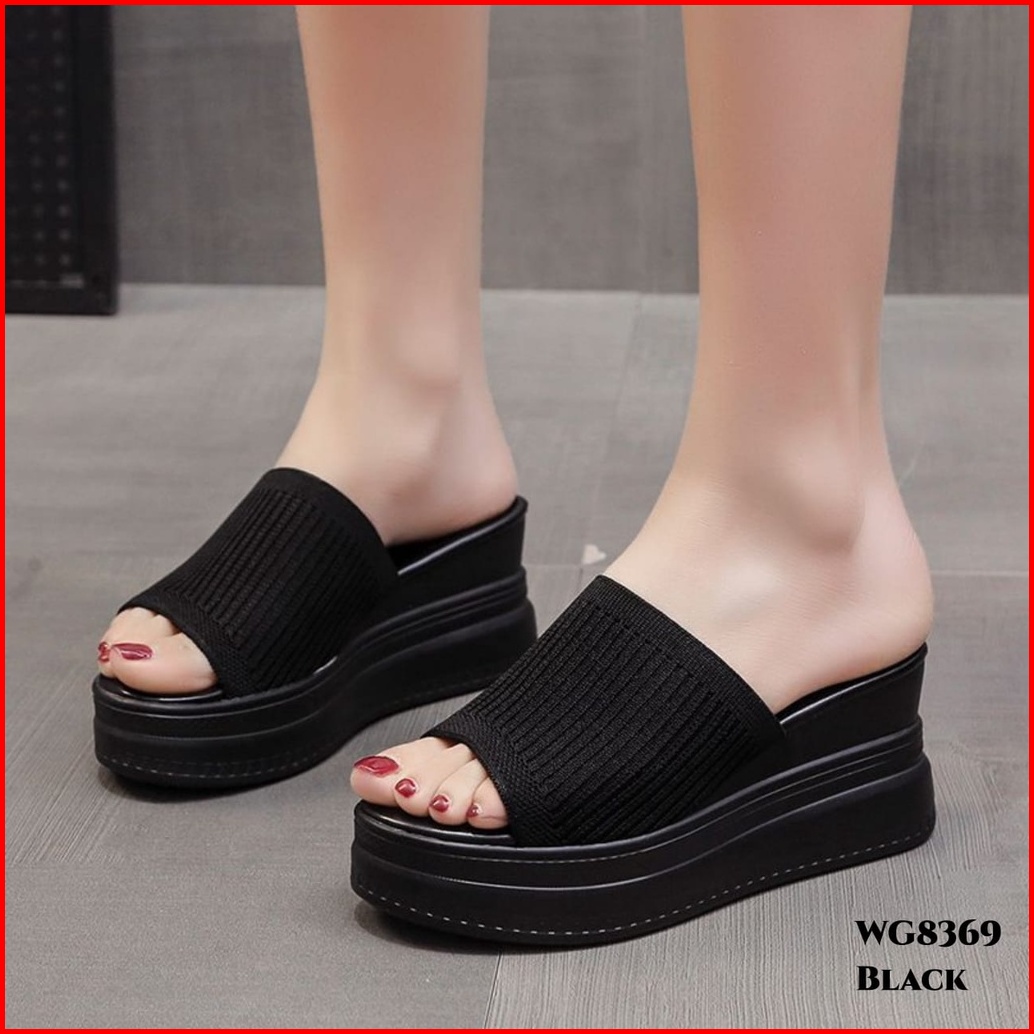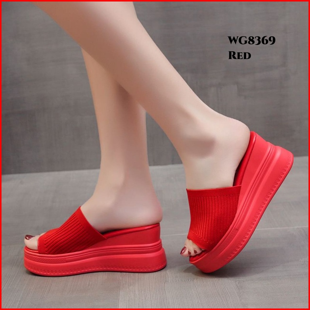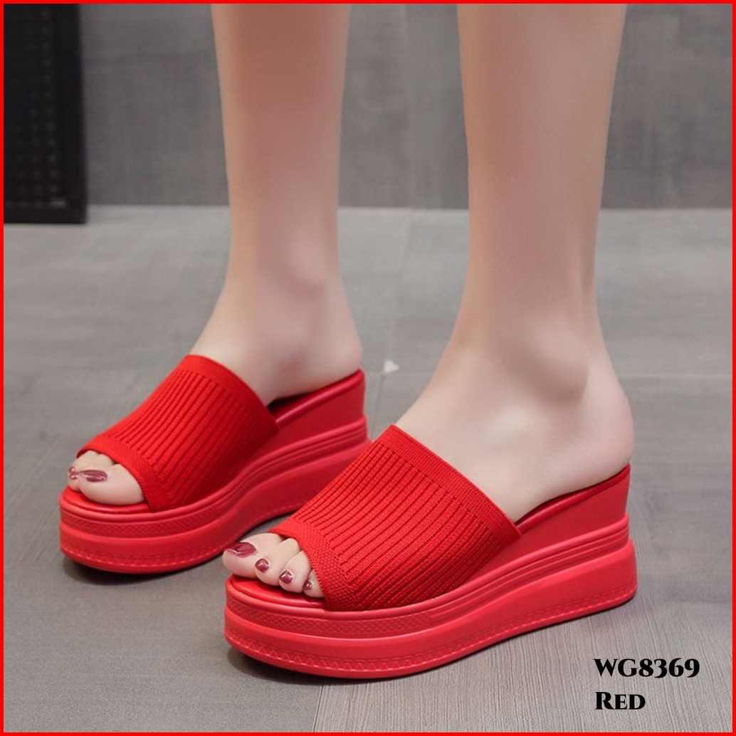 Wyn Sandal Wedges Highsole Tinggi 7.5cm Black Red White Uk 36-40 Korea Canvas Shoes Wg8369