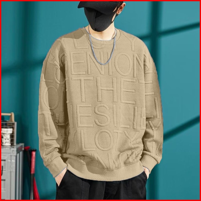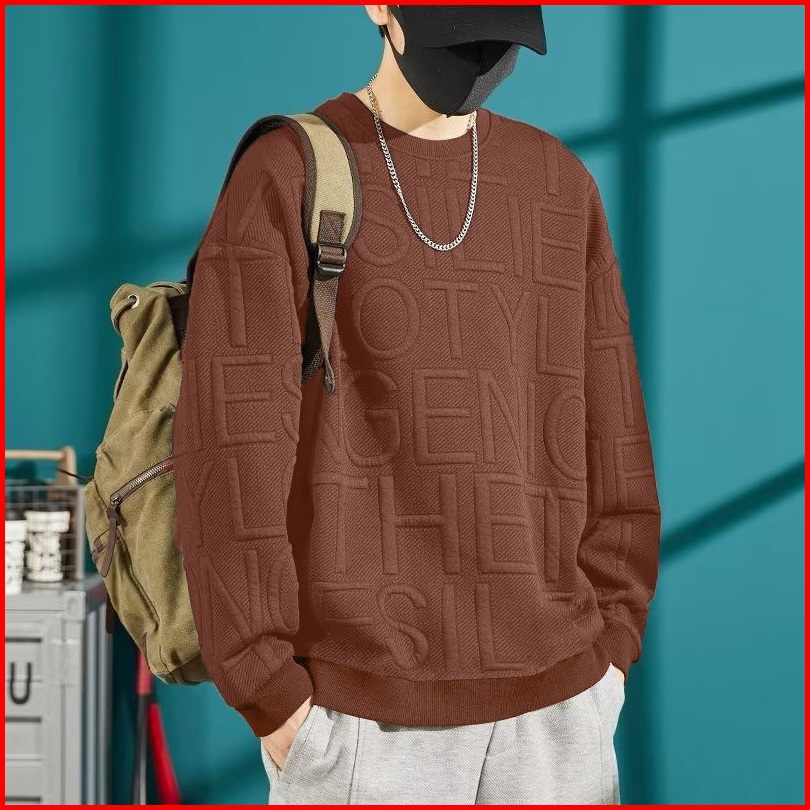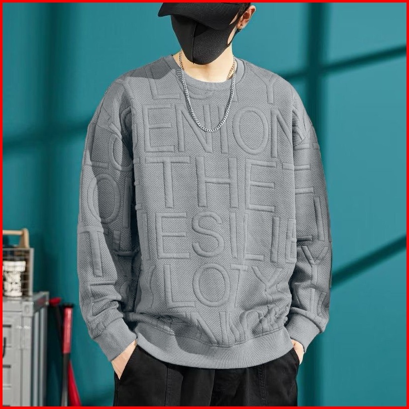 Mokokomo - T-shirt Sweater Pria Deris Motif Embos Atasan Oversize Big Size Baju Premium Korean Style