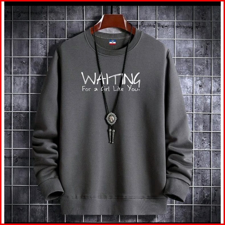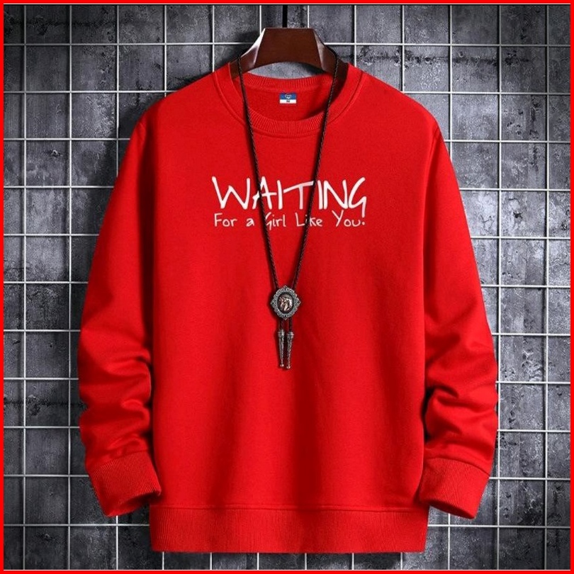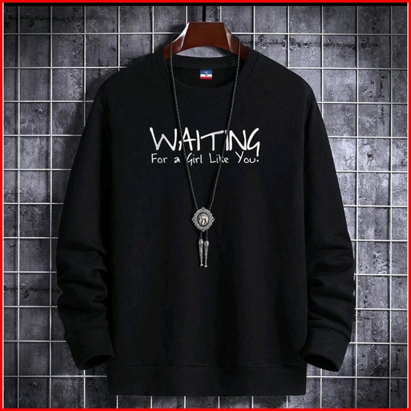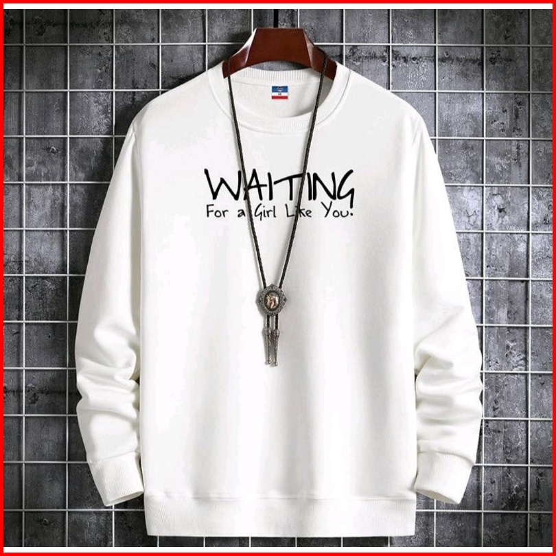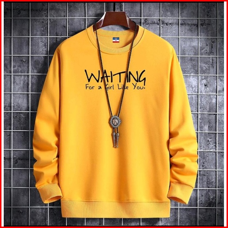 Sweater Crewneck Waiting Basic Pria Wanita Crewneck Termurah