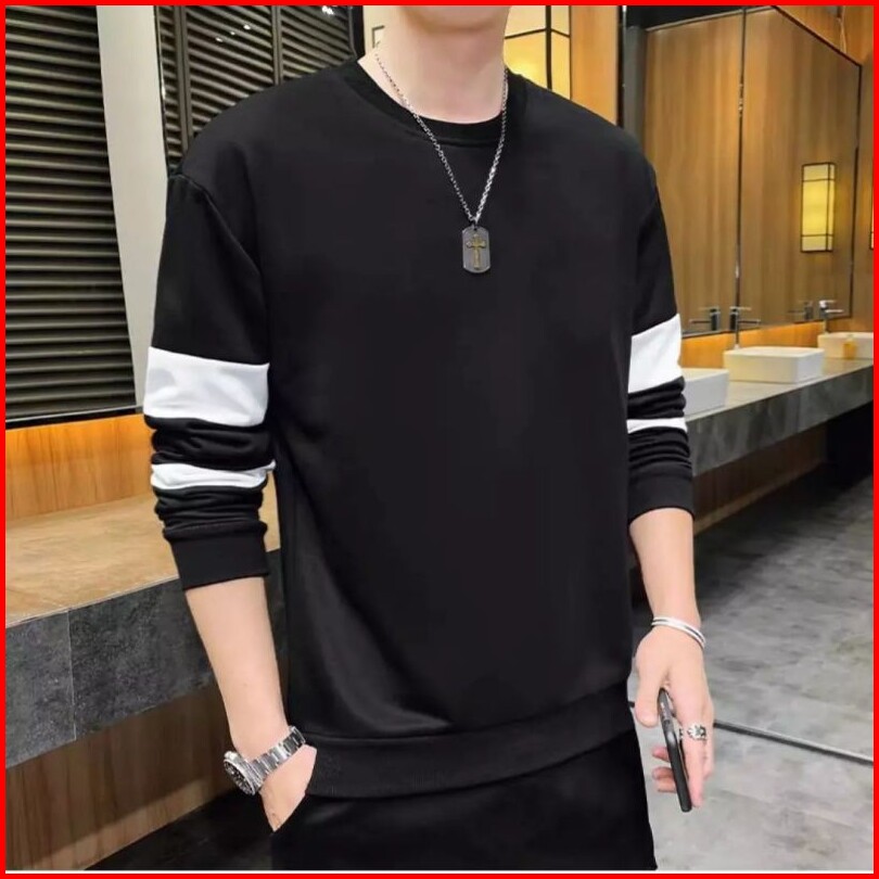 Baju Pria Lengan Panjang Kombinasi Murah Real Pict Kaos Distro Sweatshirt Kaos Pria