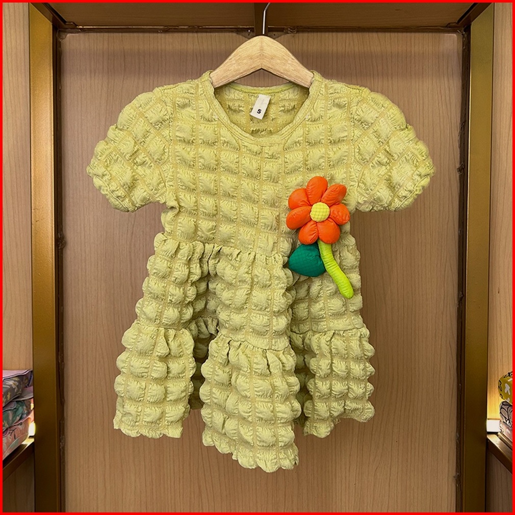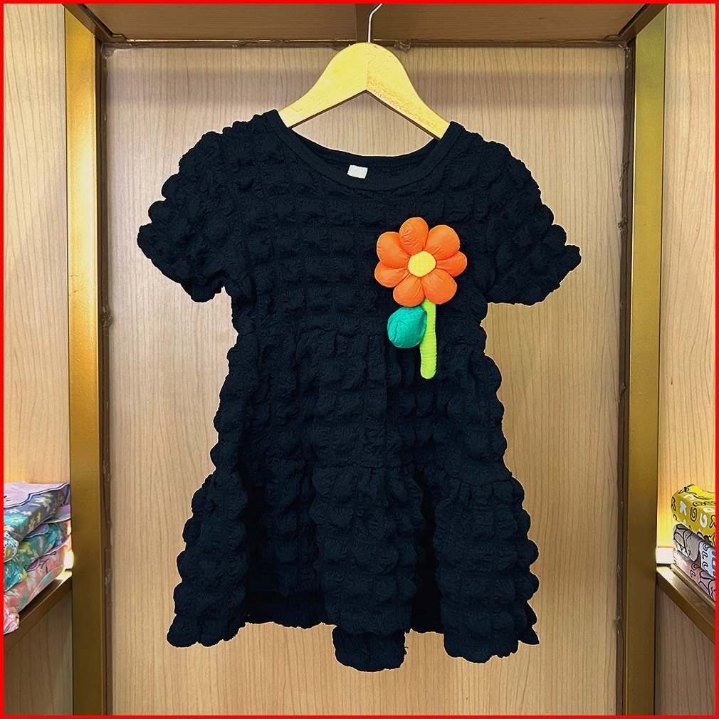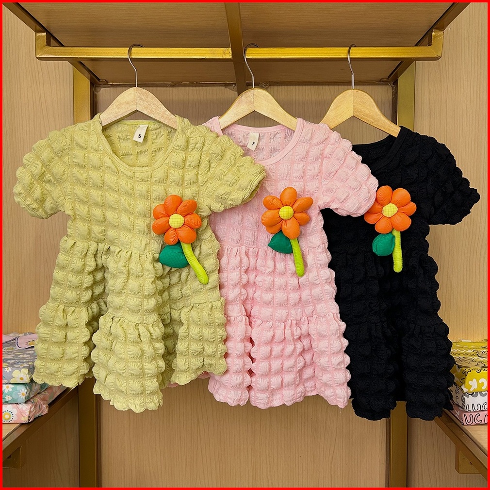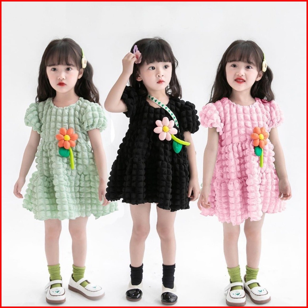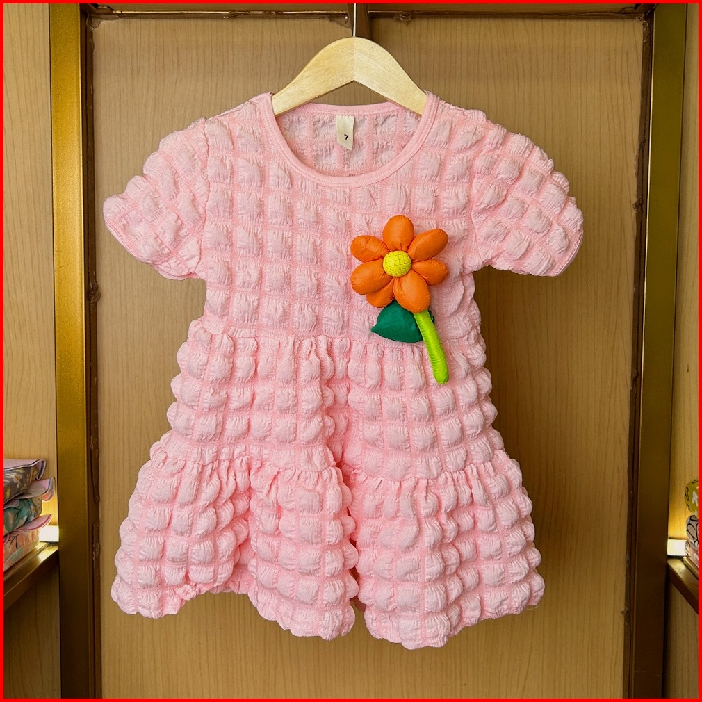 Twinkle Dress Anak Perempuan Lengan Pendek Bahan Crinkle Motif Polos Korean Style Usia 1-4 Tahun