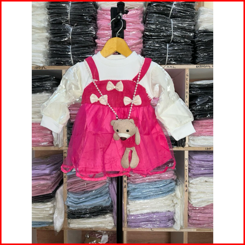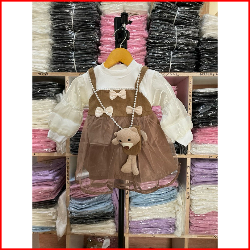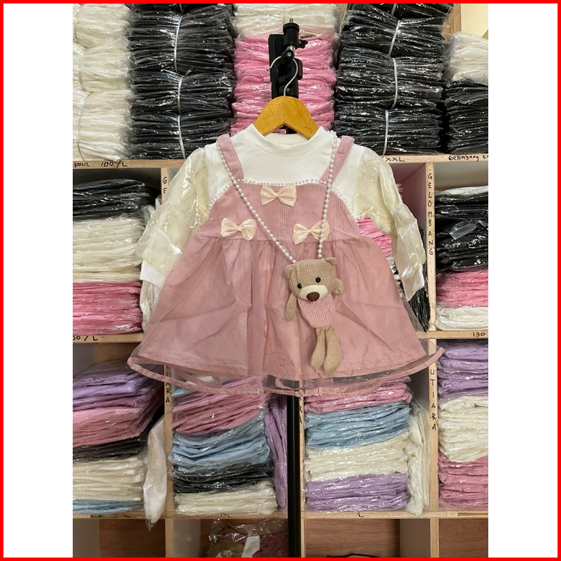 Inesra - Dres Cantik Anak Perempuan Import Premiun Free Tas Boneka Dres Usia 0-4 Th