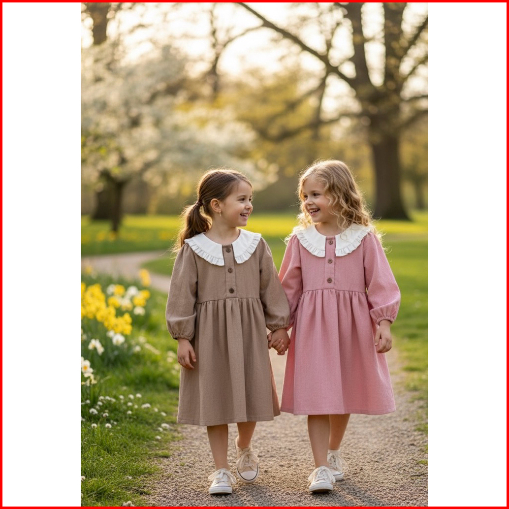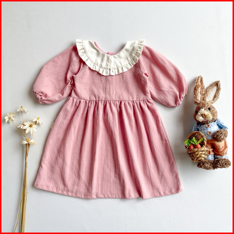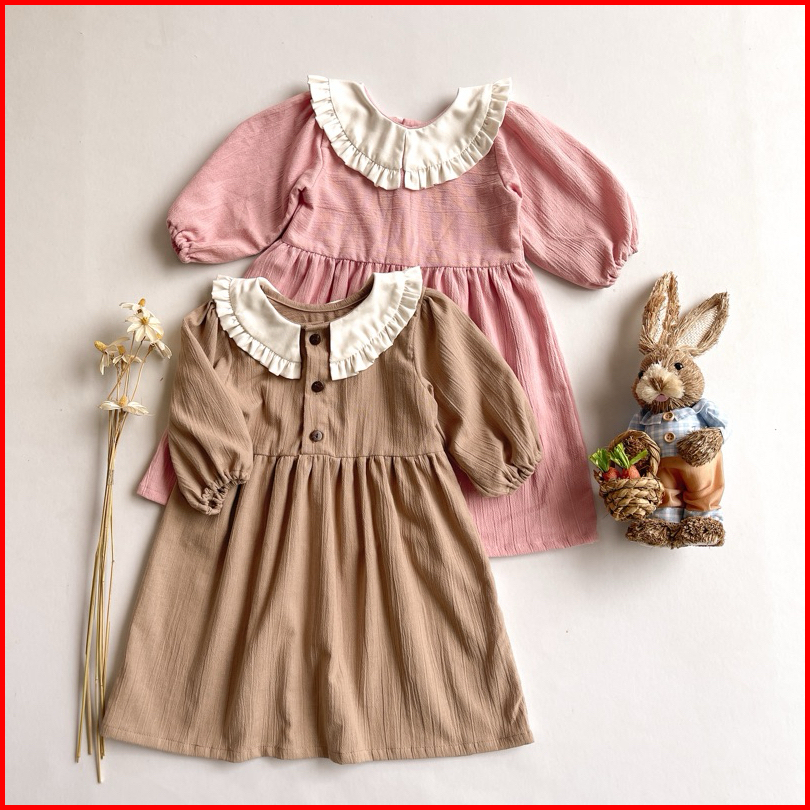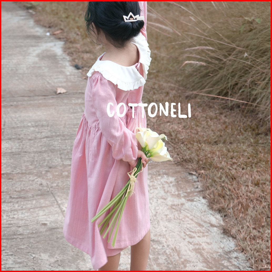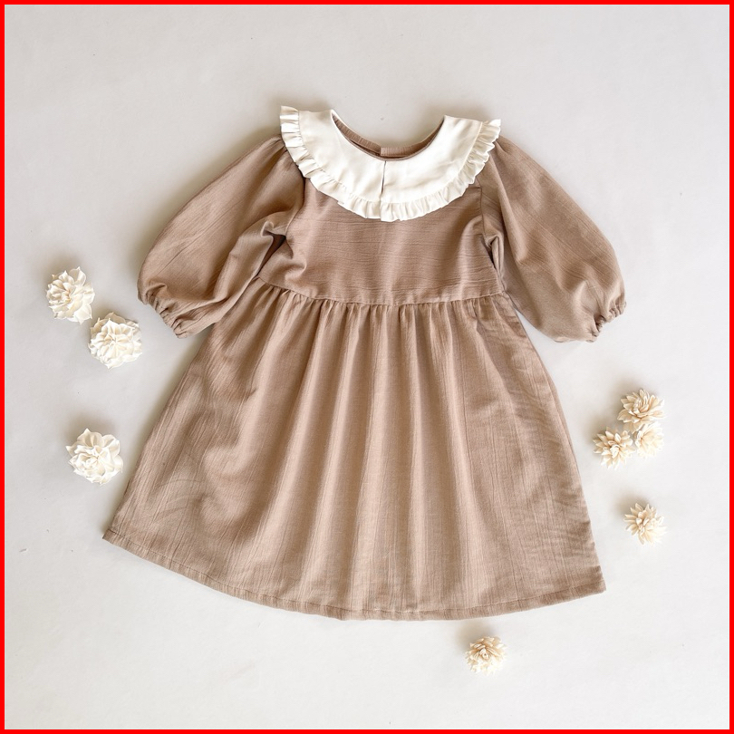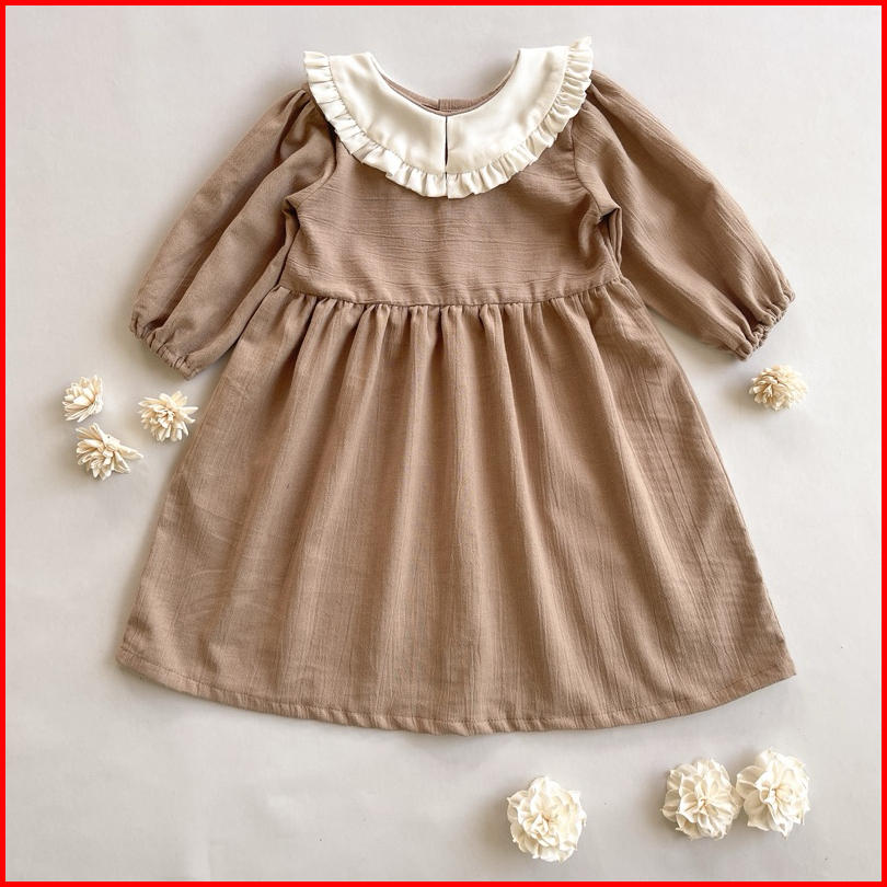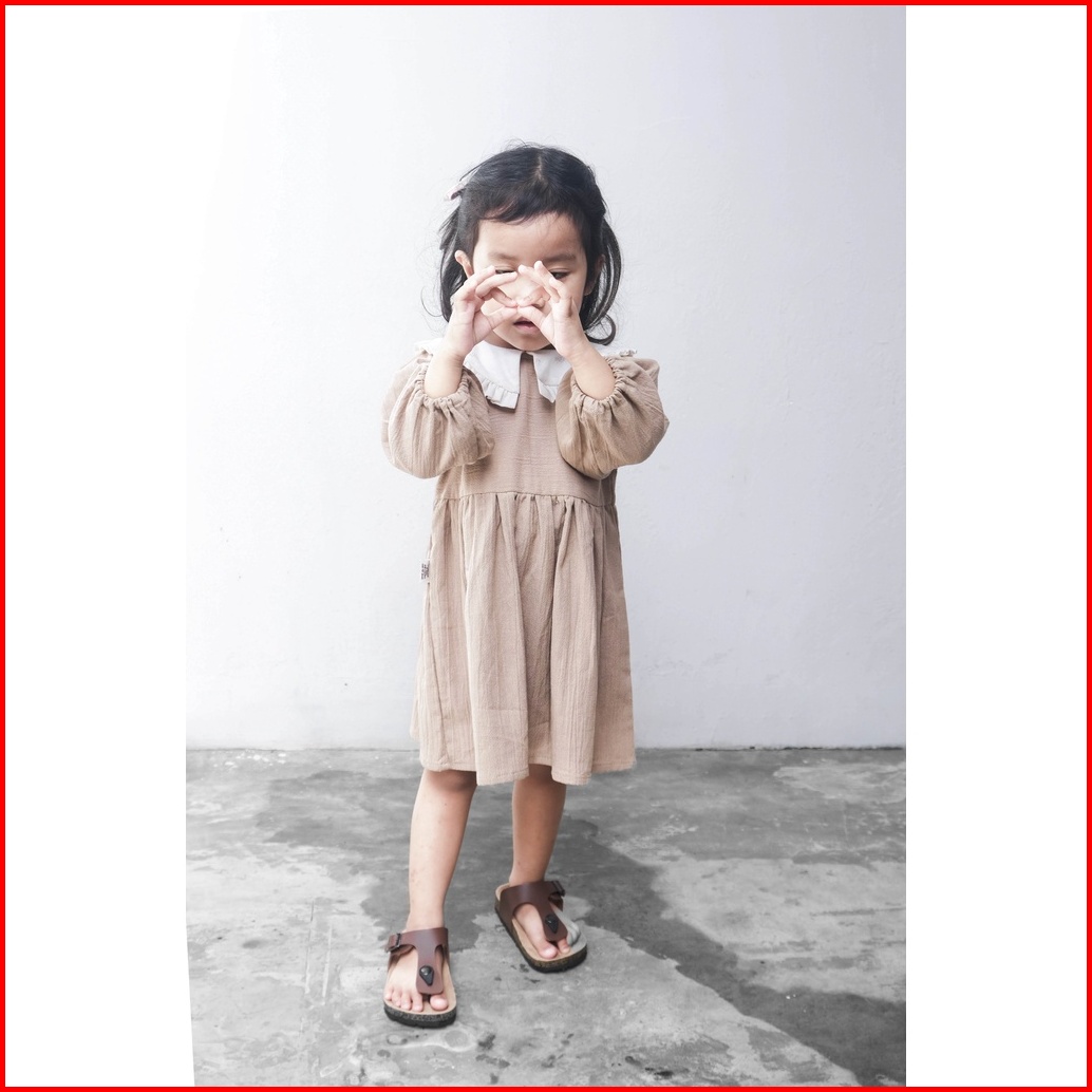 Ema - Dress Anak Kerah Korea Peterpan Collar Linen Lengan Panjang Krem Cream Hitam Kado Ulang Tahun Bayi Murah