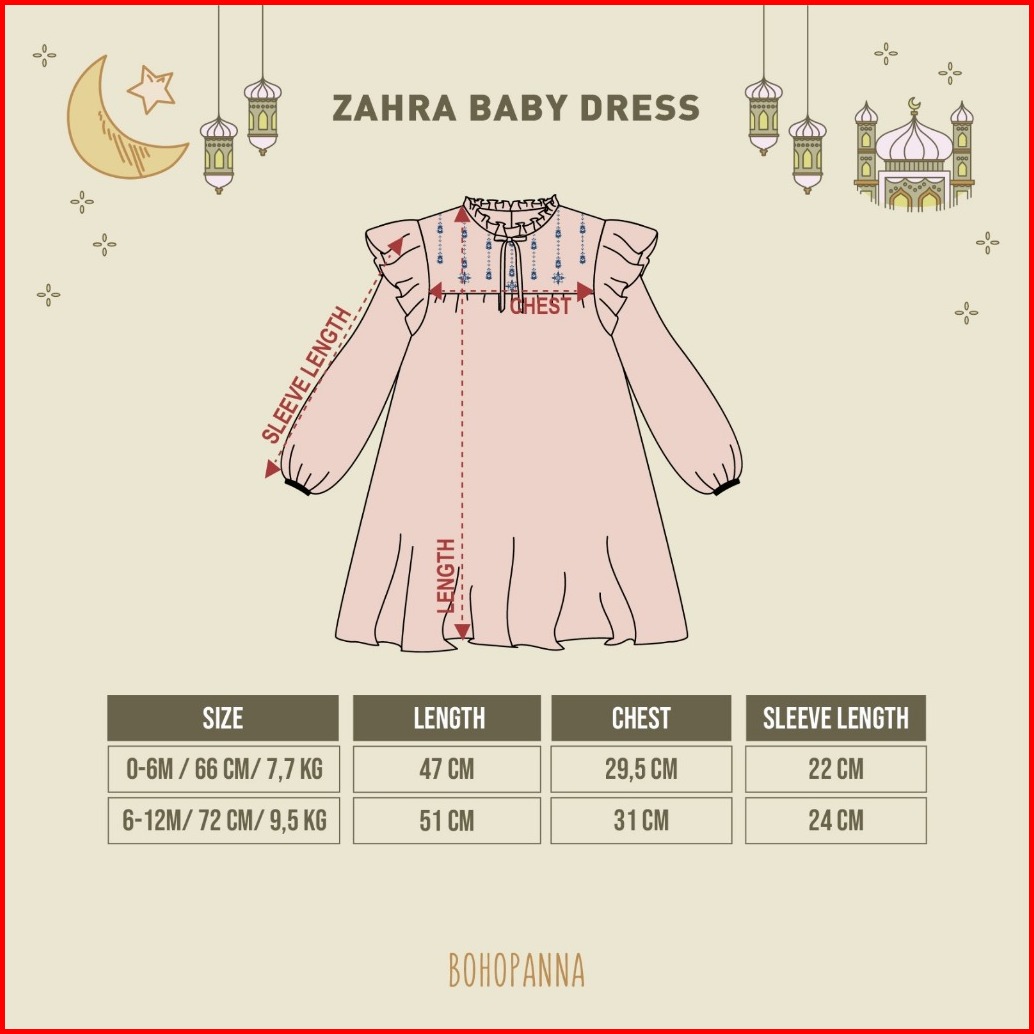 Bohopanna - Raya Collection - Zahra Baby Dress - Dress Muslim Anak - Baju Muslim Anak Perempuan - Dress Anak Perempuan -