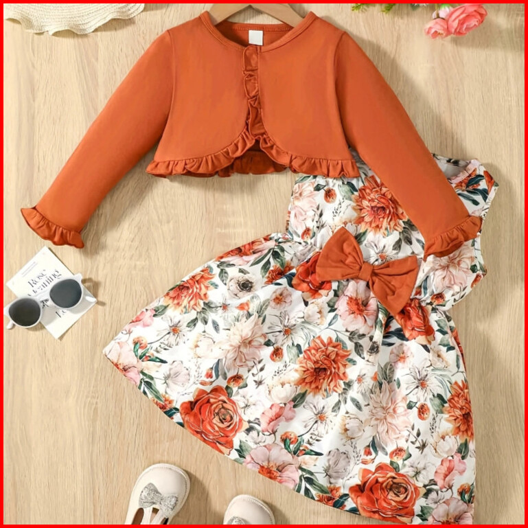 Haasya Kids 4-7years Local Clothes Ready Stock Baju Budak Perempuan Tahun Birthday Dress Budak Perempuan Suit 2pcs Flowe