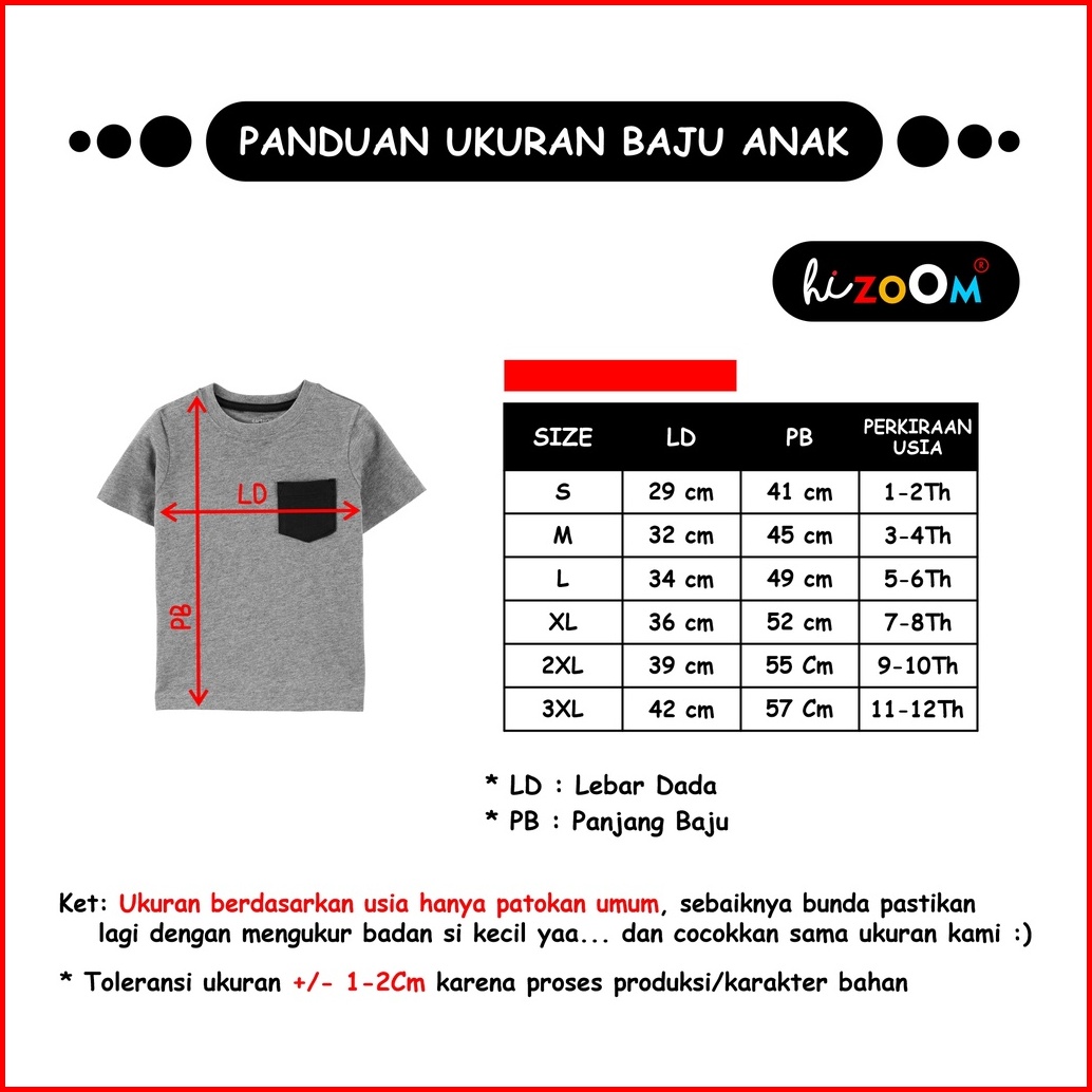 Hizoom Baju Kaos Distro Oblong Anak Laki Laki Usia 1-12 Tahun Bahan Katun