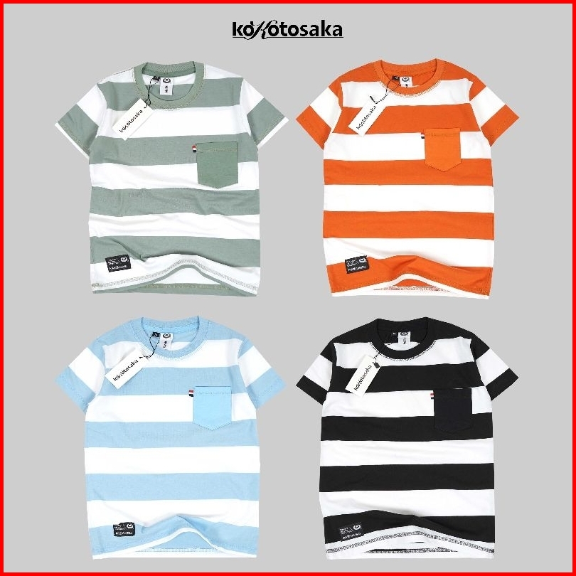 Kokotosaka Kaos Motif Salur Anak Laki-laki Lengan Pendek Baju Distro Anak Laki-laki Motif Salur Umur 1-12 Tahun
