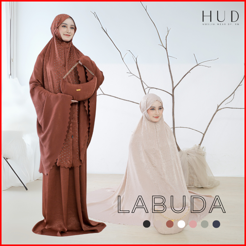 Mukena Dewasa Santorini Silk Premium Motif Swarovski 3in1 Lasercut - Labuda By Hud