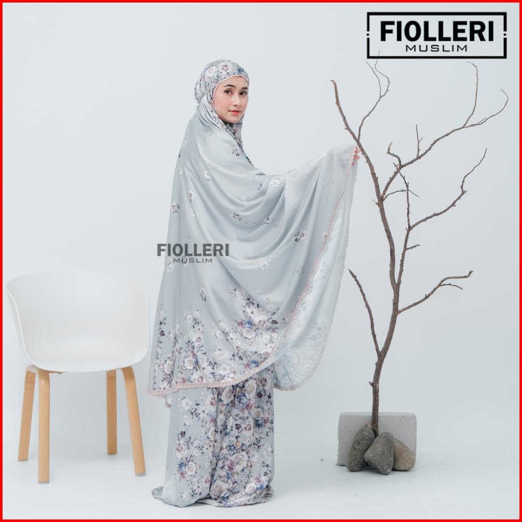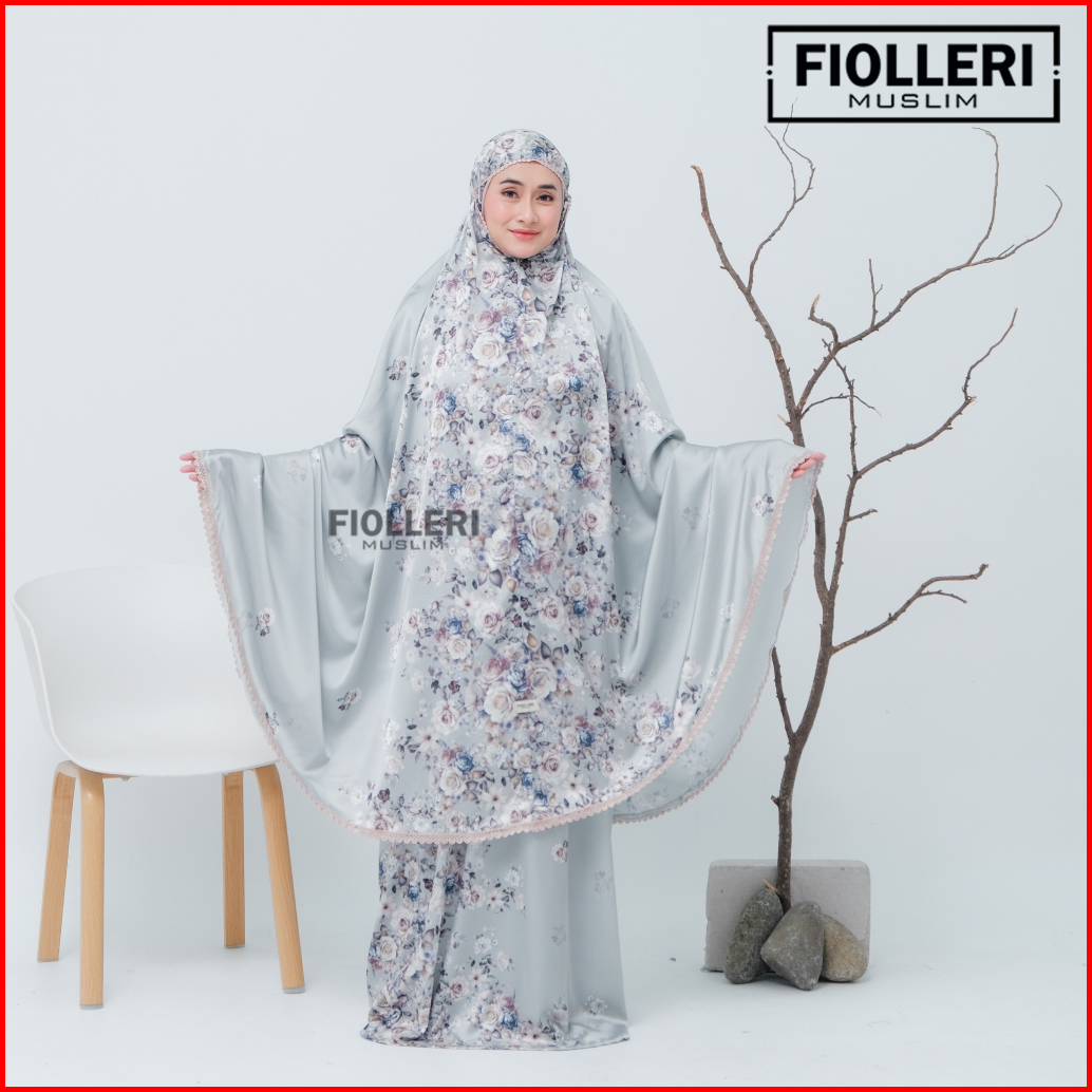 Fiolleri - Mukena Arumi Mukena Dewasa Premium Armani Silk Daily 2in1 Set Tas Cantik Bunga Series I Mukena Jumbo Mewah