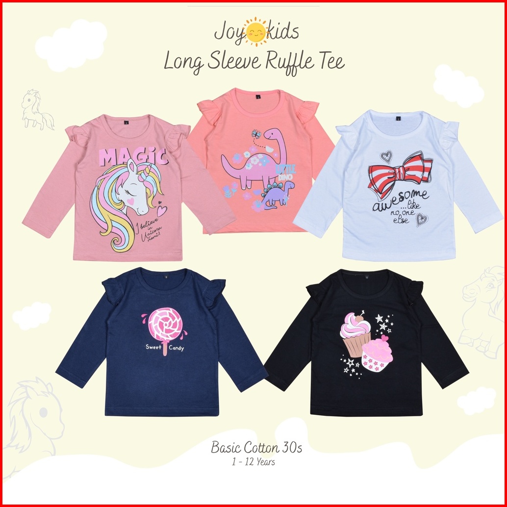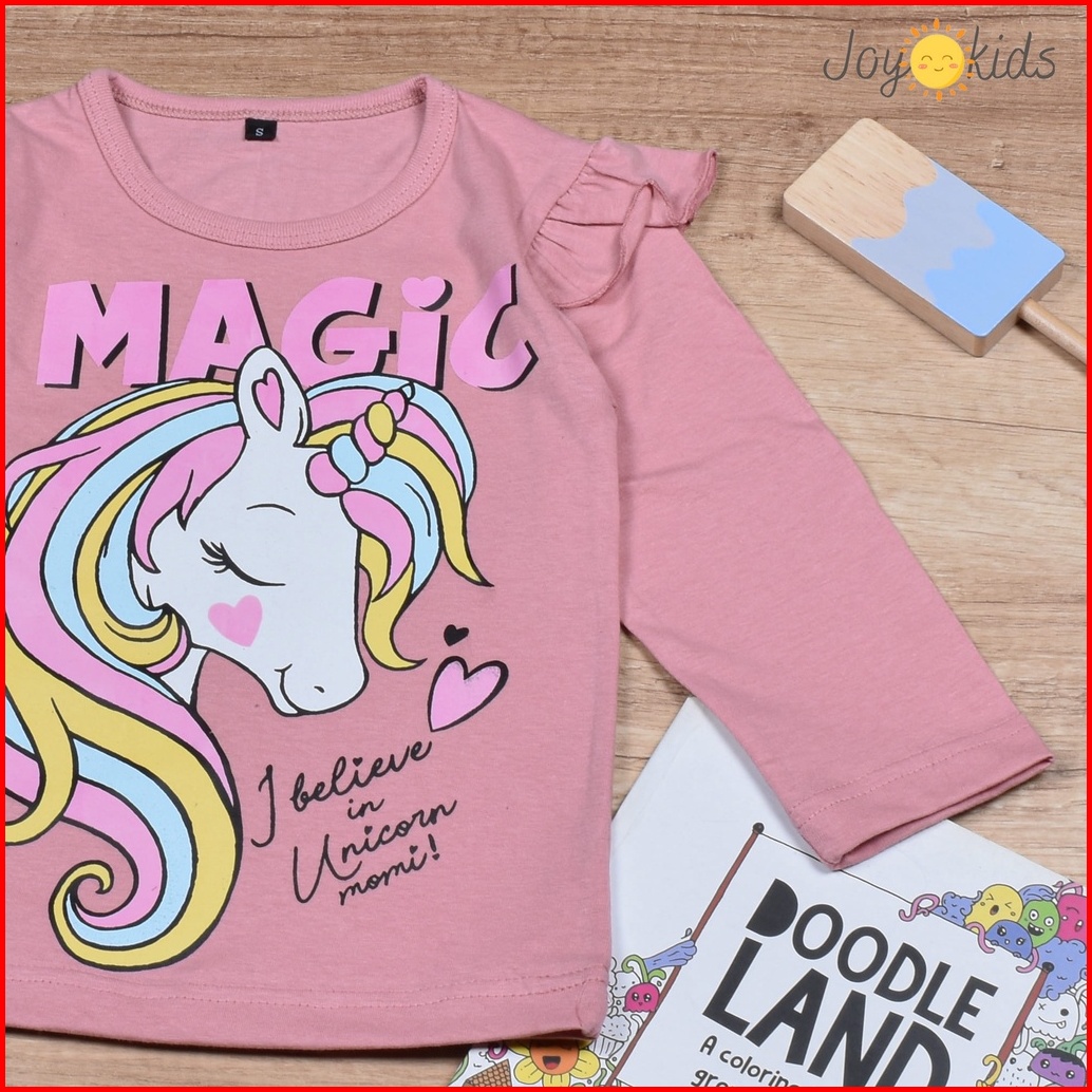 Joy Kids Kaos Atasan Anak Perempuan Lengan Panjang Ruffle Premium Unicorn 1-12 Tahun