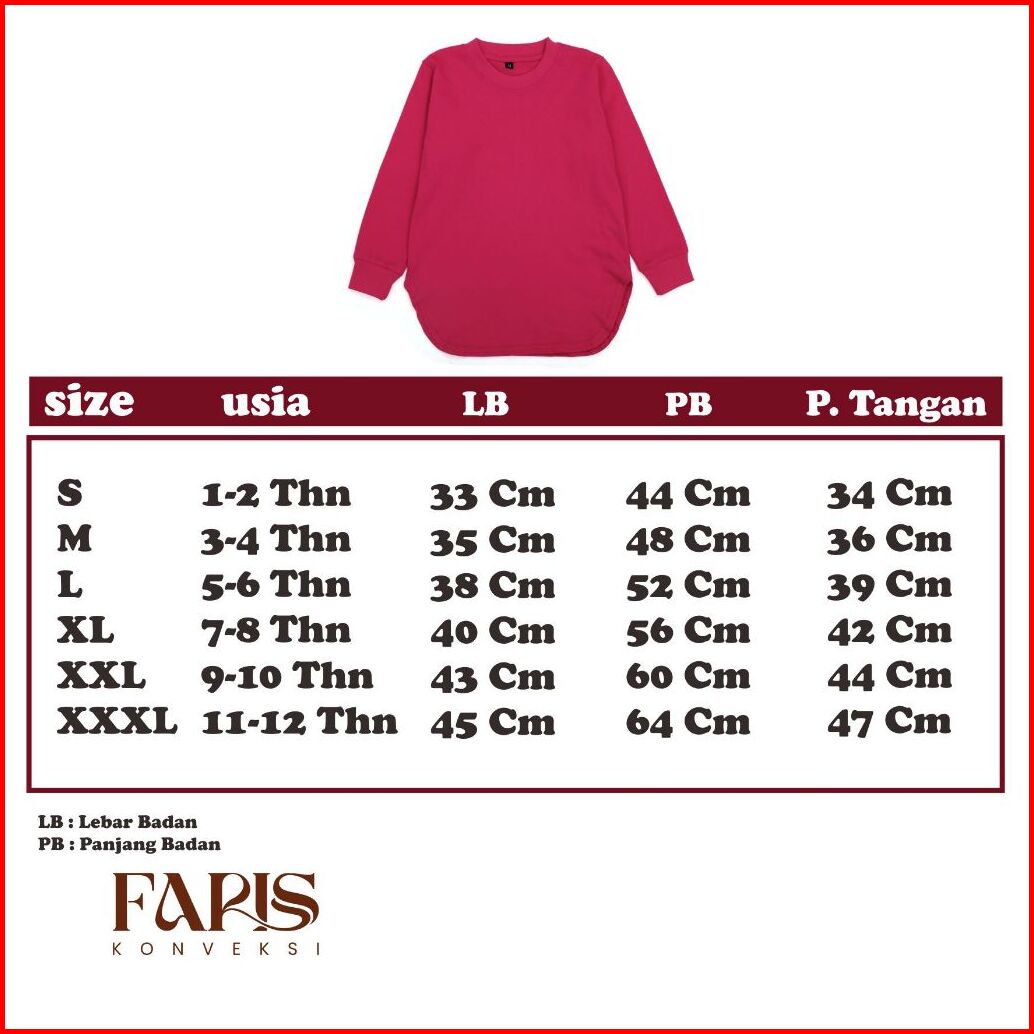 Faris Store24 - Kaos Anak Perempuan Atasan Lengan Panjang Body Style Oval Usia 1-12 Tahun