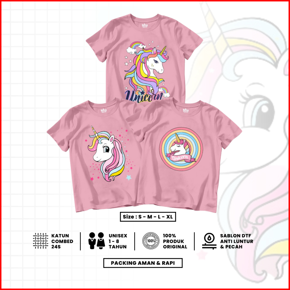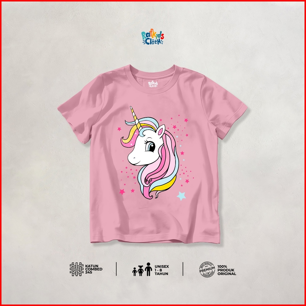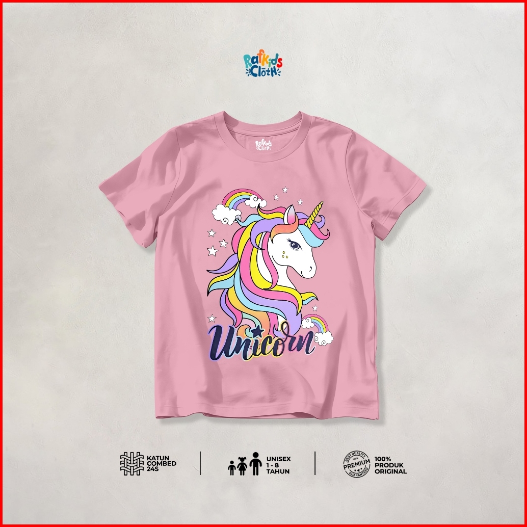 Kaos Anak Perempuan Lengan Pendek Usia 1-8 Tahun Baju Atasan Anak Motif Unicorn Cotton Combed 24s