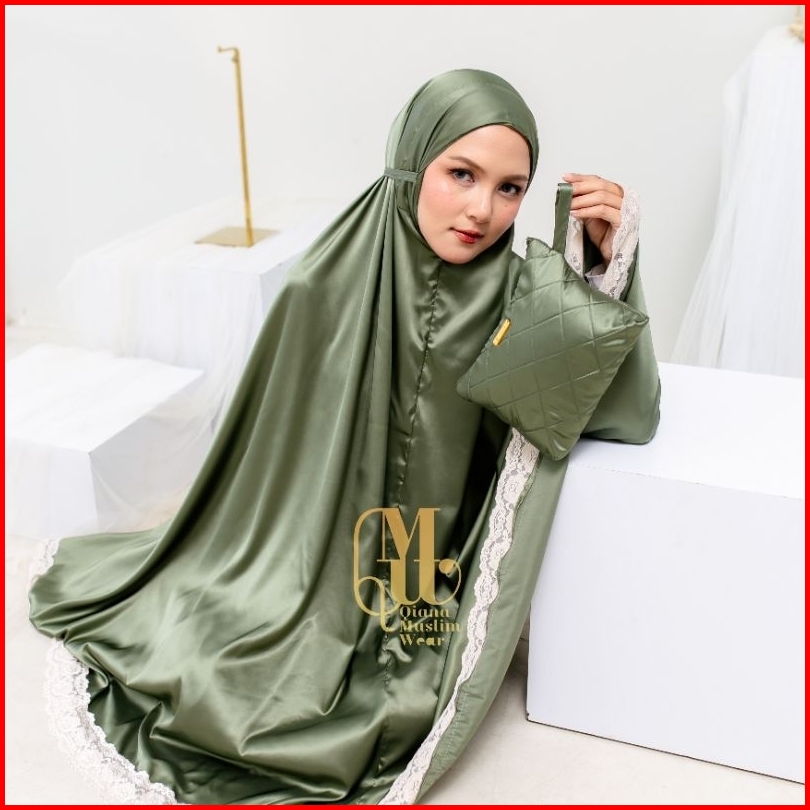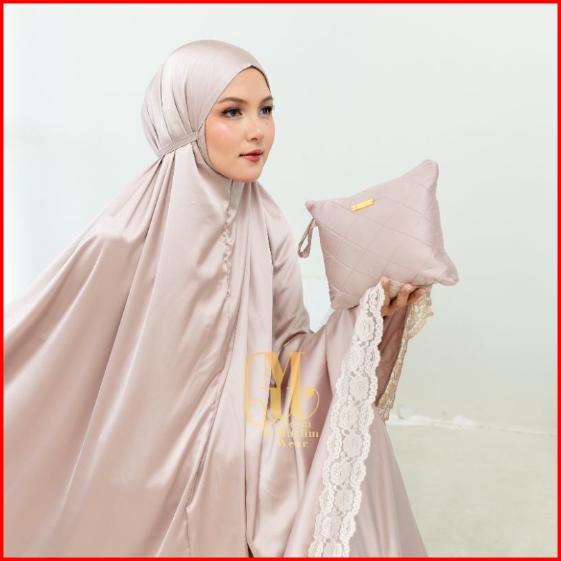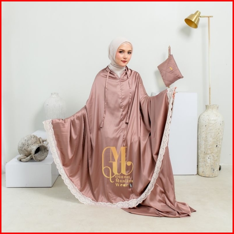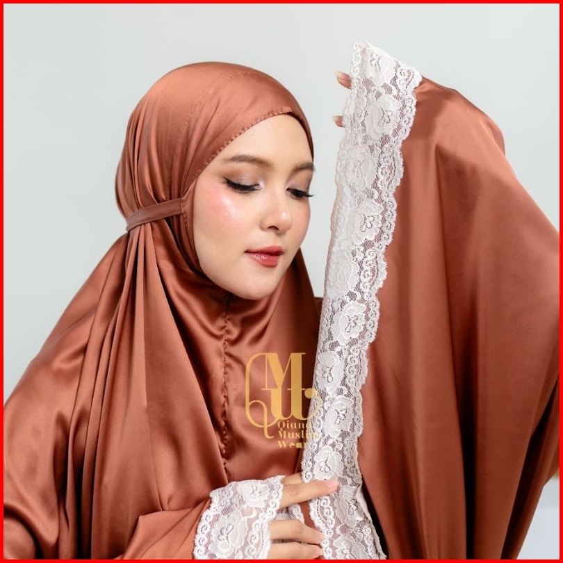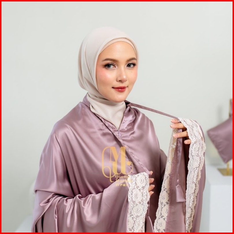 Qmw - Mukena Dewasa Armany Silk Premium Glossy Jumbo 2in1 Renda Brukat Mewah Traveling Seriesmaisara