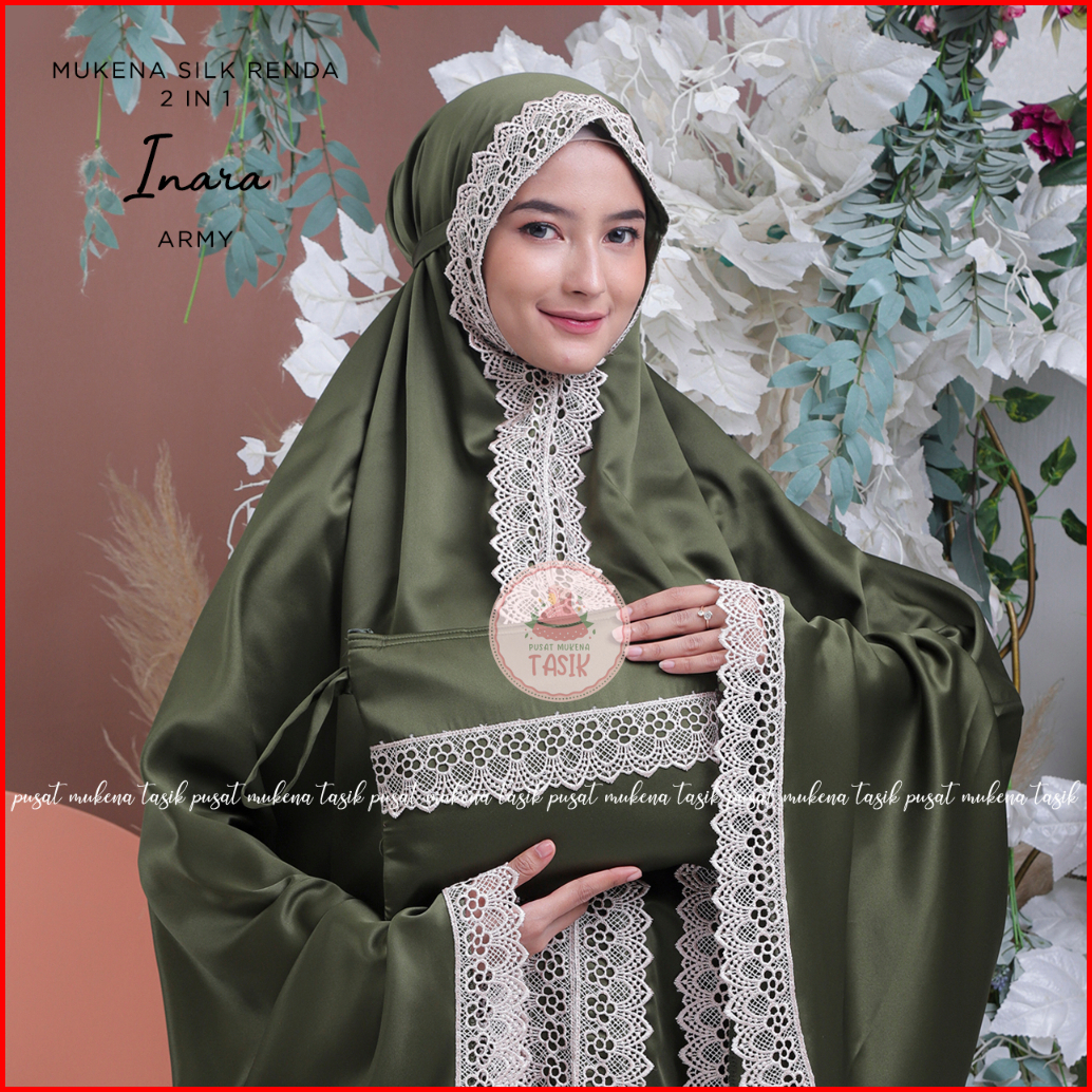 Pusat Mukena Tasik - Mukena Dewasa Renda Silk 2 In 1 Inara