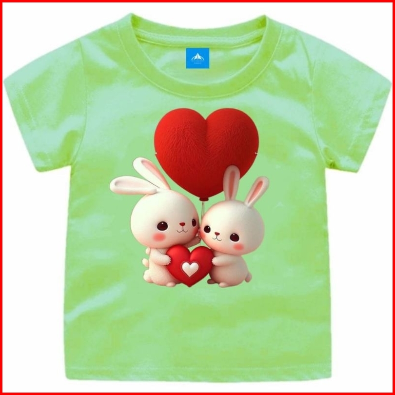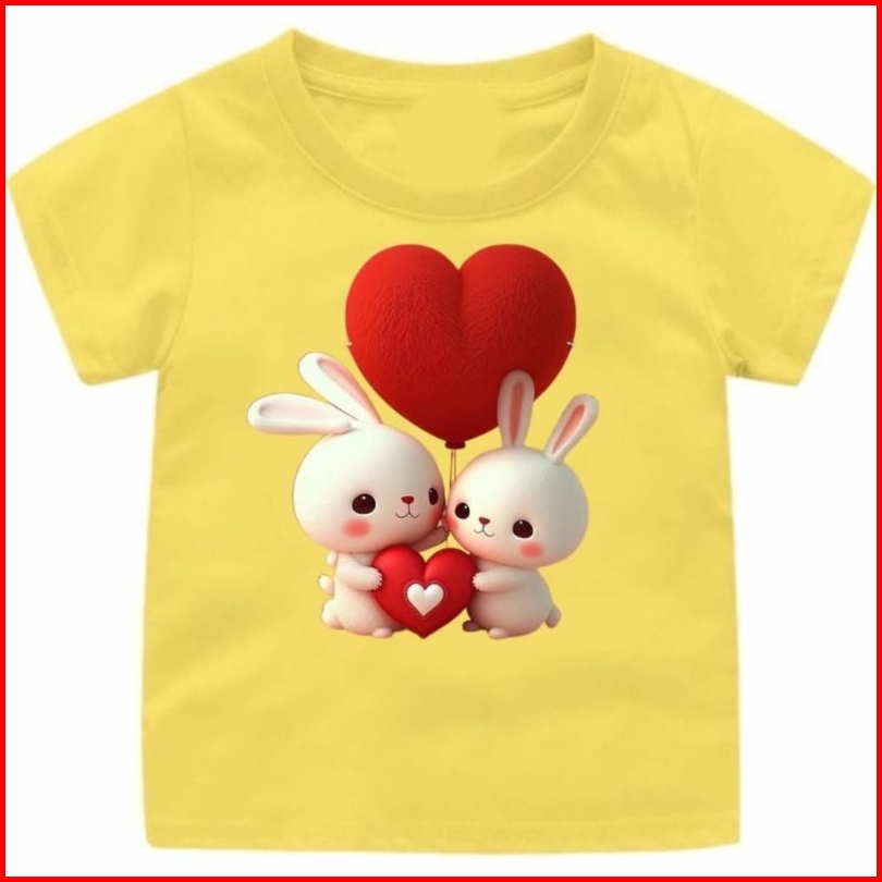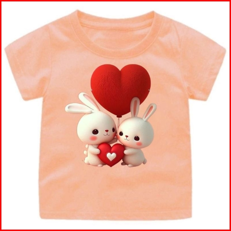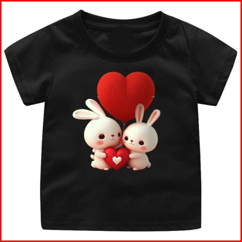 Kaos Oblong Anak Gambar Kelinci Love Merah Usia 1-12tahun