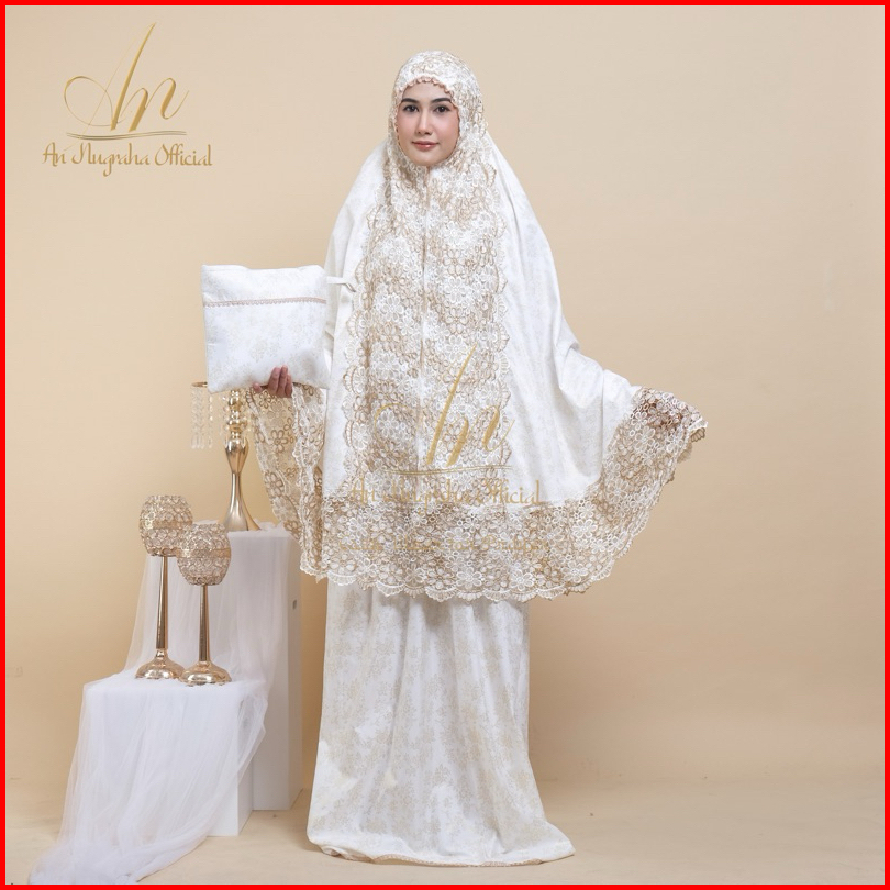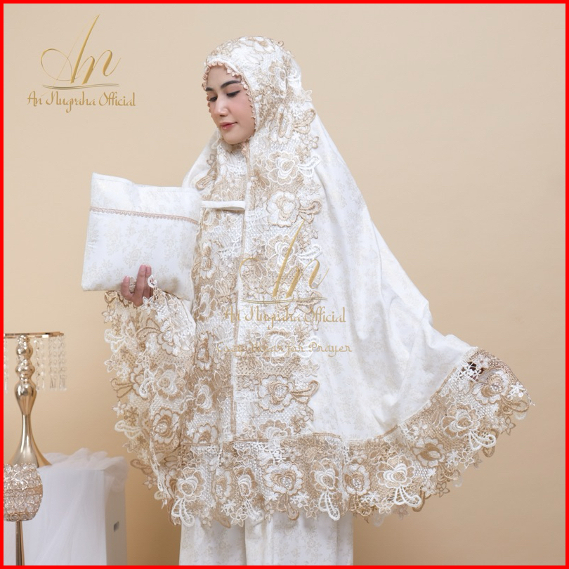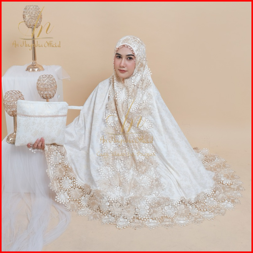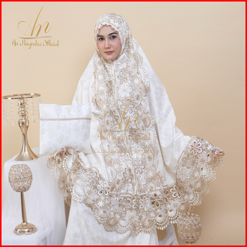 Mukena Dewasa Katun Foil Renda Giper Twotone Prada Mewah