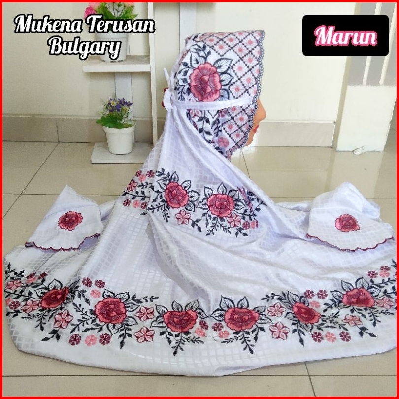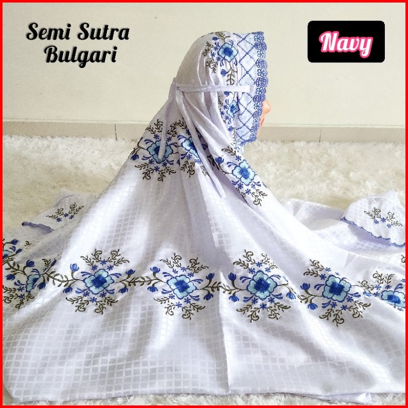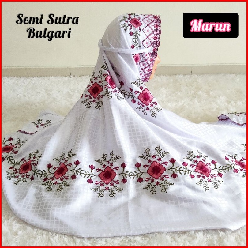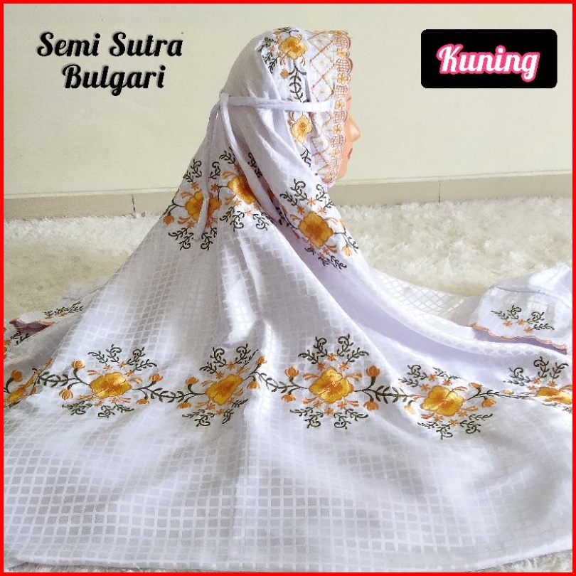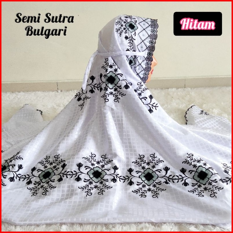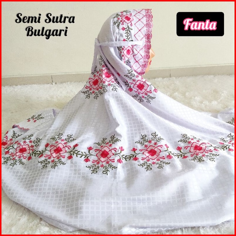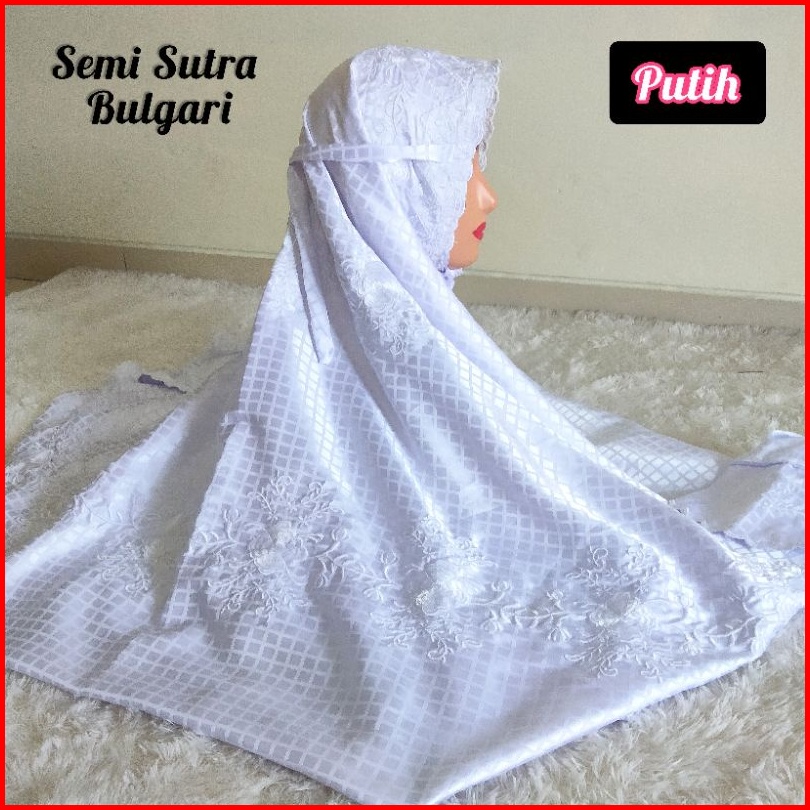Mukena Bordir Sutra Bulgari Terusan Lajuran Dewasa Mukenah Bordil Putih Kudusan