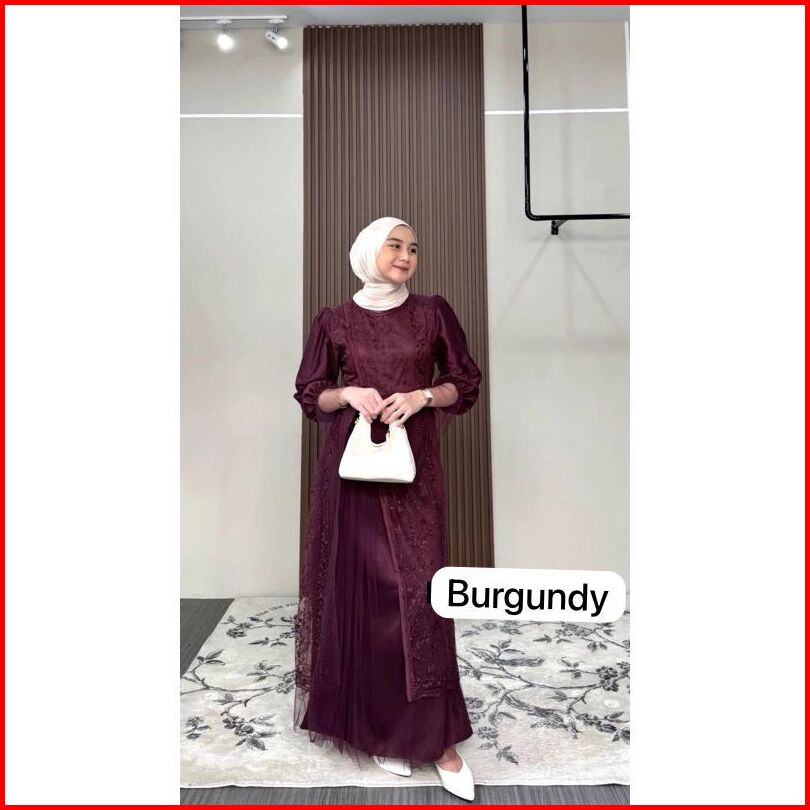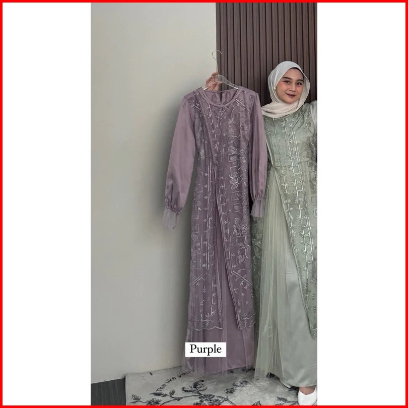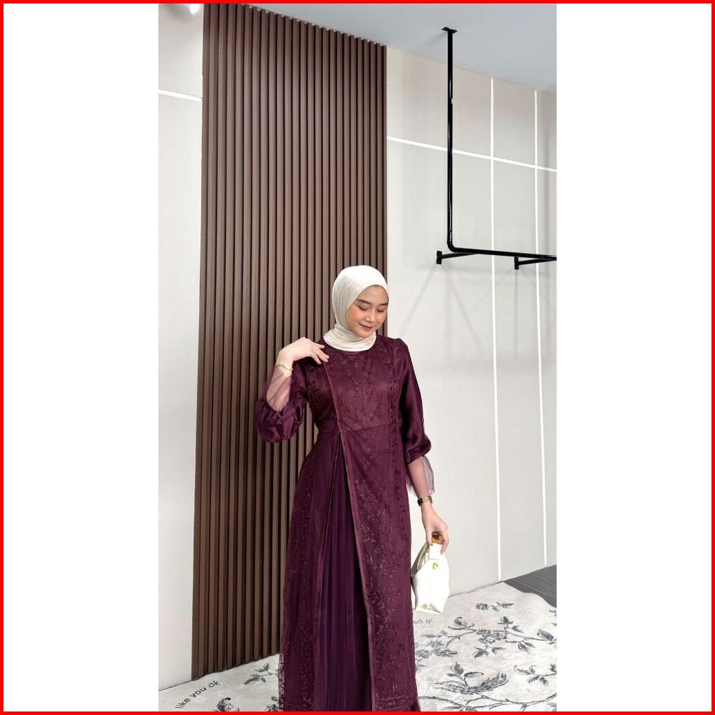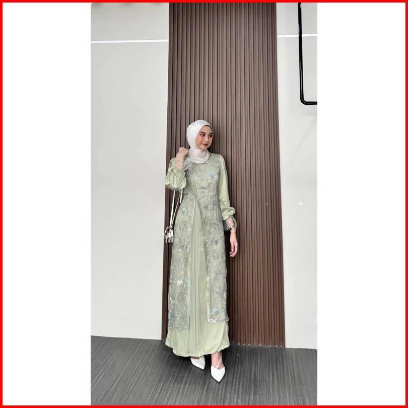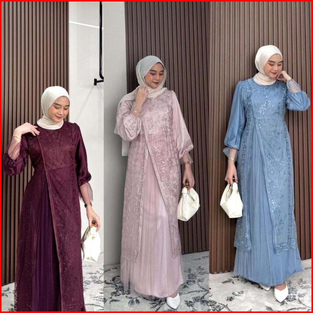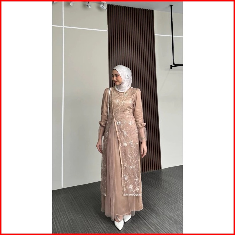 Kinar Silk Dress Tille Brukat Motif Premium Gamis Peta Kondangan Bridesmaid Busui
