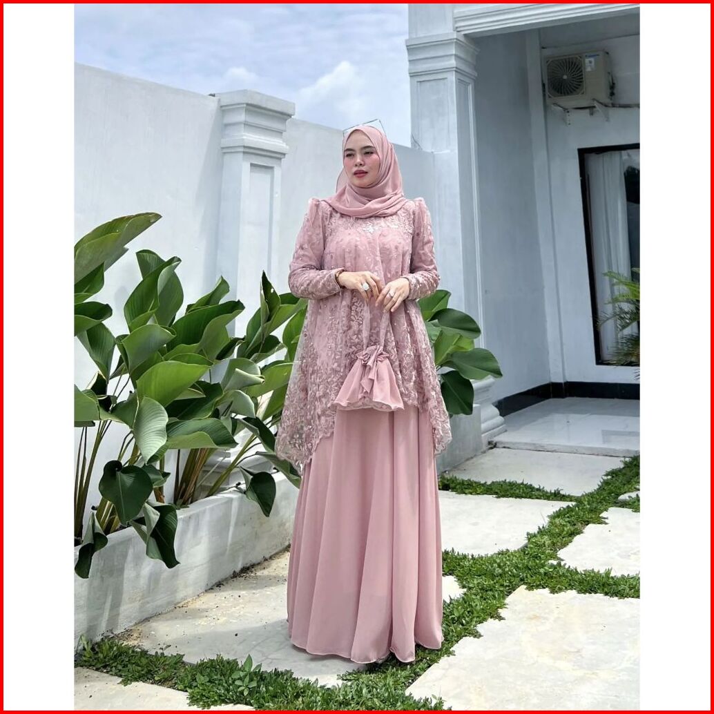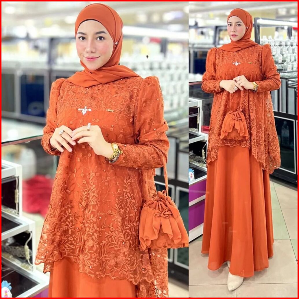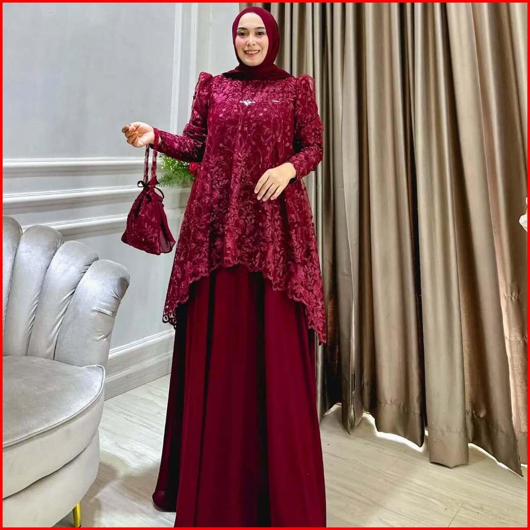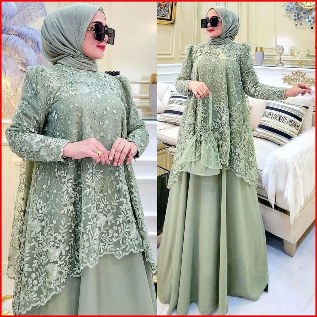 Almerra Dress Mewah Muslimah Panjang Gamis Kekinian Mewah Premium Bahan Ceruty Mix Brukat Premium
