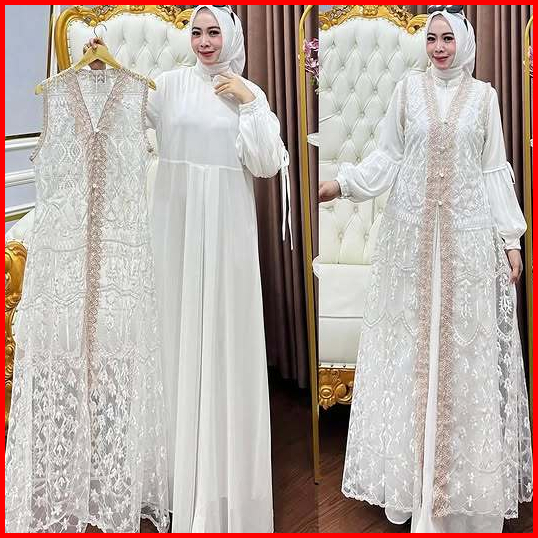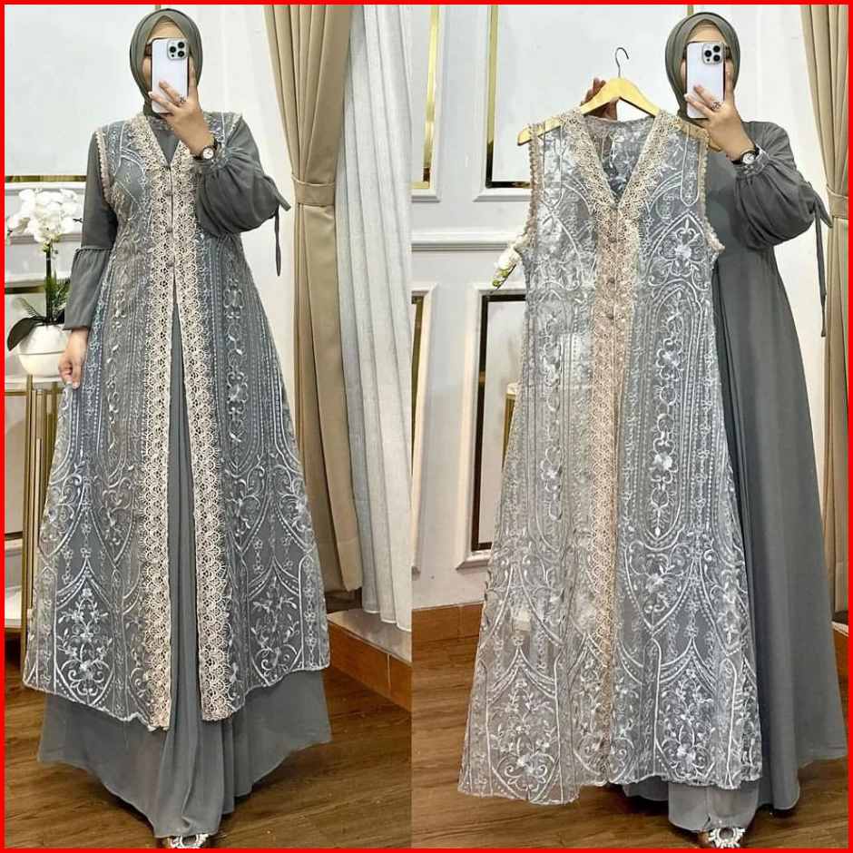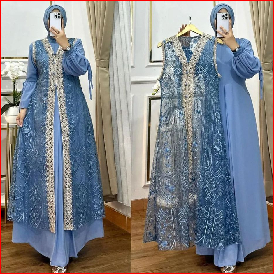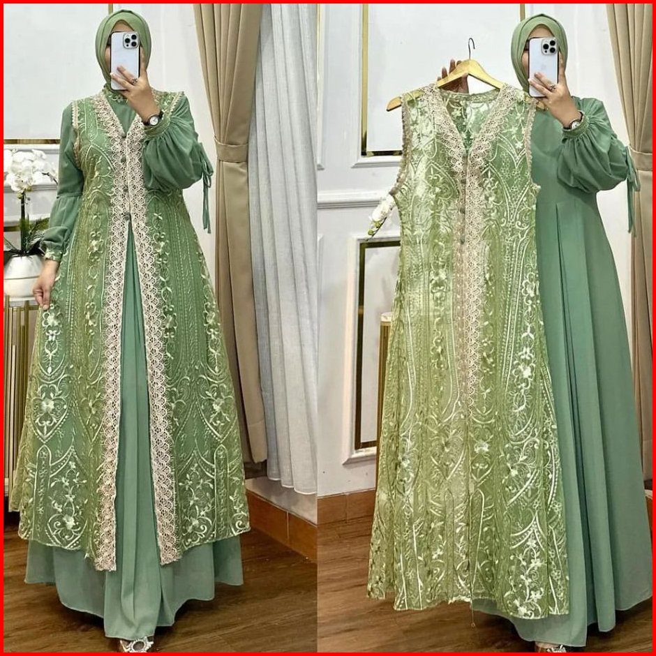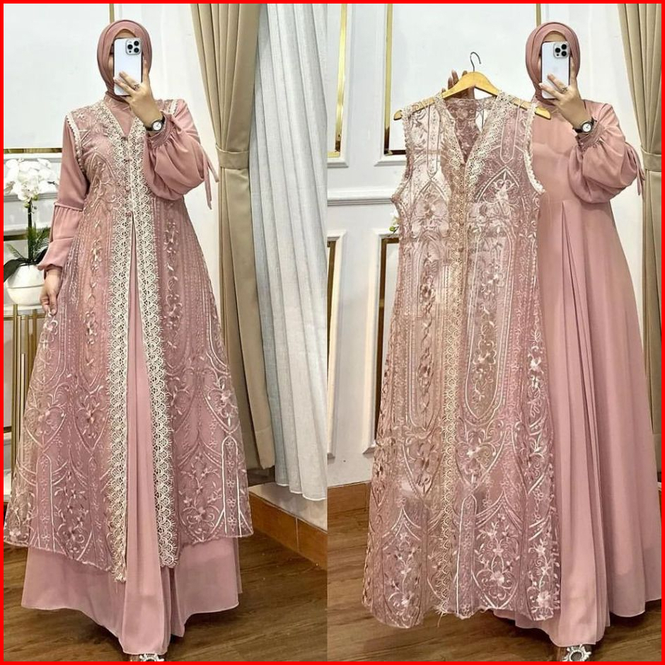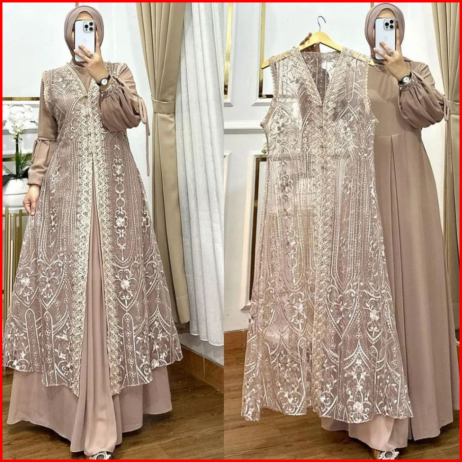 Naura Dres Wanita Kekinian Gamis Pesta Brukat Kondangan Inner Outer Terbaru2024 Mewah Elegan Jumbo