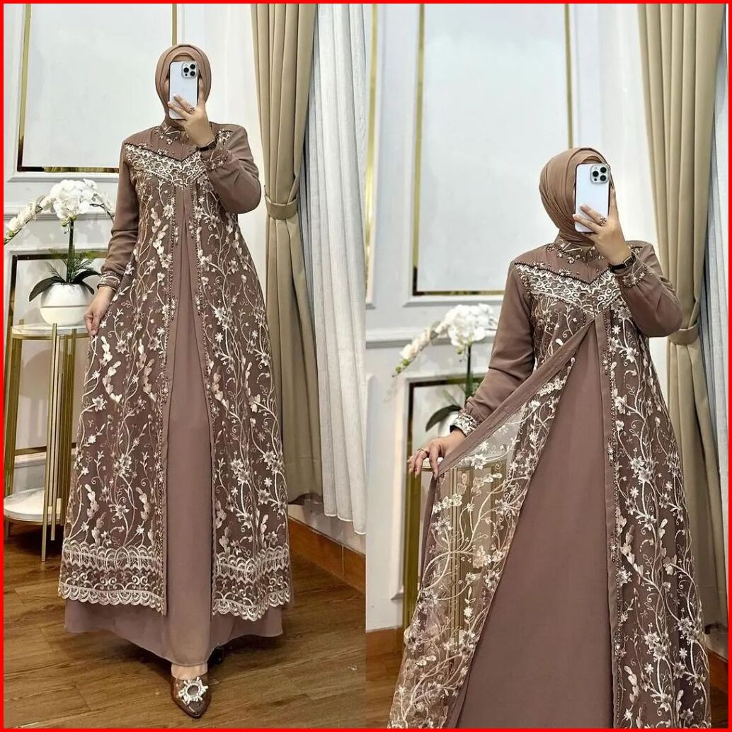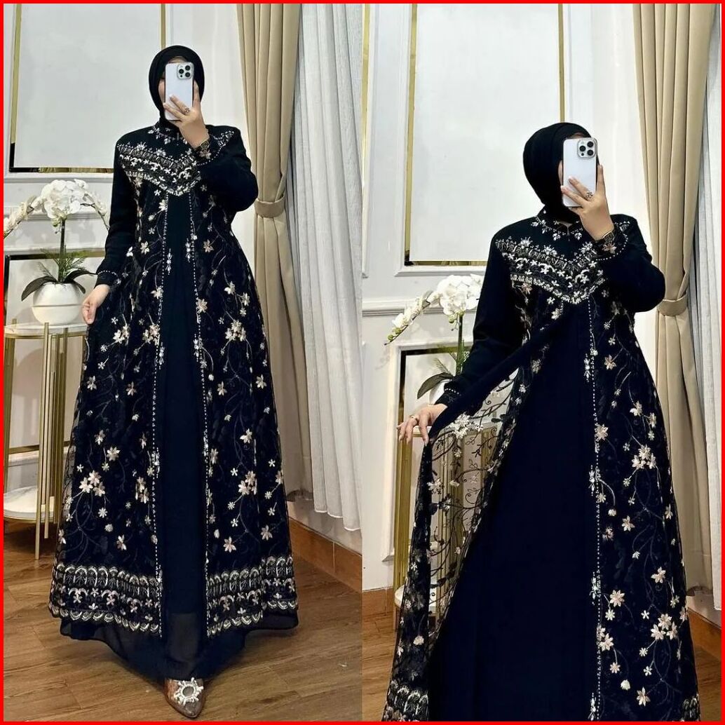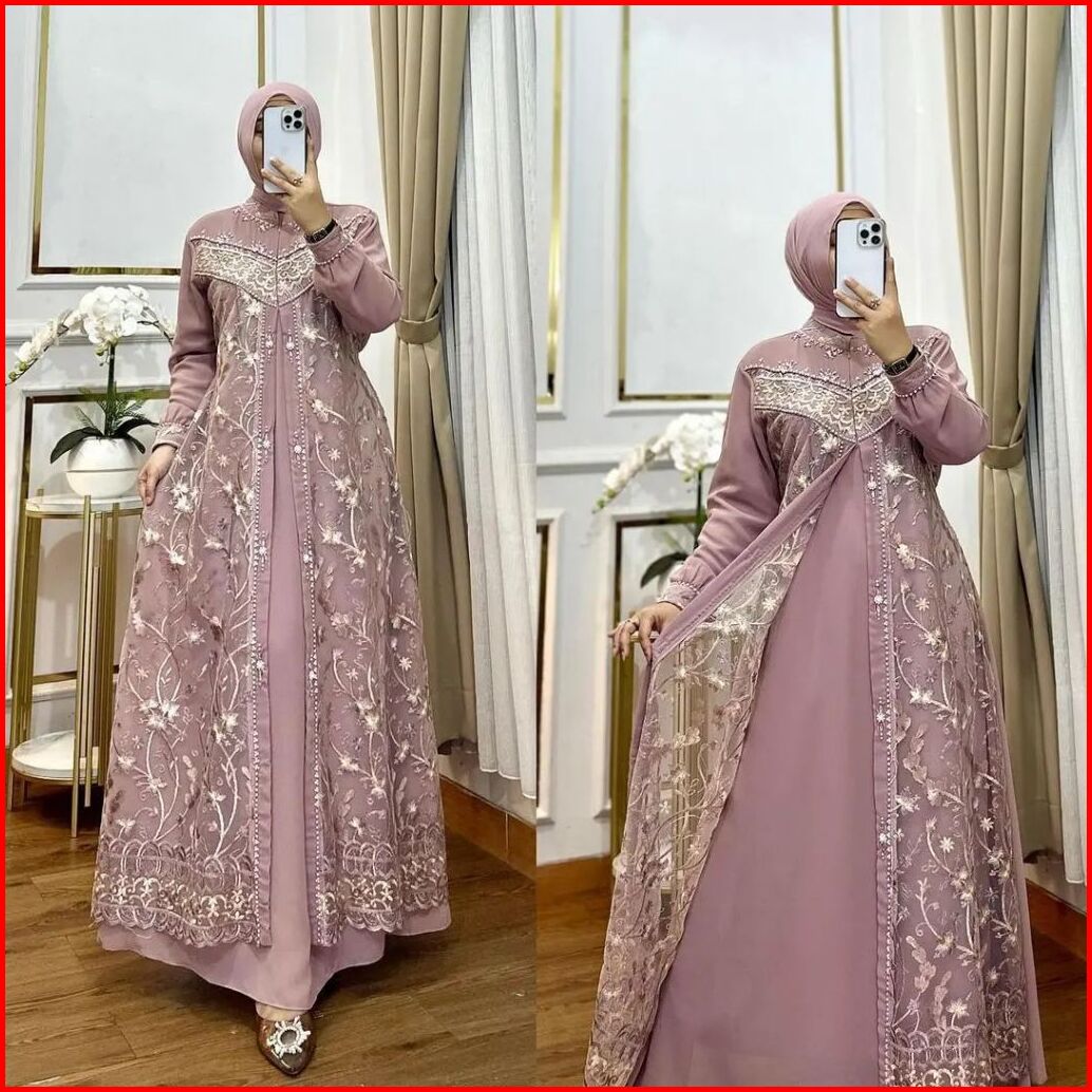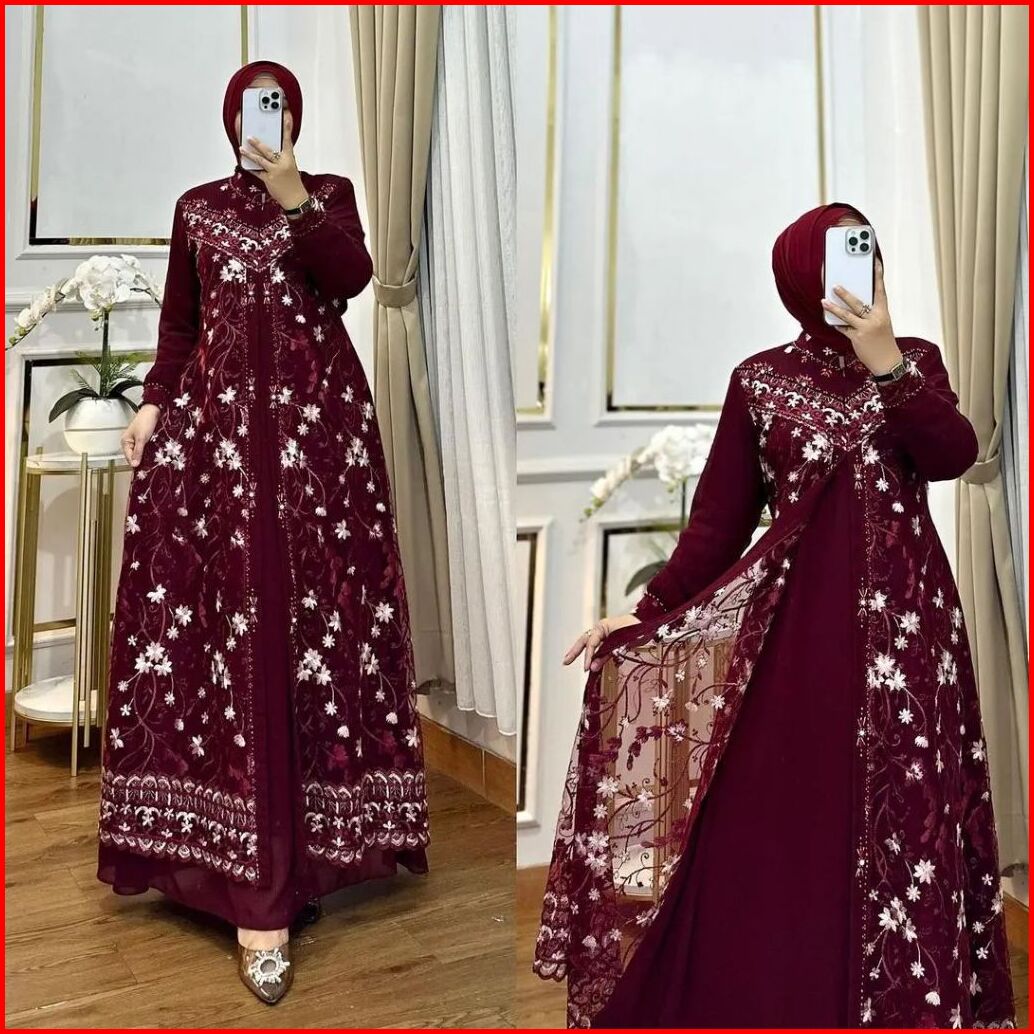 Afifah Dress Gamis Brukat Wanita Bahan Ceruty Babydoll Baju Pesta Kondangan Terbaru 2024