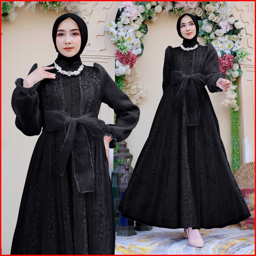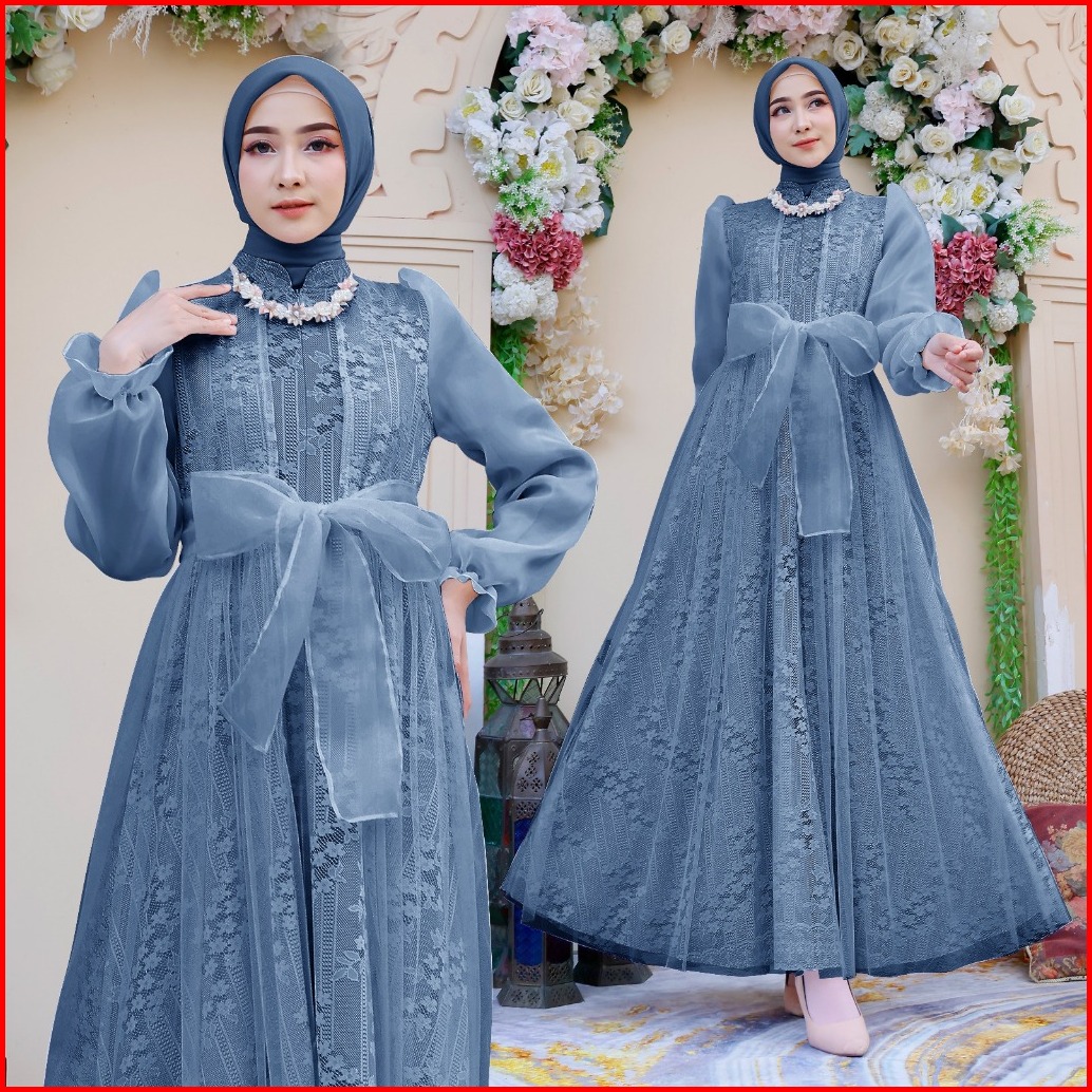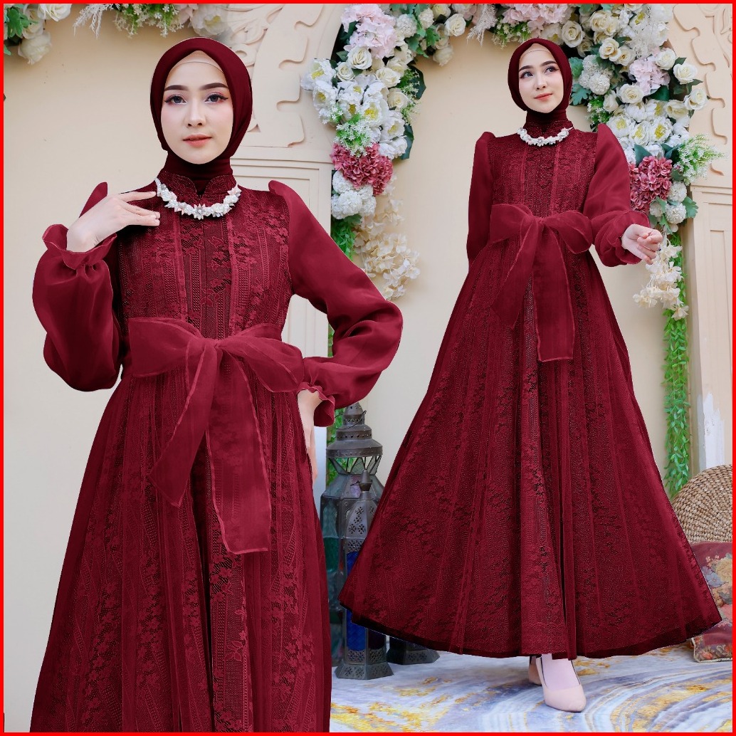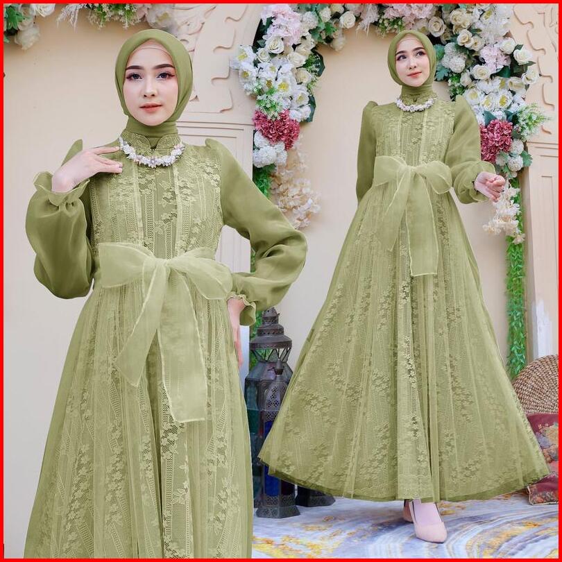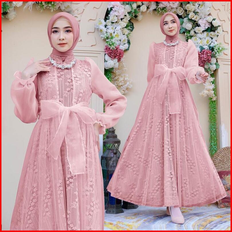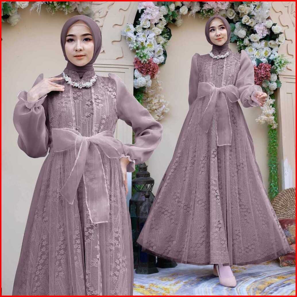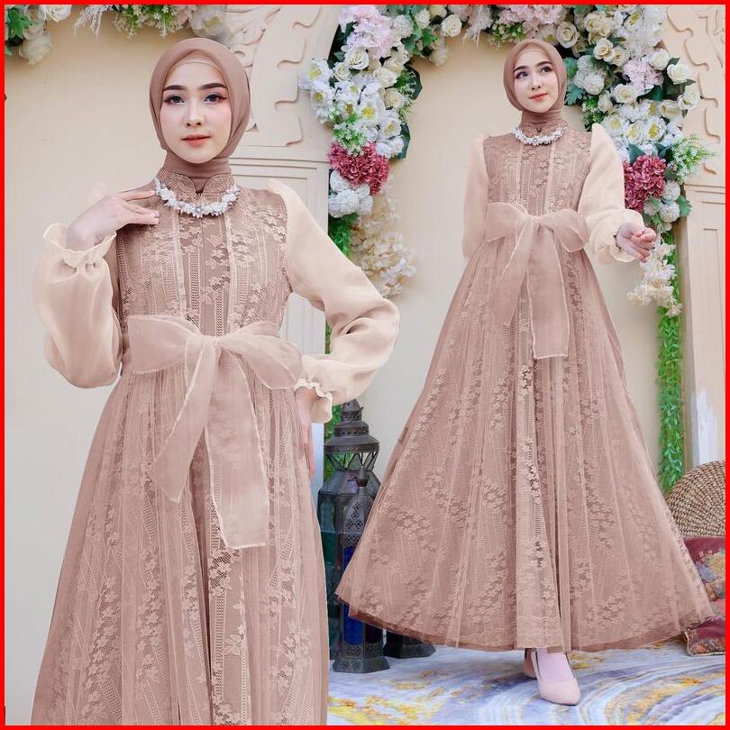 Soraa Maxi Davina M L Xl 4 Warna Busui Friendly Terbaru Gamis Brukat Organza Fashion Busana Muslim Wanita Lebaran Mewah