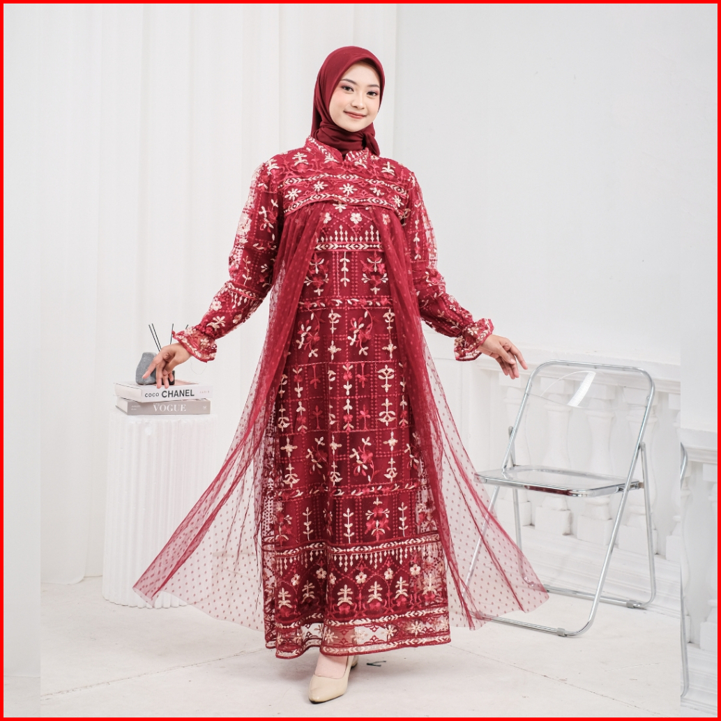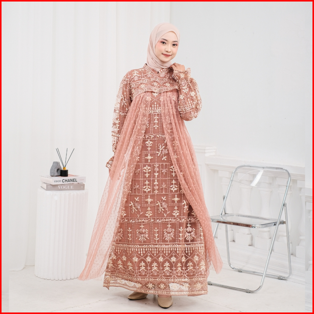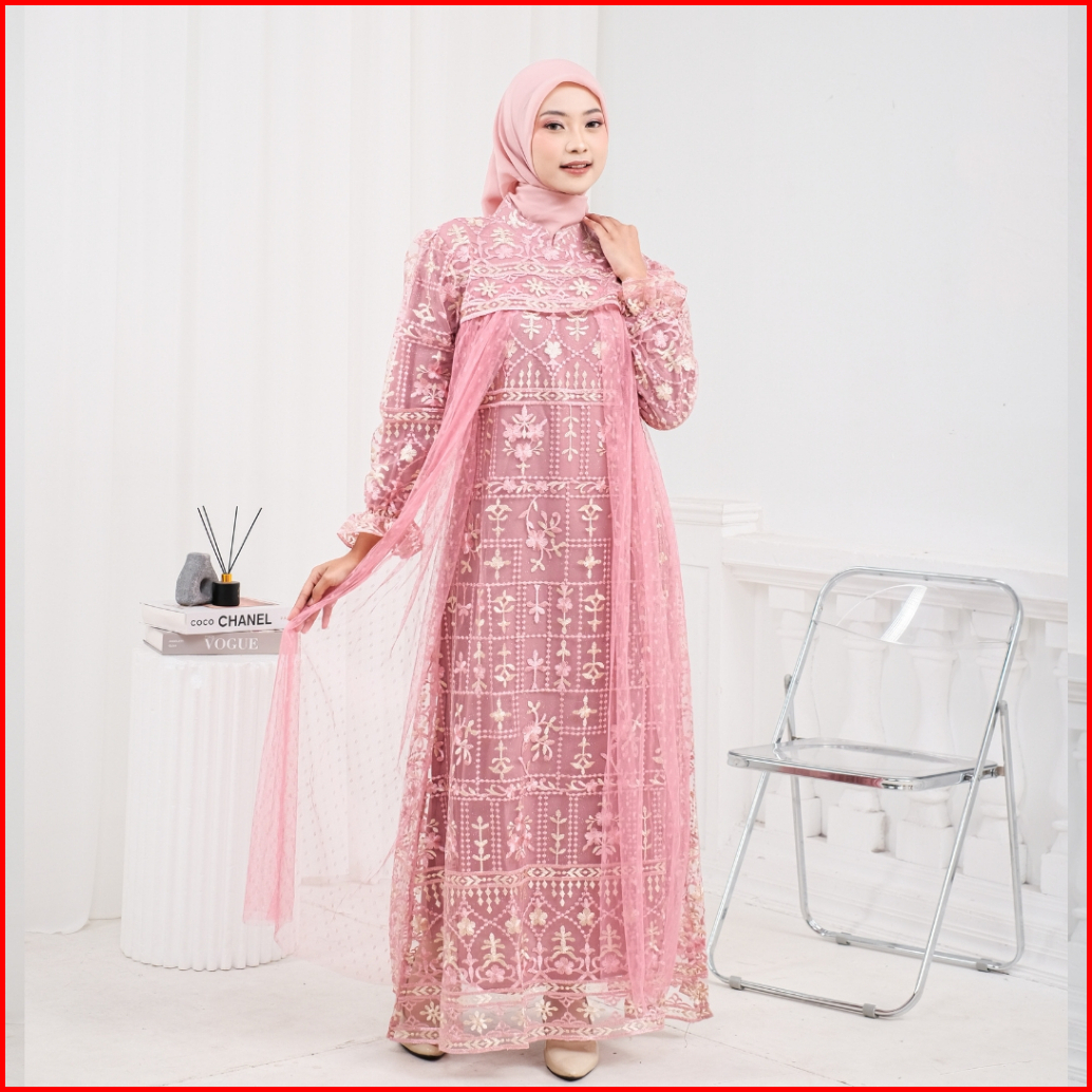 Model Baru Raisha Nabila Full Tile Brokat Dress Lebaran 2024 Full Tile Brokat Wanita Muslim Untuk Lebaran Wisuda Kondang