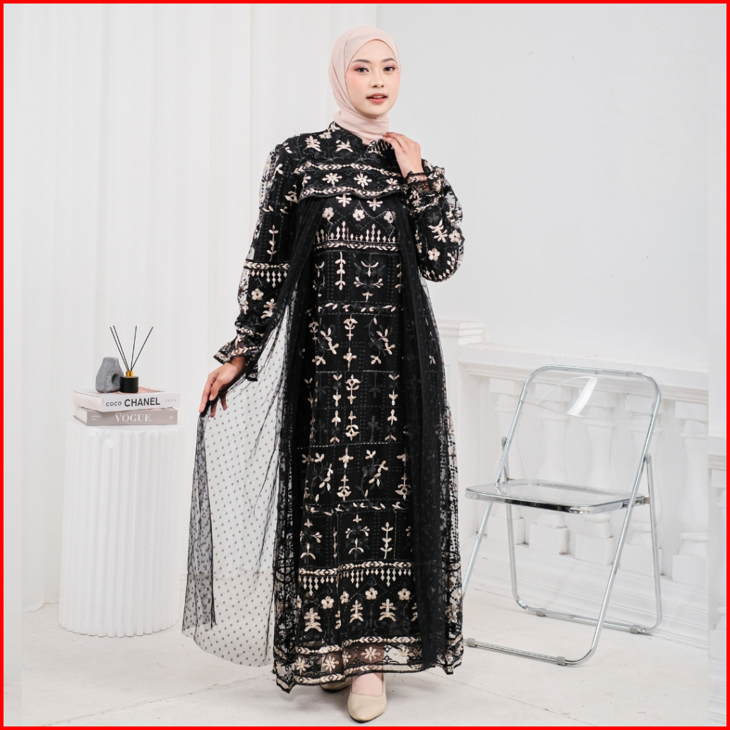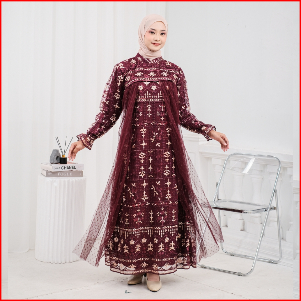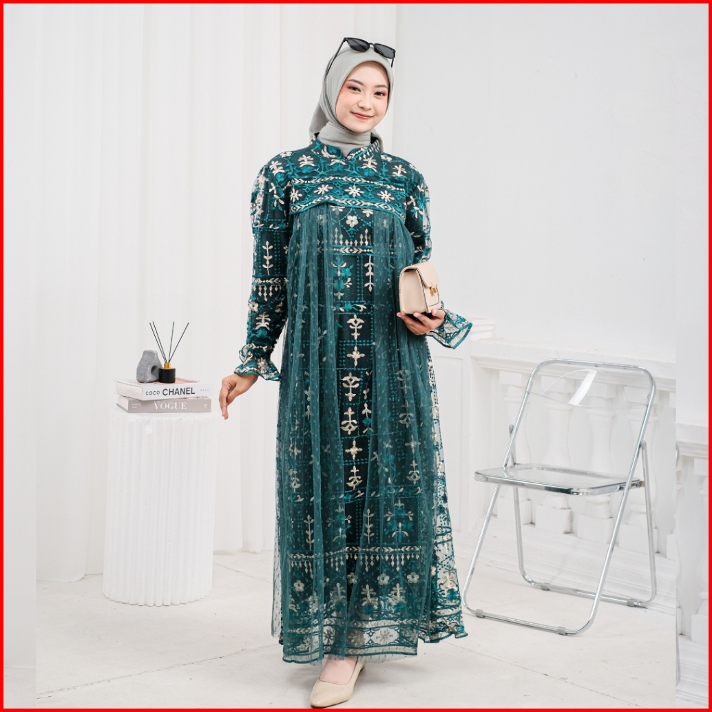 Model Baru Raisha Nabila Full Tile Brokat Dress Lebaran 2024 Full Tile Brokat Wanita Muslim Untuk Lebaran Wisuda Kondang