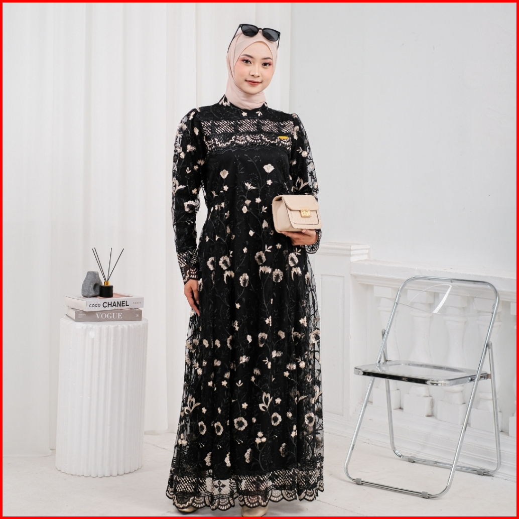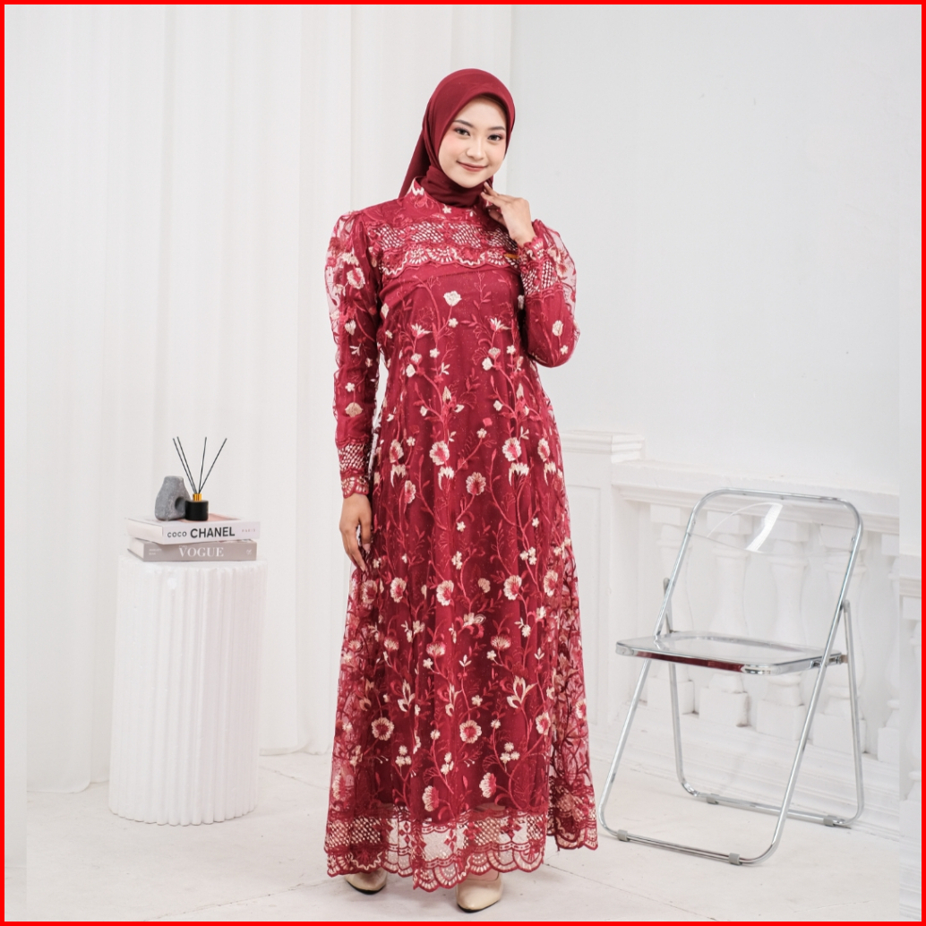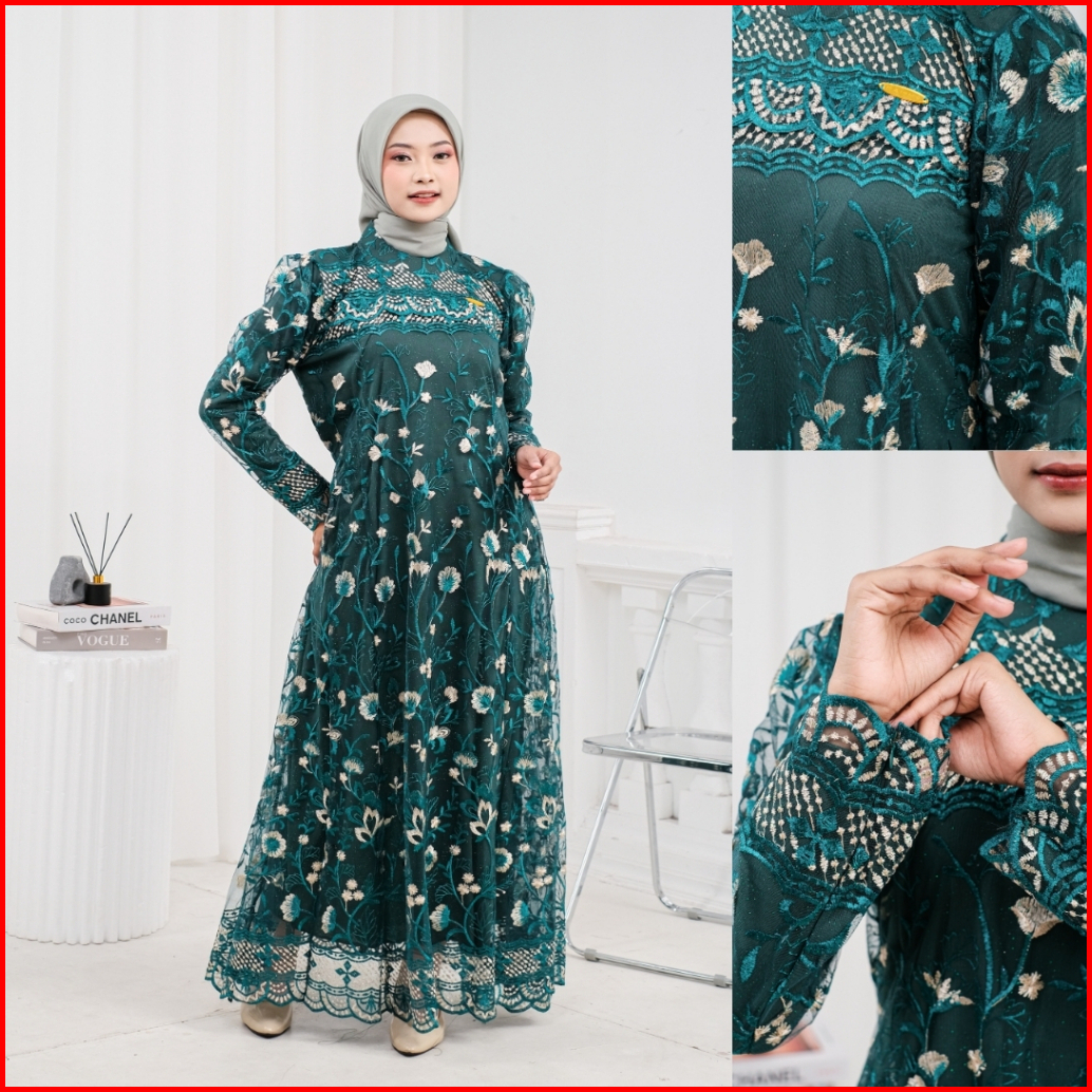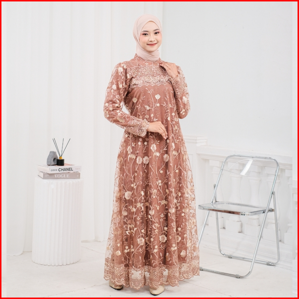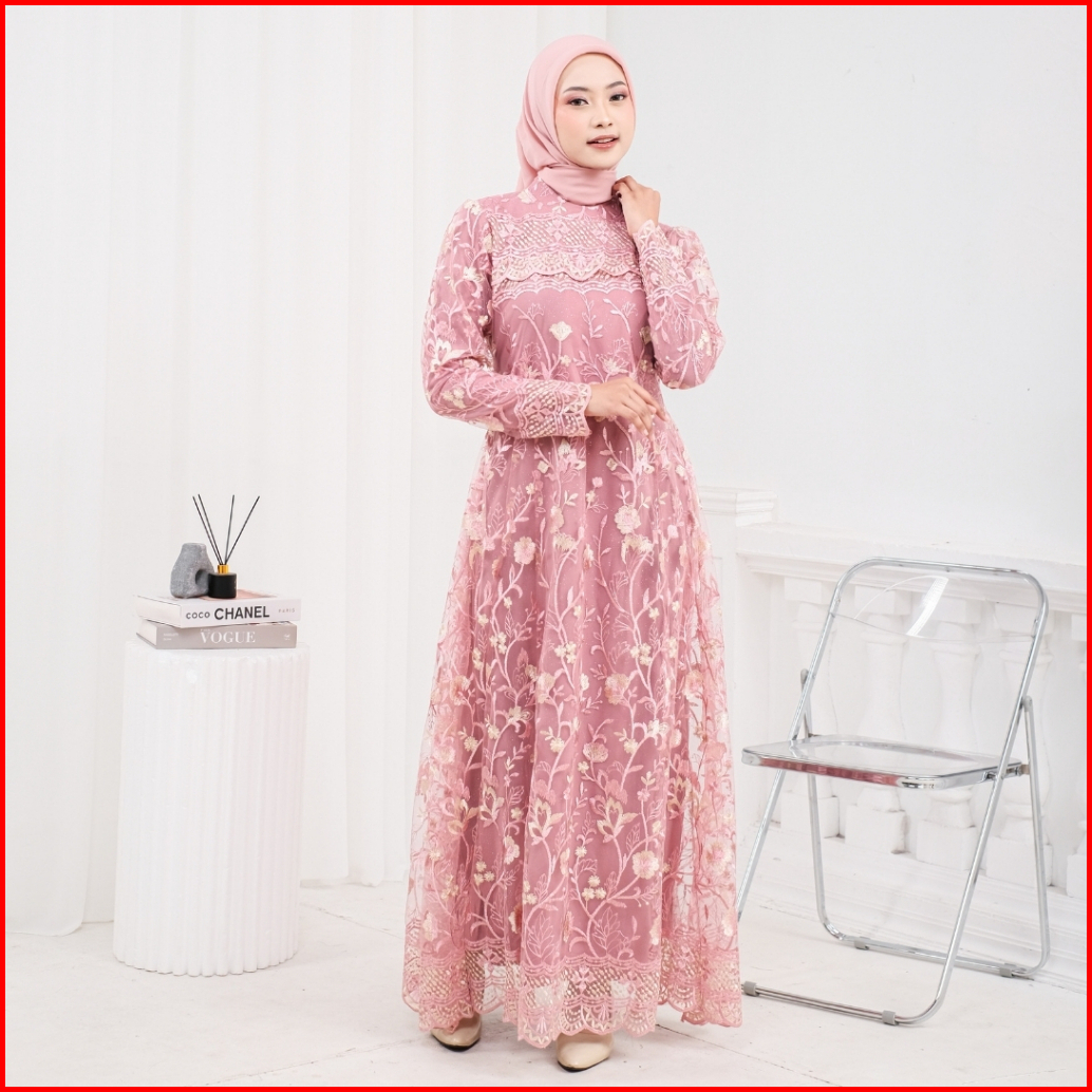 Restock Raisha-adiba Vol 2 Gamis Kondangan 2024 Bahan Full Tile Brokat Kaca Spingle Depan Belakang Puring Hyget Untuk Ko