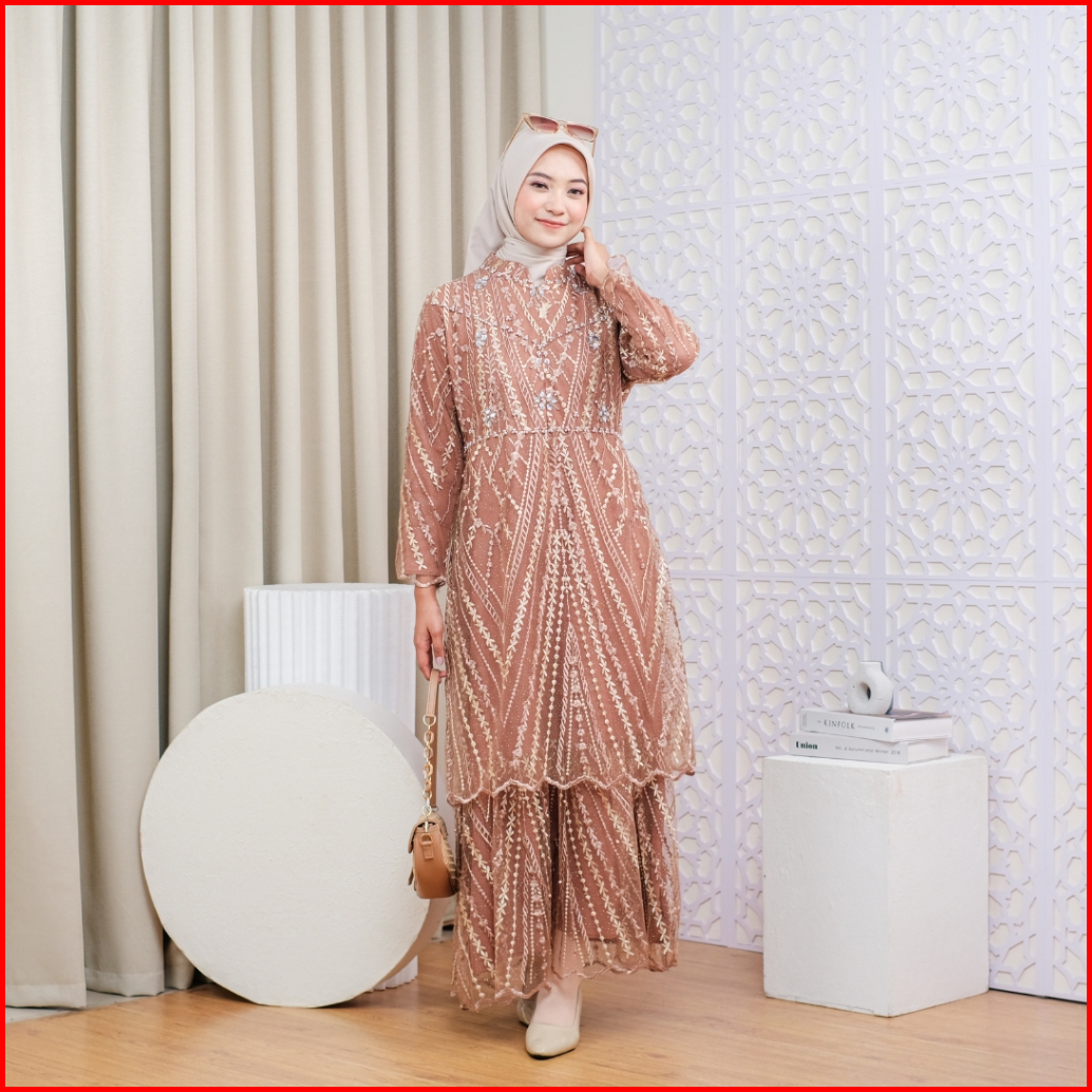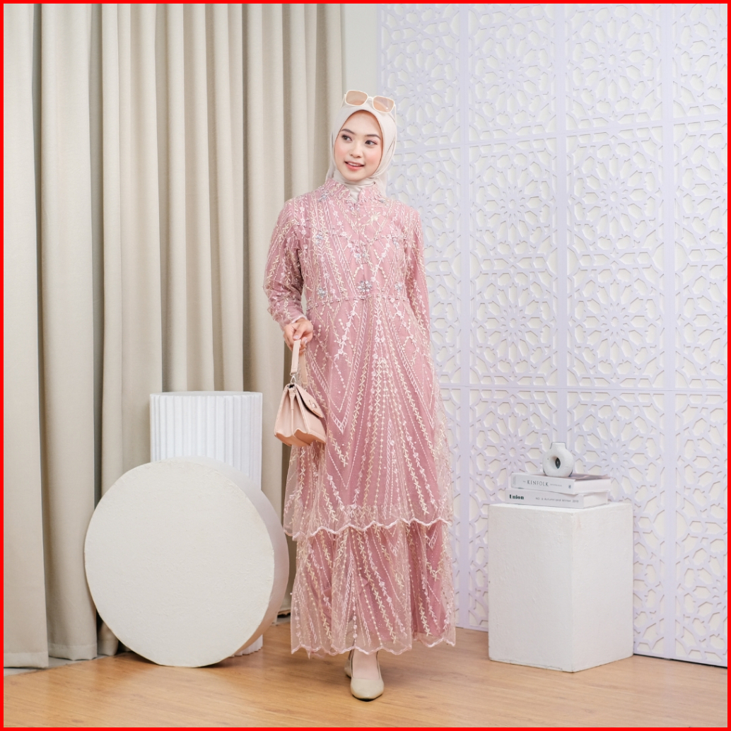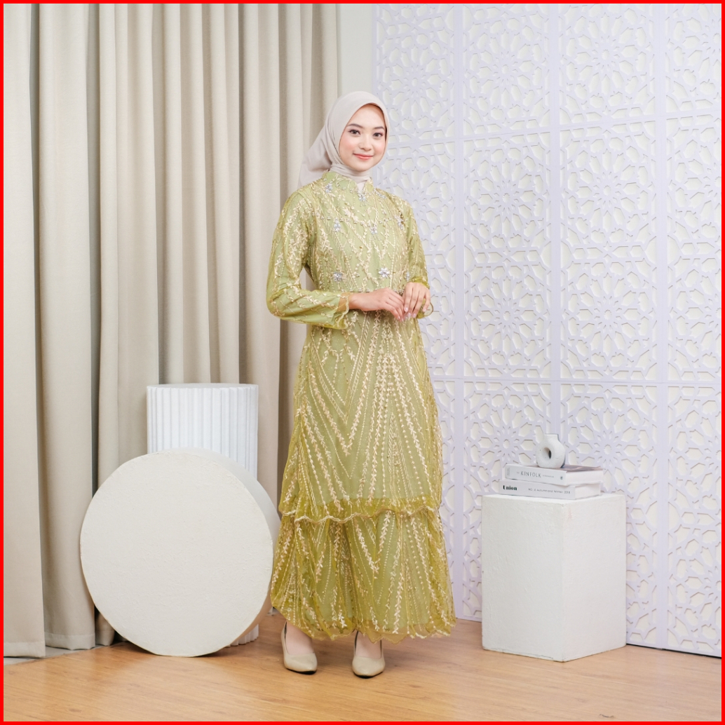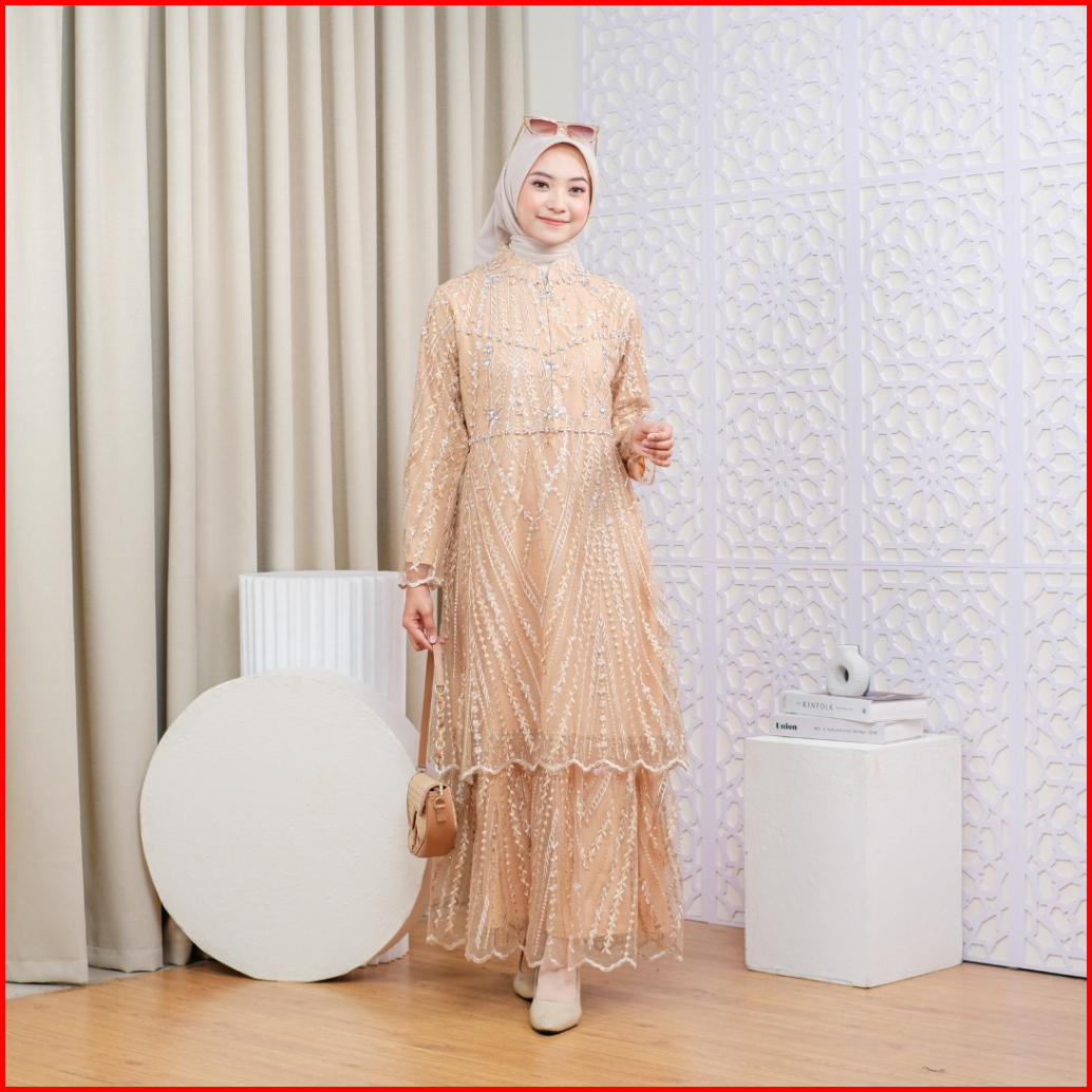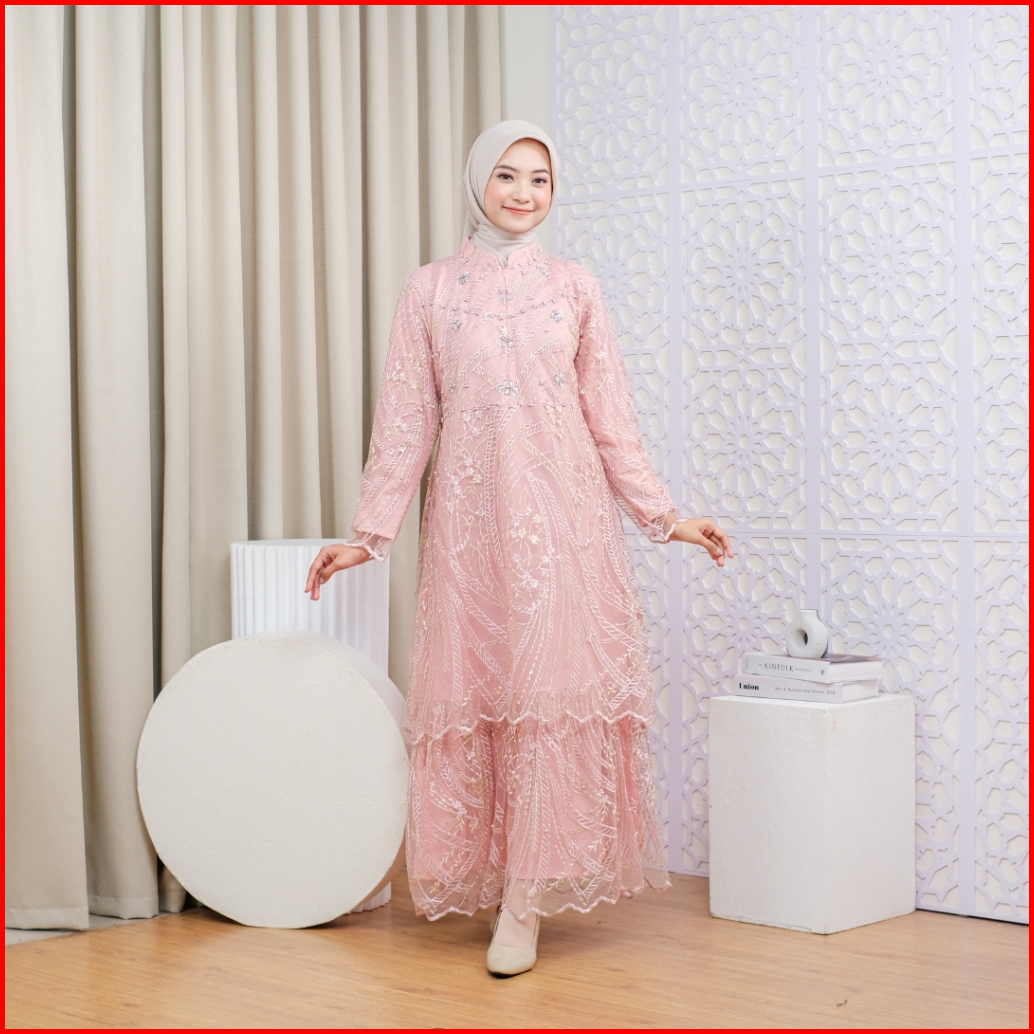 Raisha - Gamis Brukat Jamilla Dress Kondangan Exlusive Payet Busui Friendly Full Tile Brokat Bordir Keliling Untuk Gamis