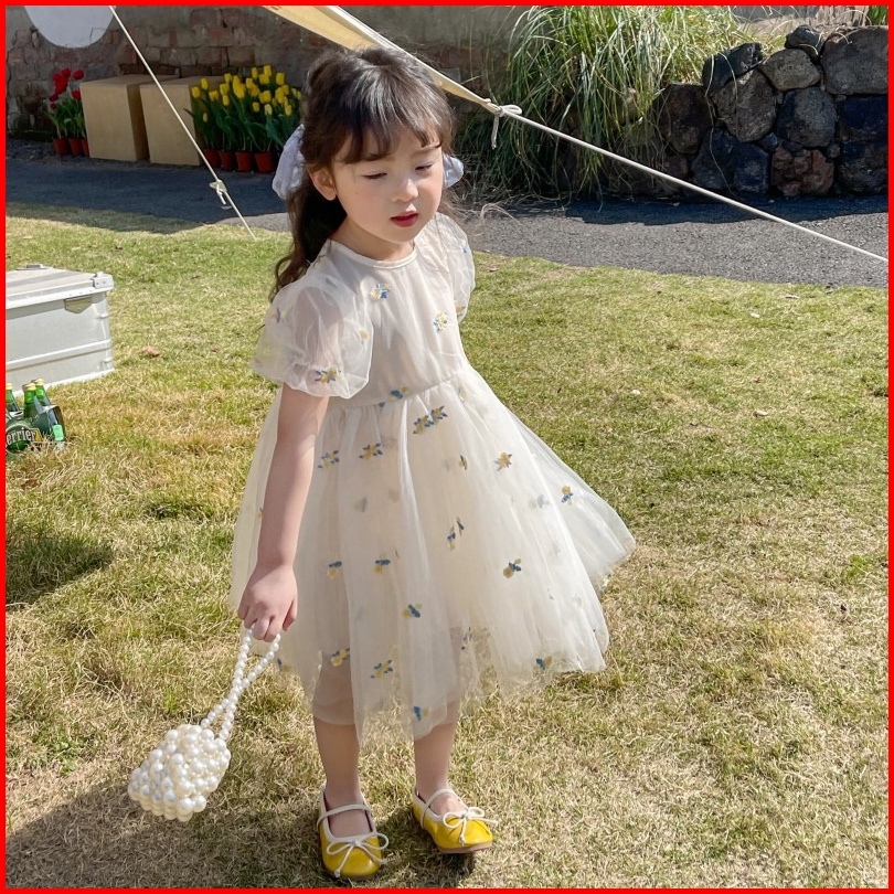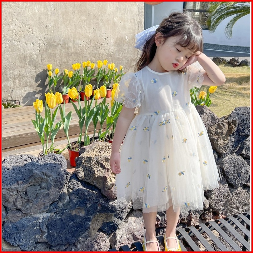 Haasya Kids 1-6 Tahun Rok Anak Perempuan Musim Panas Gaun Lucu Bordir Baru Wanita Versi Korea Putri Gaun Putri Jala Berb