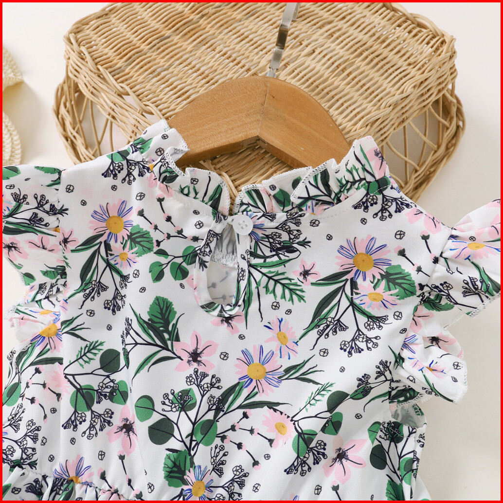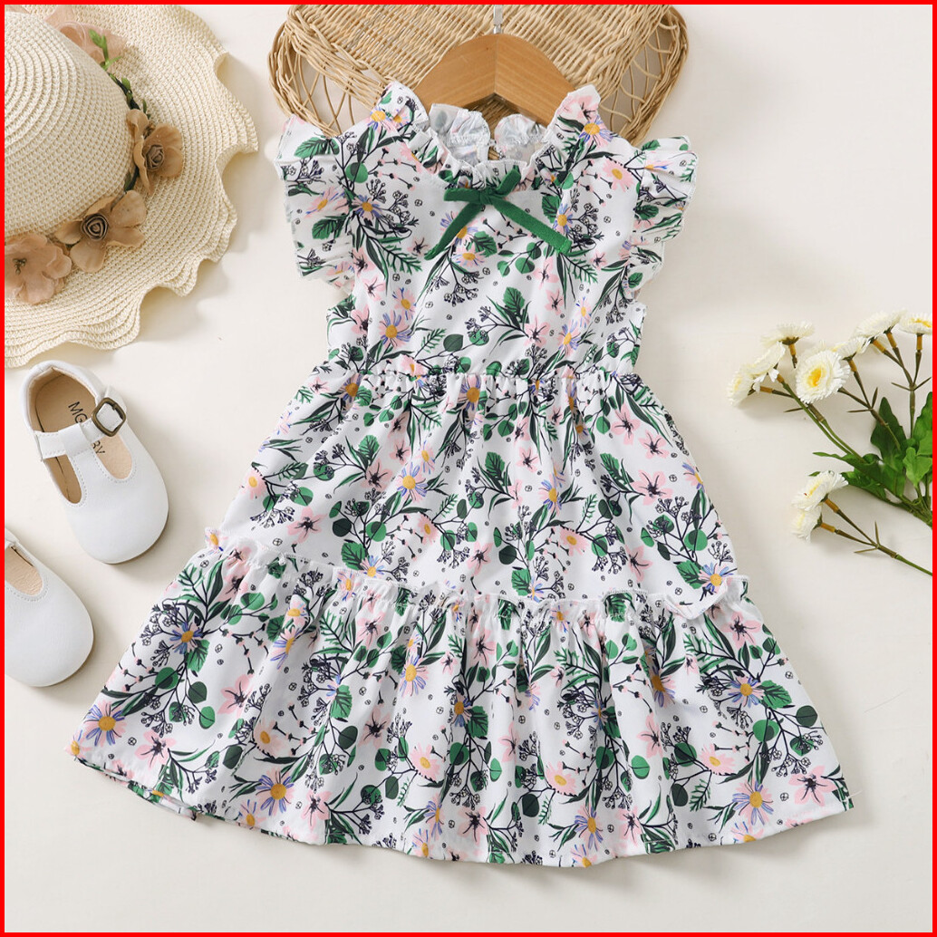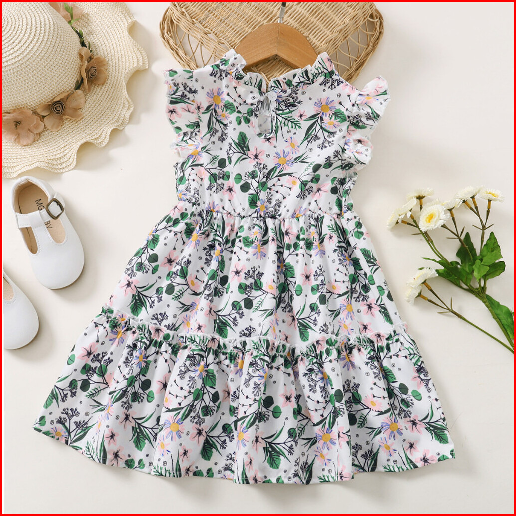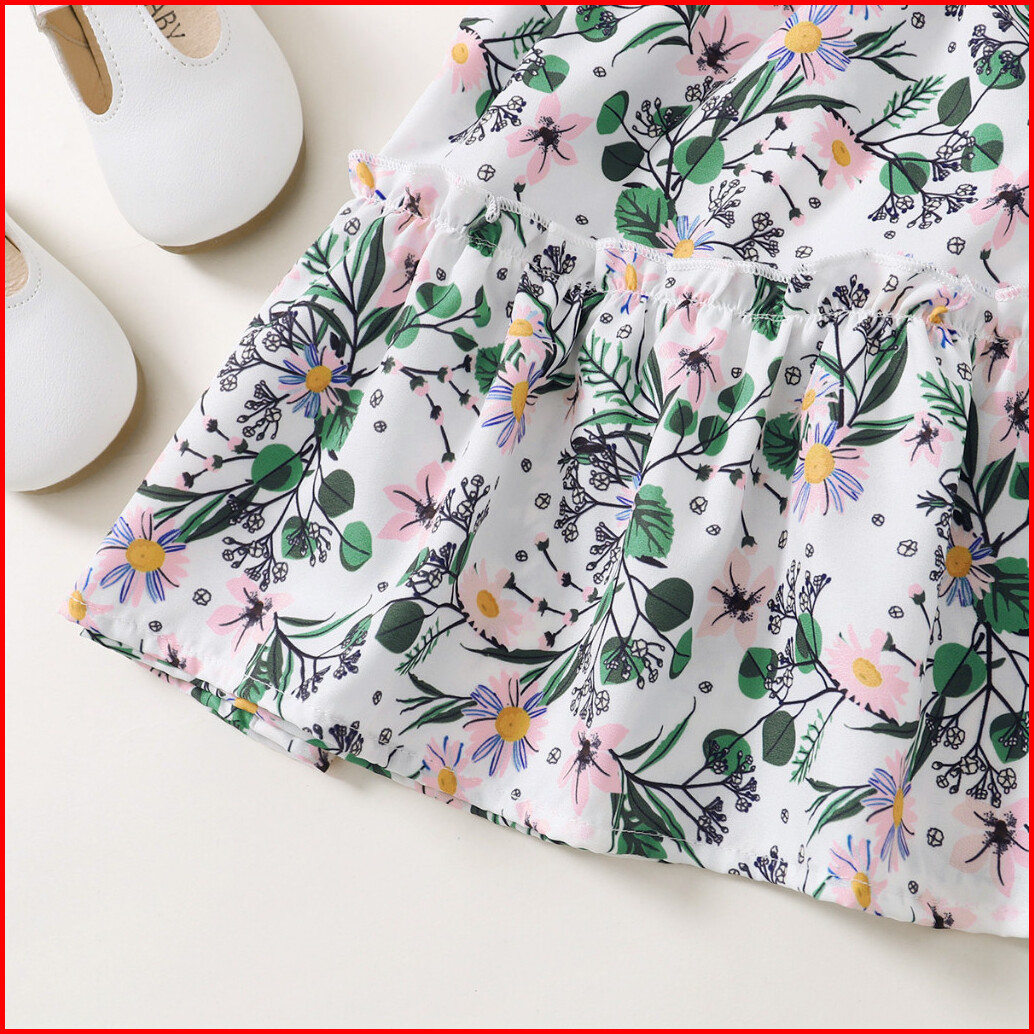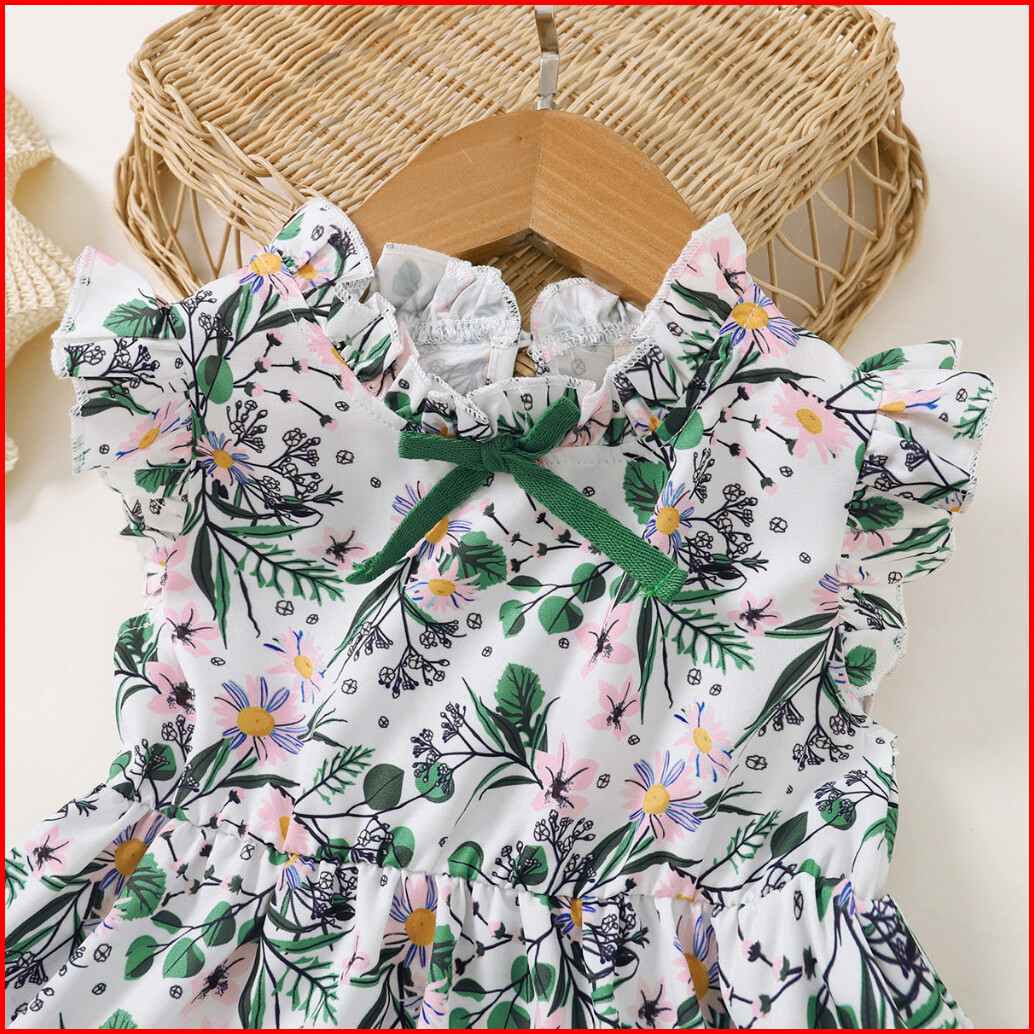 Haasya Kids 1-6years Tempat Kids Baby Girl Dress Flowers Print Sleeveless Retro Style Lovely A-line Summer Dresses