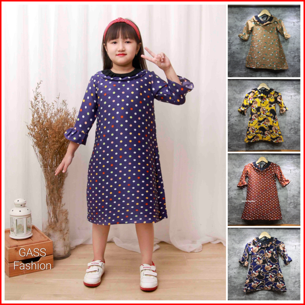 Baju Dress Anak Perempuan Turun Naik Usia 3 4 5 6 7 8 Tahun