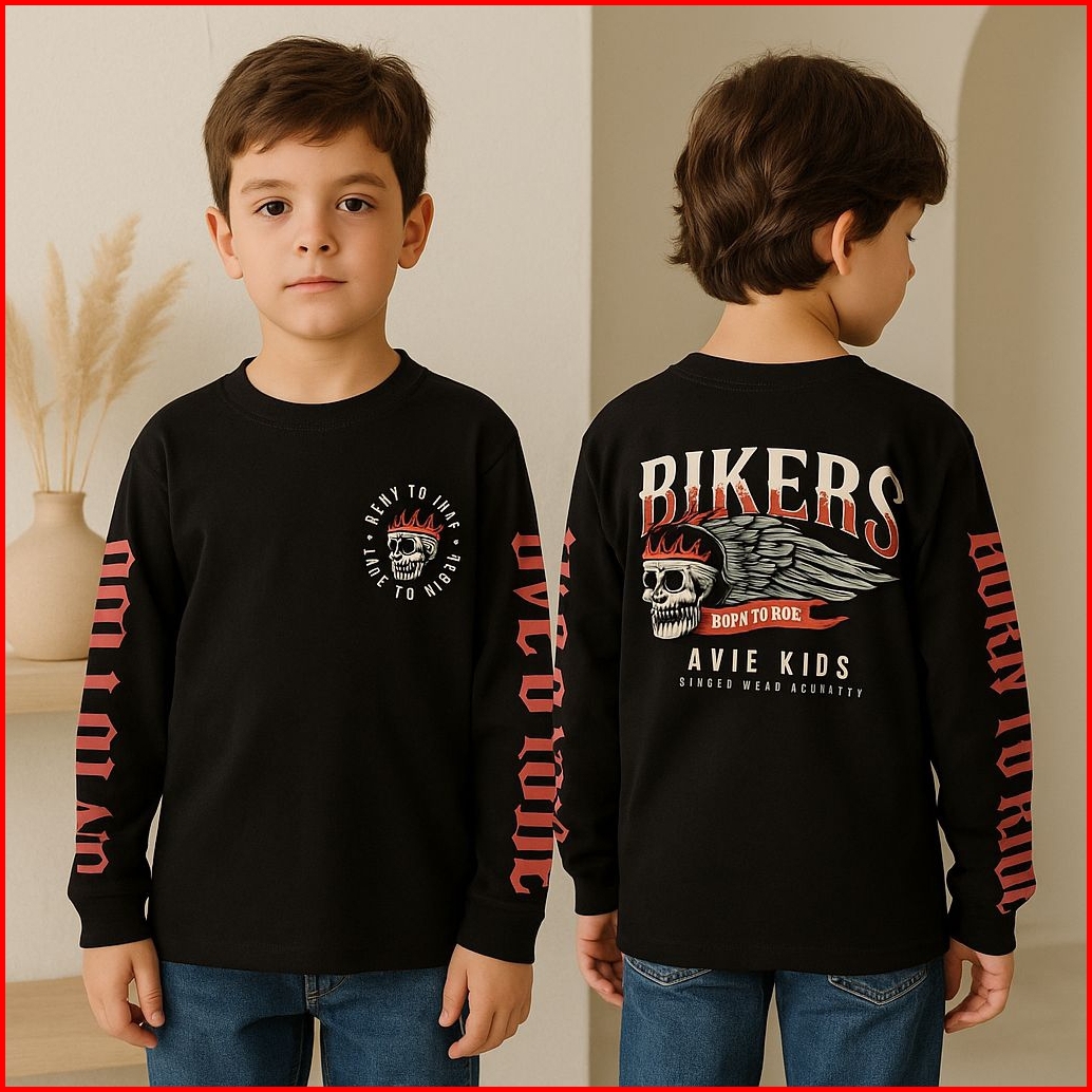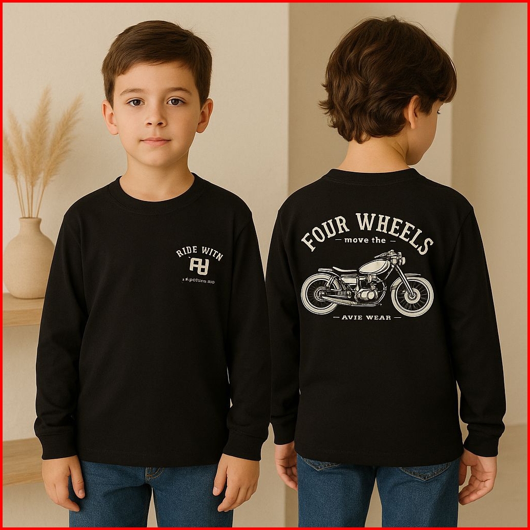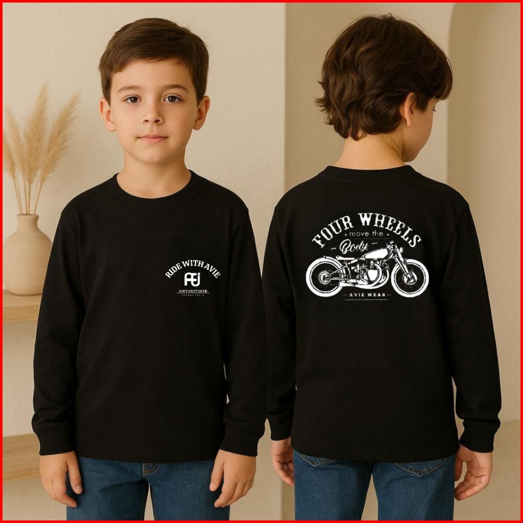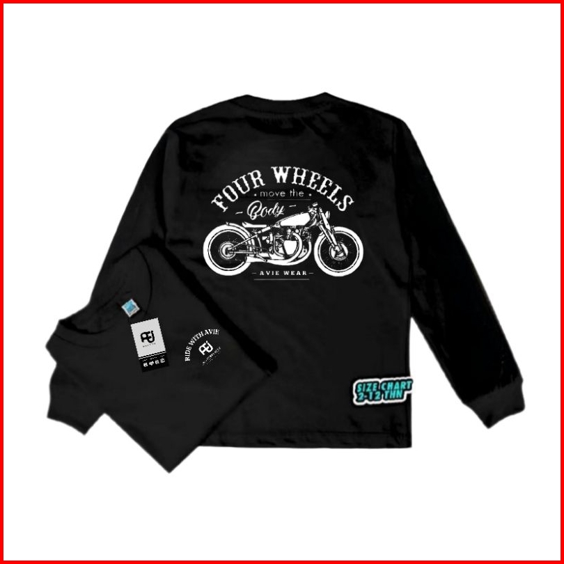 Baju Kaos Distro Anak Laki Laki Cowok Lengan Panjang Usia 1-12 Tahun Motif Motor Depan Belakang