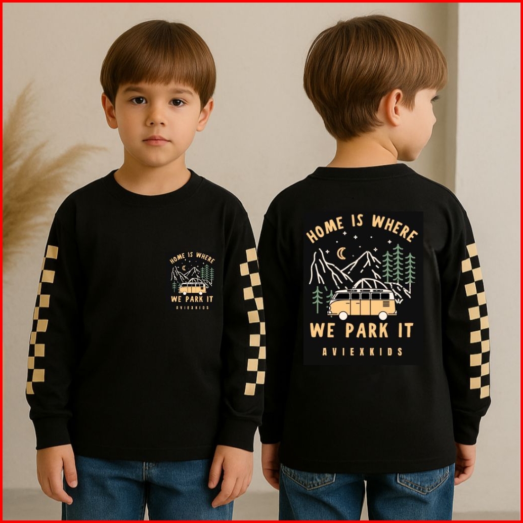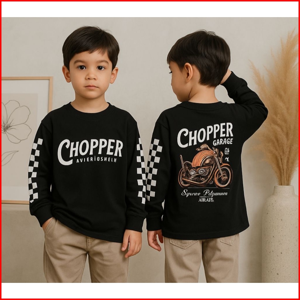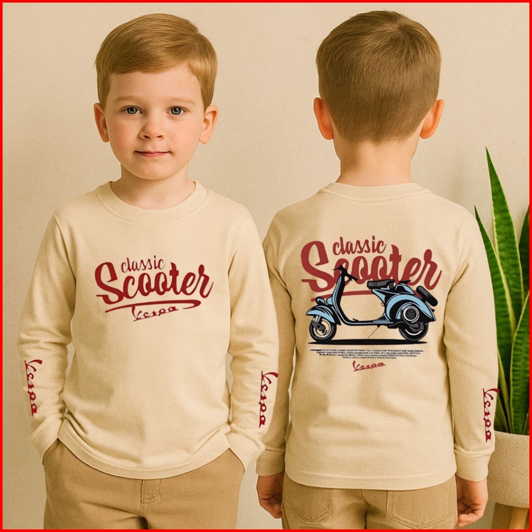 Baju Kaos Distro Anak Laki Laki Cowok Lengan Panjang Usia 1-12 Tahun Motif Motor Depan Belakang
