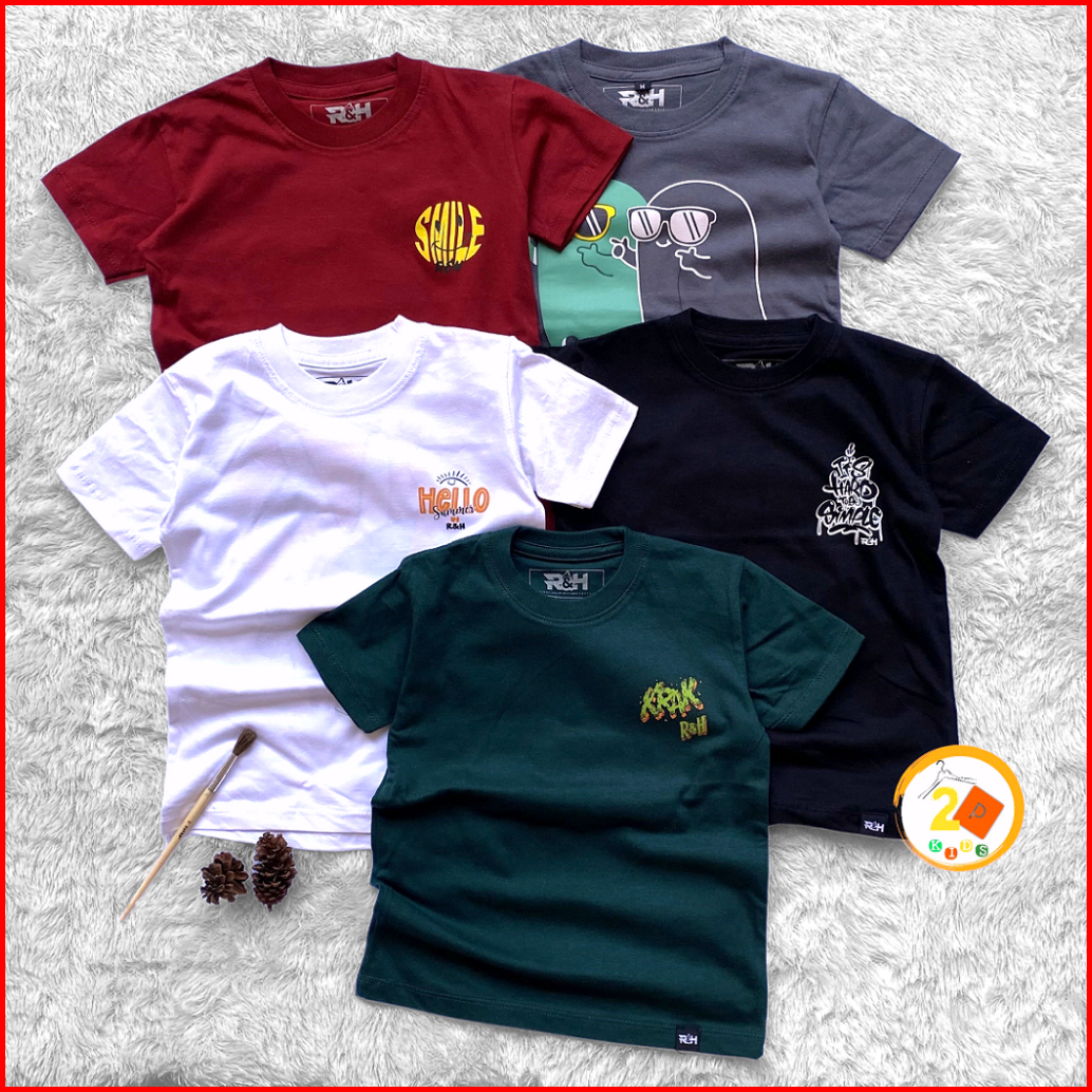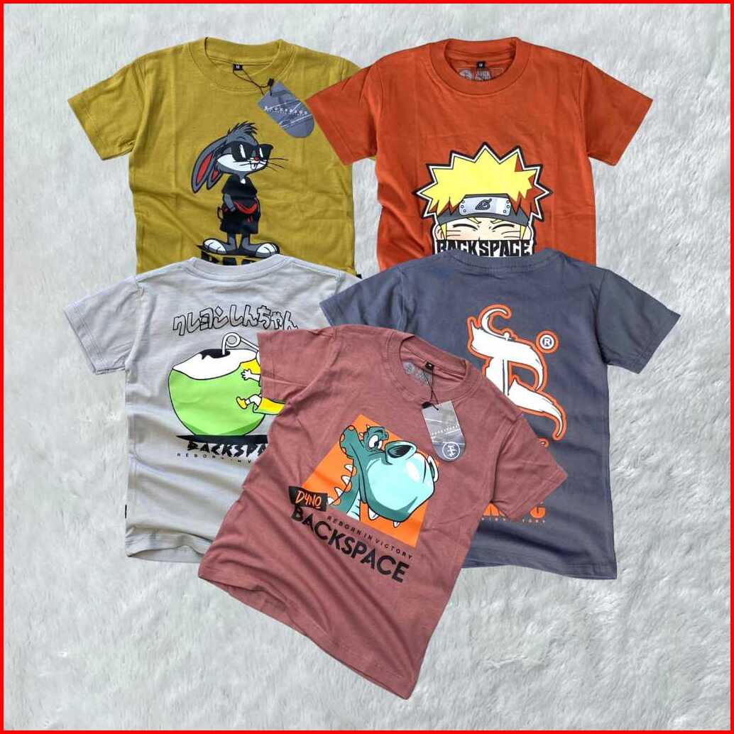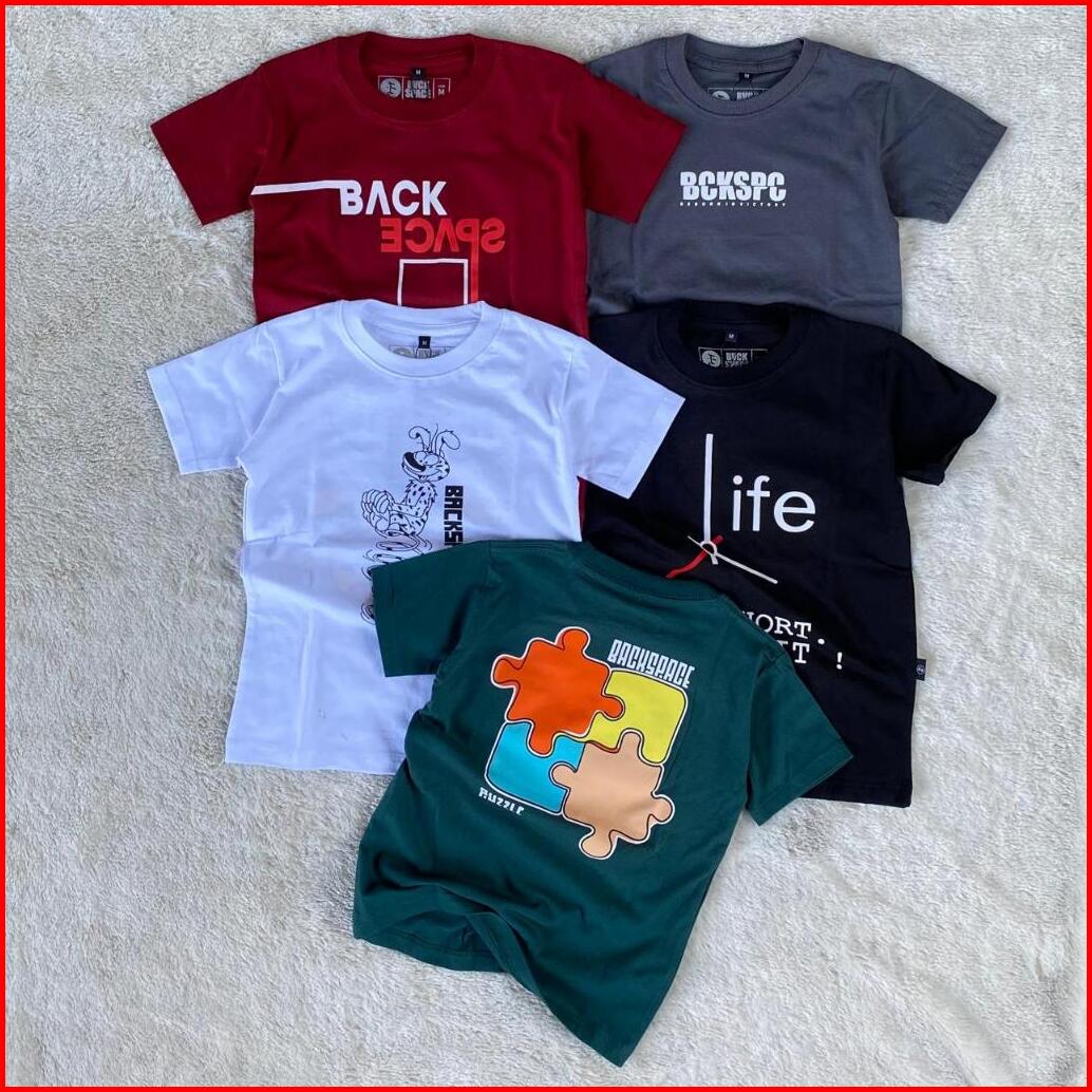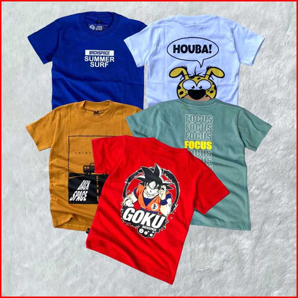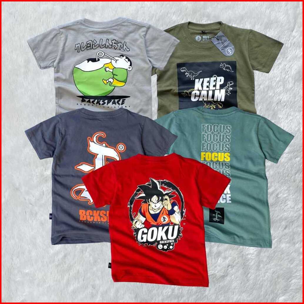 Paket 5 Pcs Kaos Distro Anak Laki-laki Katun Motif Krak Hijau Botol Baju Kids