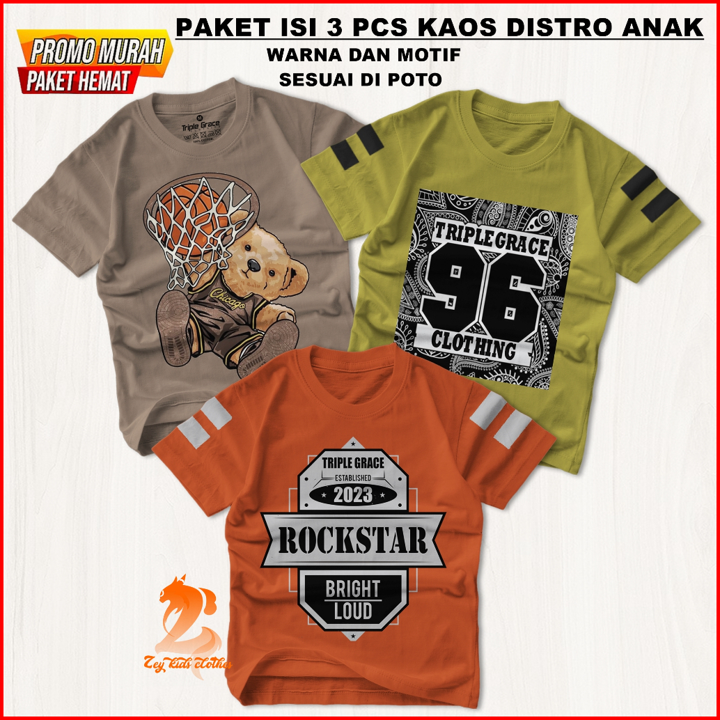 Baju Distro Anak Kaos Anak Paket 3 Pcs Paket Kaos Distro Anak Laki Laki Perempuan Isi 3 Pics Kaos Kaos Anak Paket Murah