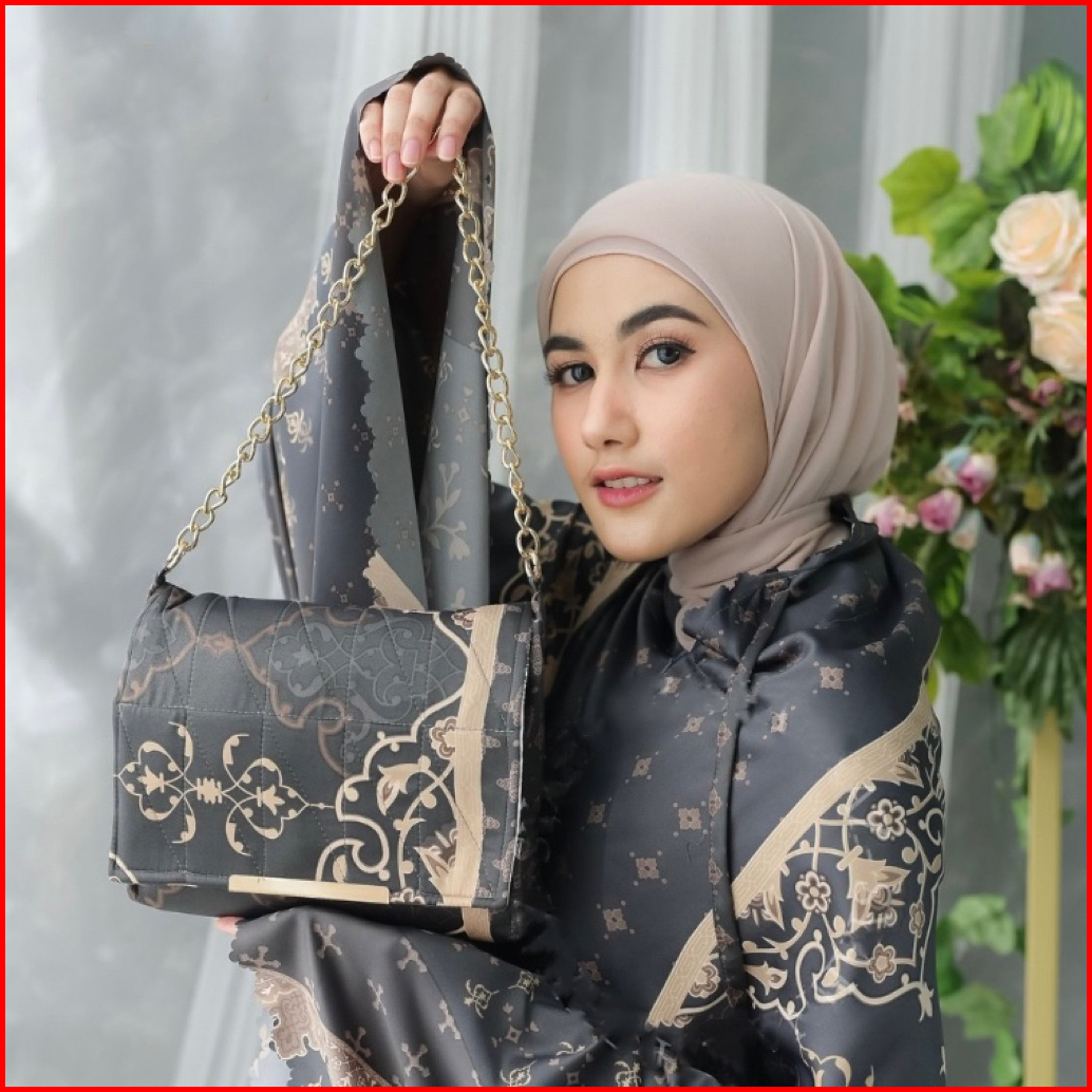Peach Hazelnut, Wardah, Darkgrey, Teracotta, Dusty-Silkdobi, Coksu-Silkdobi, Sky Blue-Silkdobi, Navy-Silkdobi, Baby Pink, Navy, Silver, Purple Grey, Hazel, Light Blue, Blue Pink, Teracotta-Renda, Hitam-Renda, Blue Ice-Renda, Hitam-Pouch Mutiara, BlueIce-PouchMutiara, Hitam