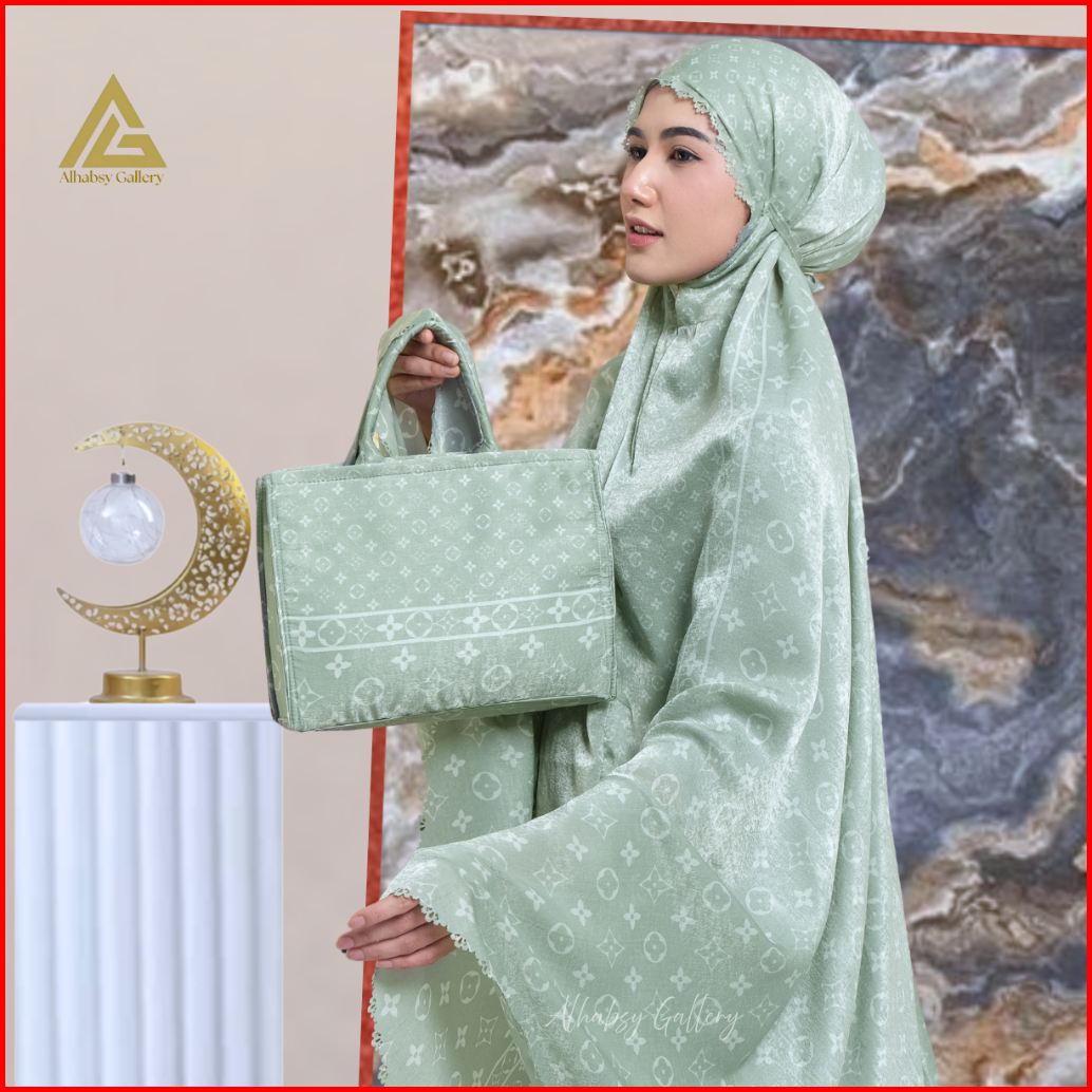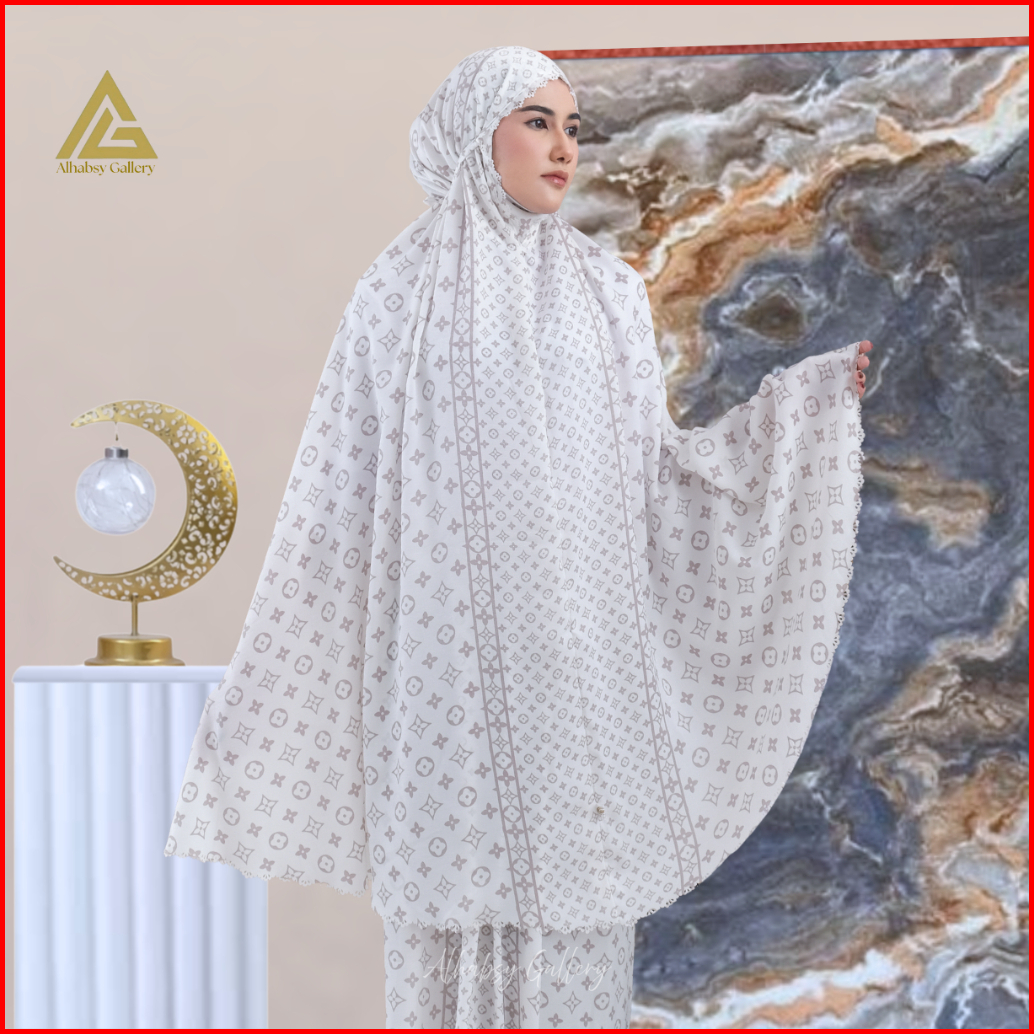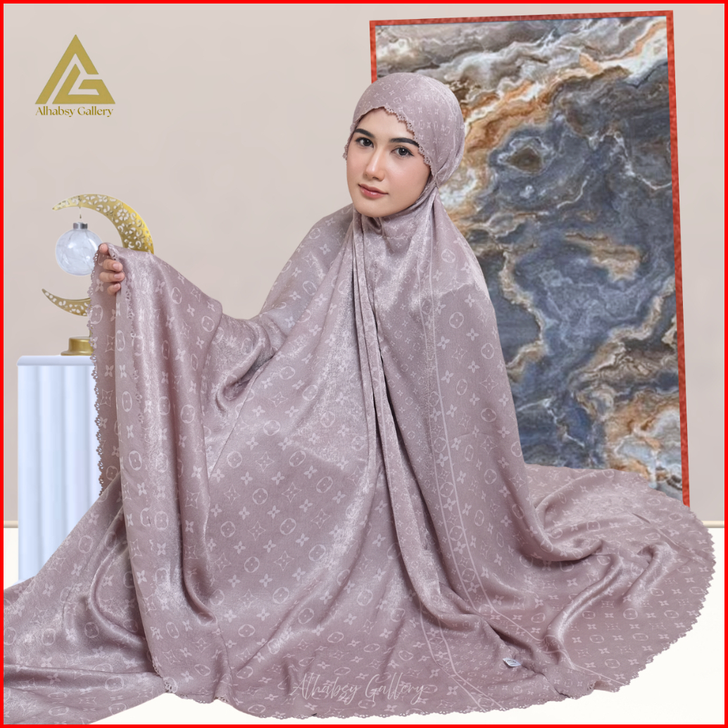 Alhabsy Gallery Mukena Dewasa Santorini Shimmer Silk Motif Premium Lora Series Alhabsy