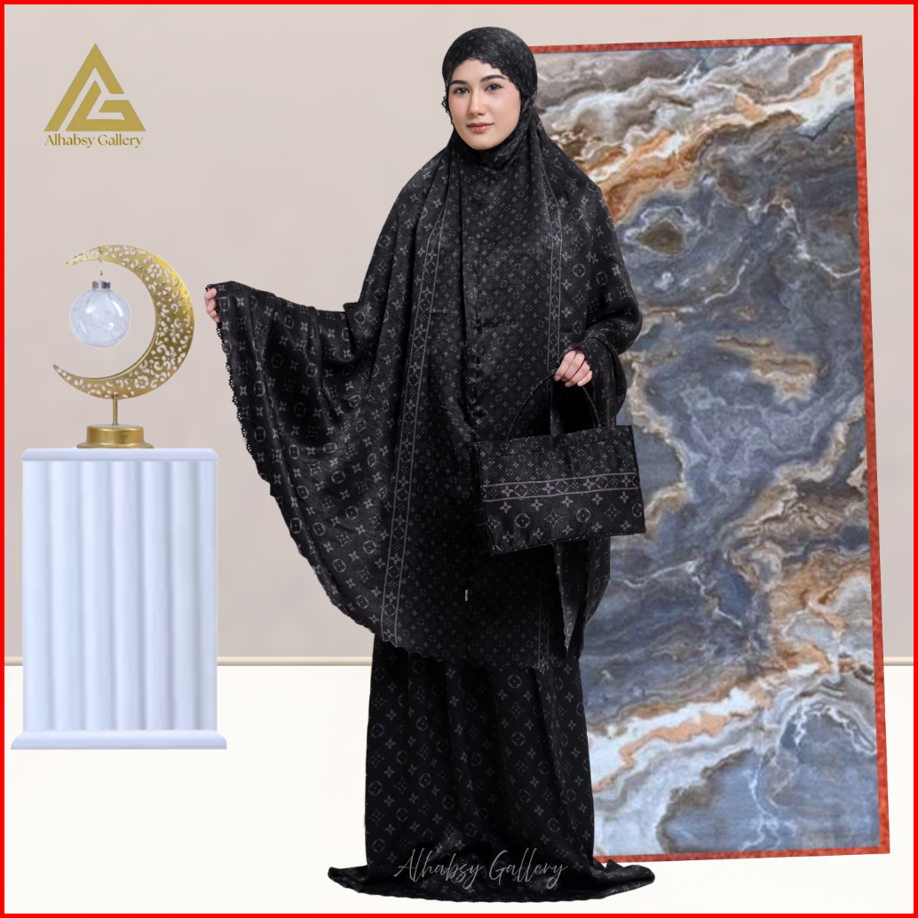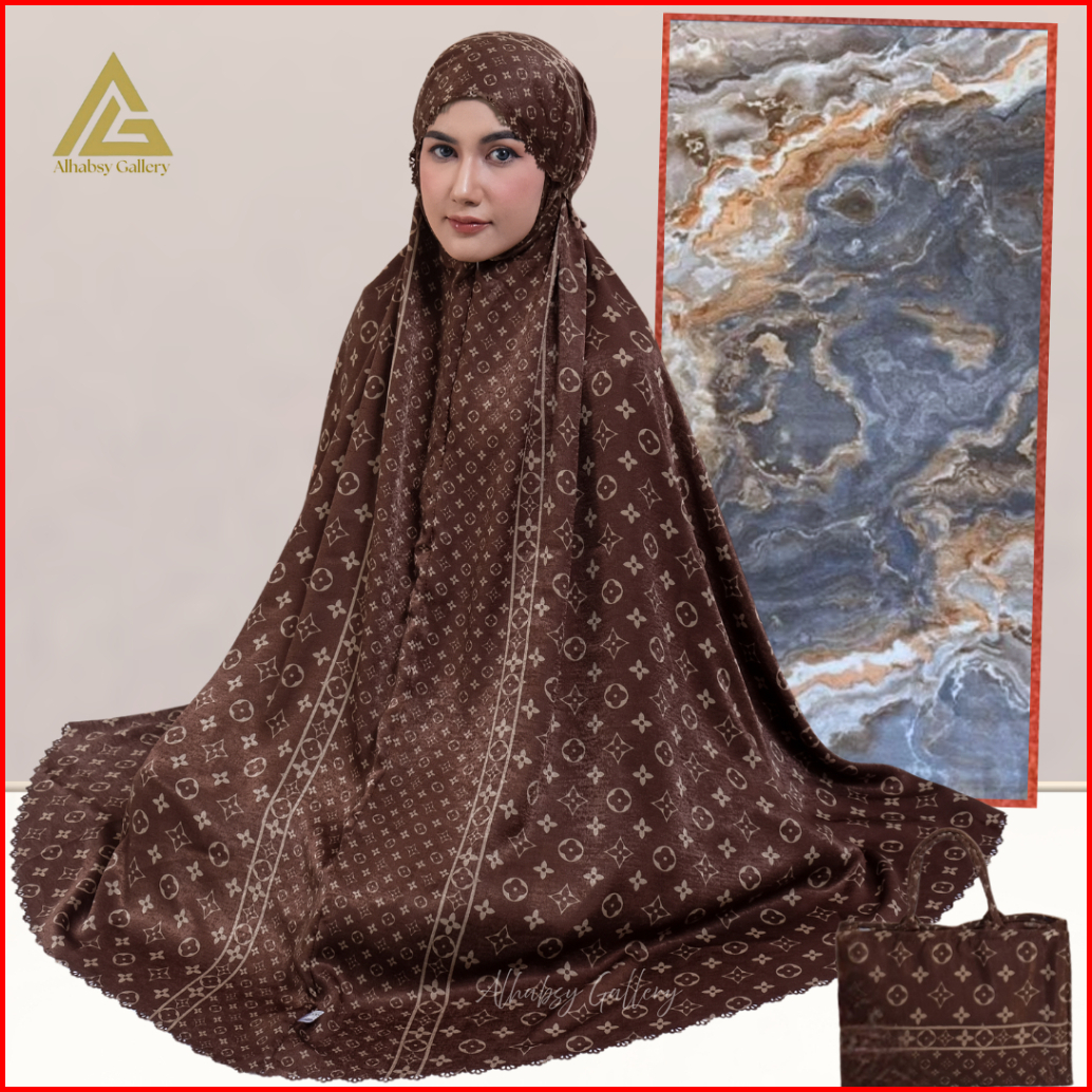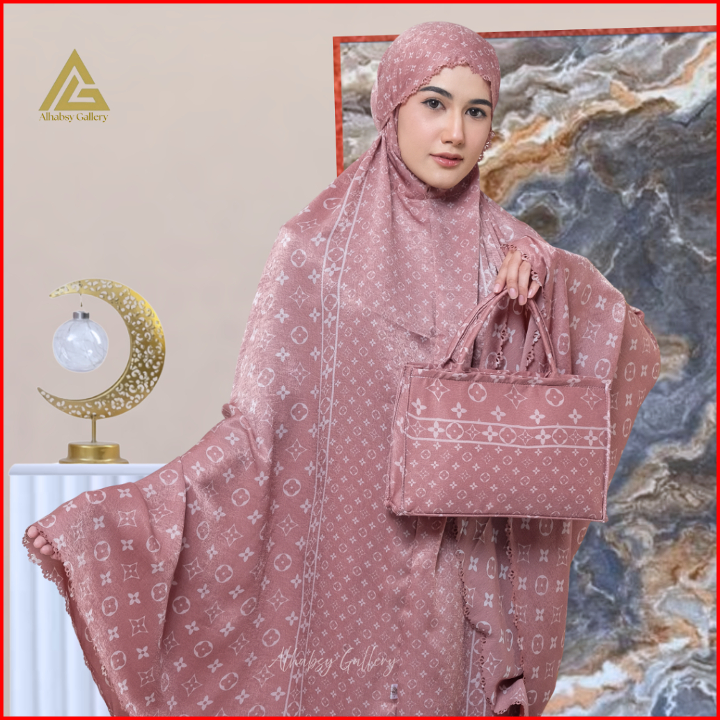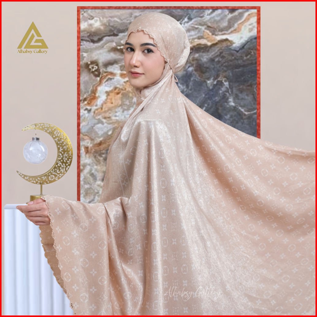 Alhabsy Gallery Mukena Dewasa Santorini Shimmer Silk Motif Premium Lora Series Alhabsy