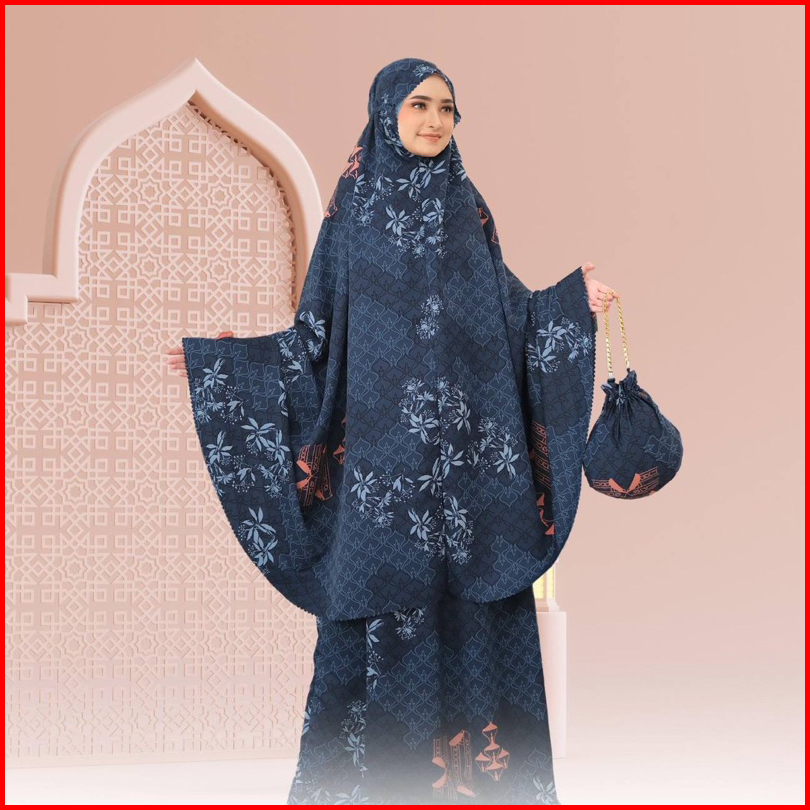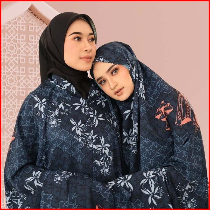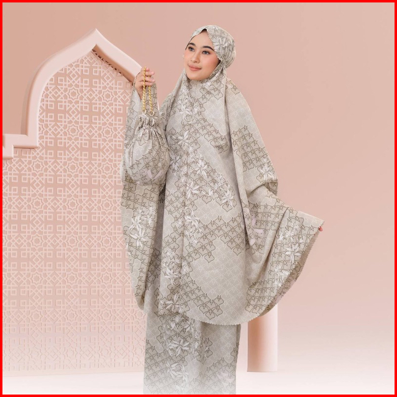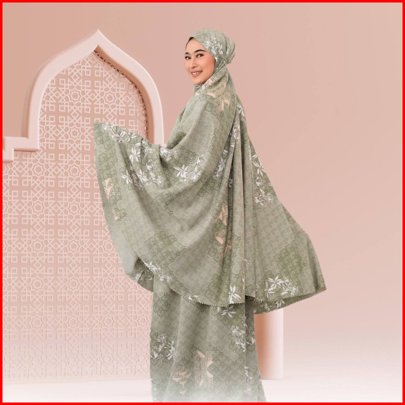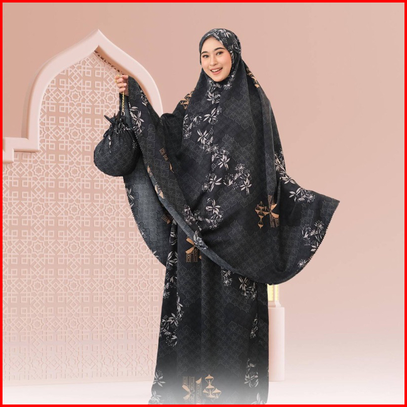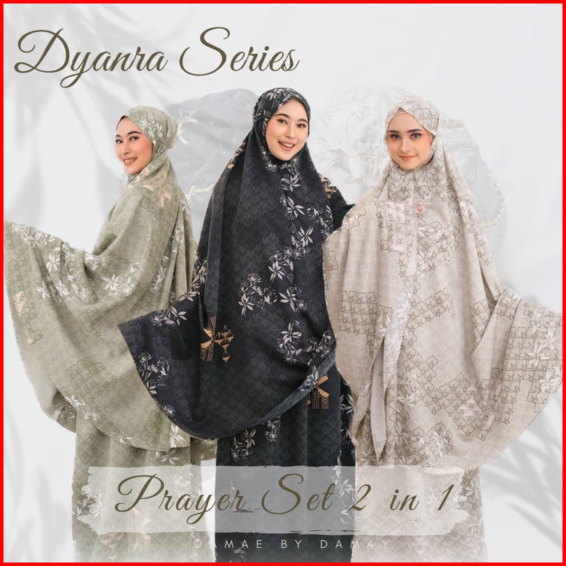 Dyanra Prayerset 2in1 Mukena Silk Motif Premium Lasercut Amberlight Rich Black Eastblue Grasshail
