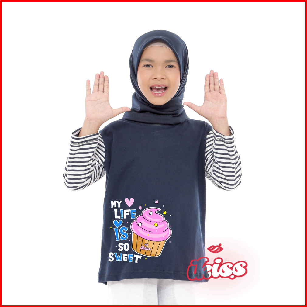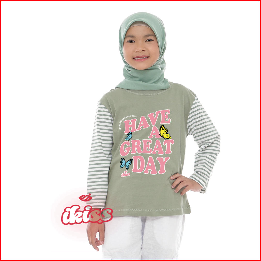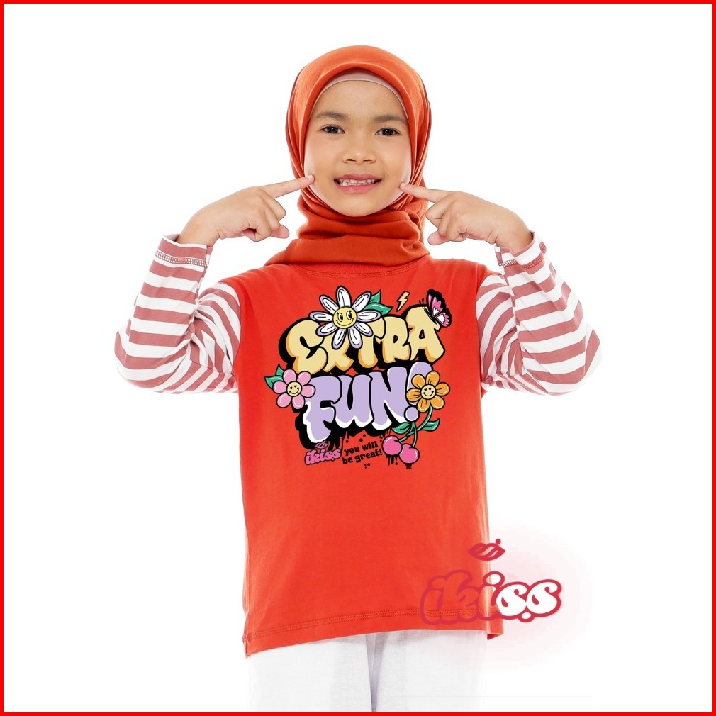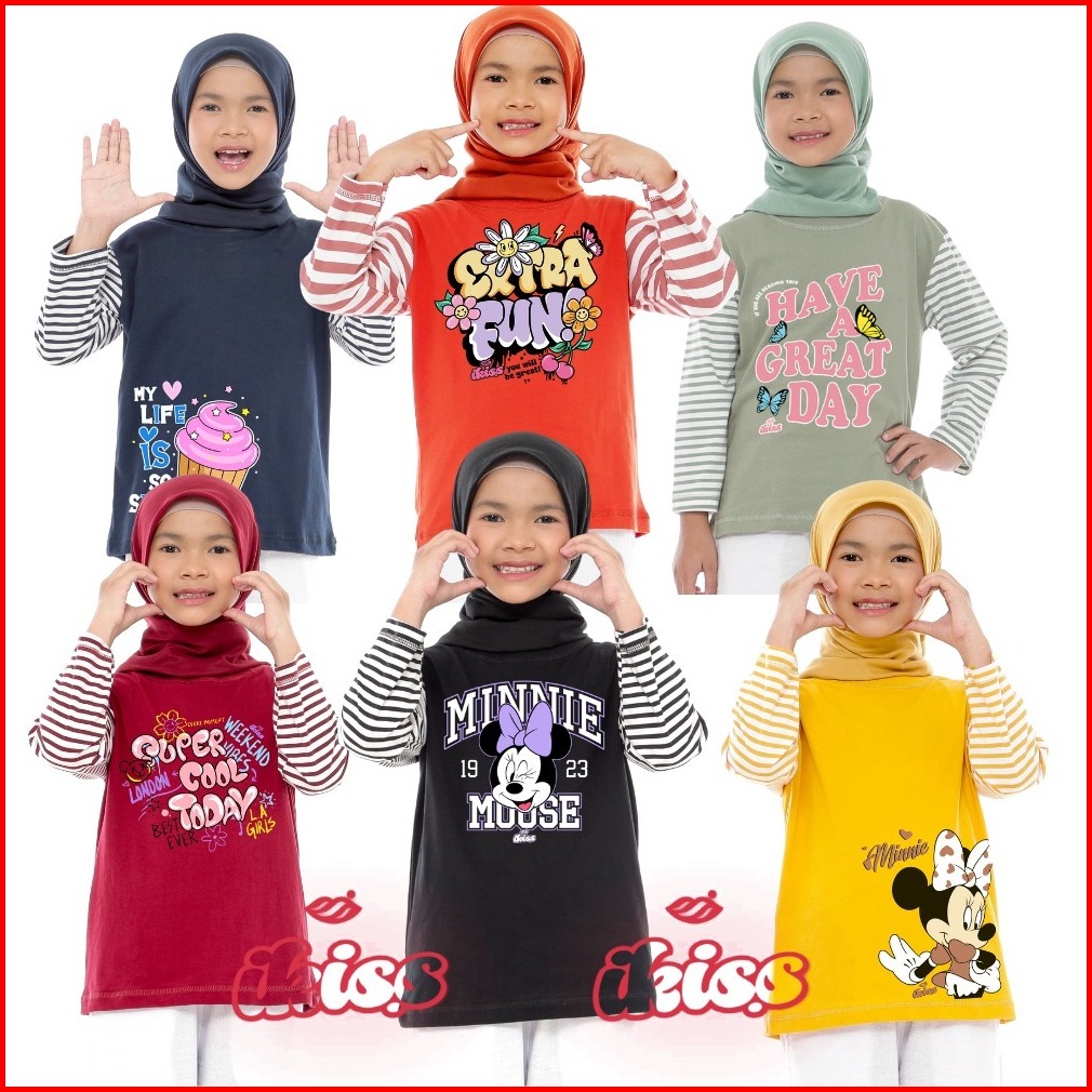 Atasan Kaos Anak Perempuan Lengan Panjang Salur Stripe 5-14 Tahun Desain Lucu Keren Kekinian