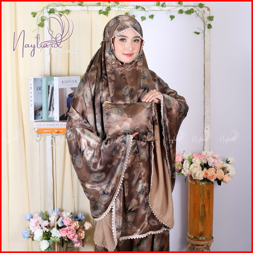 Mukena Dewasa 2in1 Santorini Silk Motif Premium Renda Mewah Jumbo