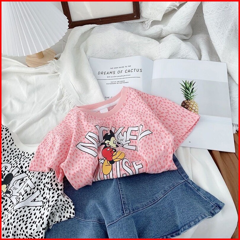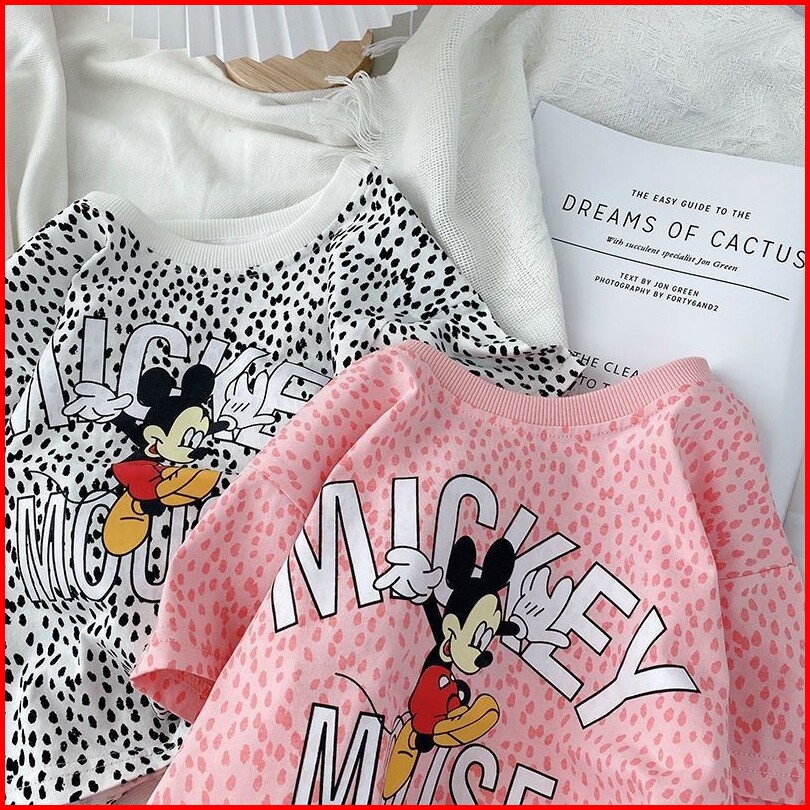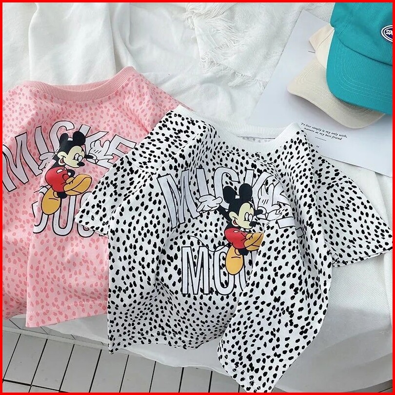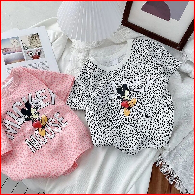 Baju Kaos Lengan Pendek Anak Perempuan Motif Mickey Mouse Bahan Lembut