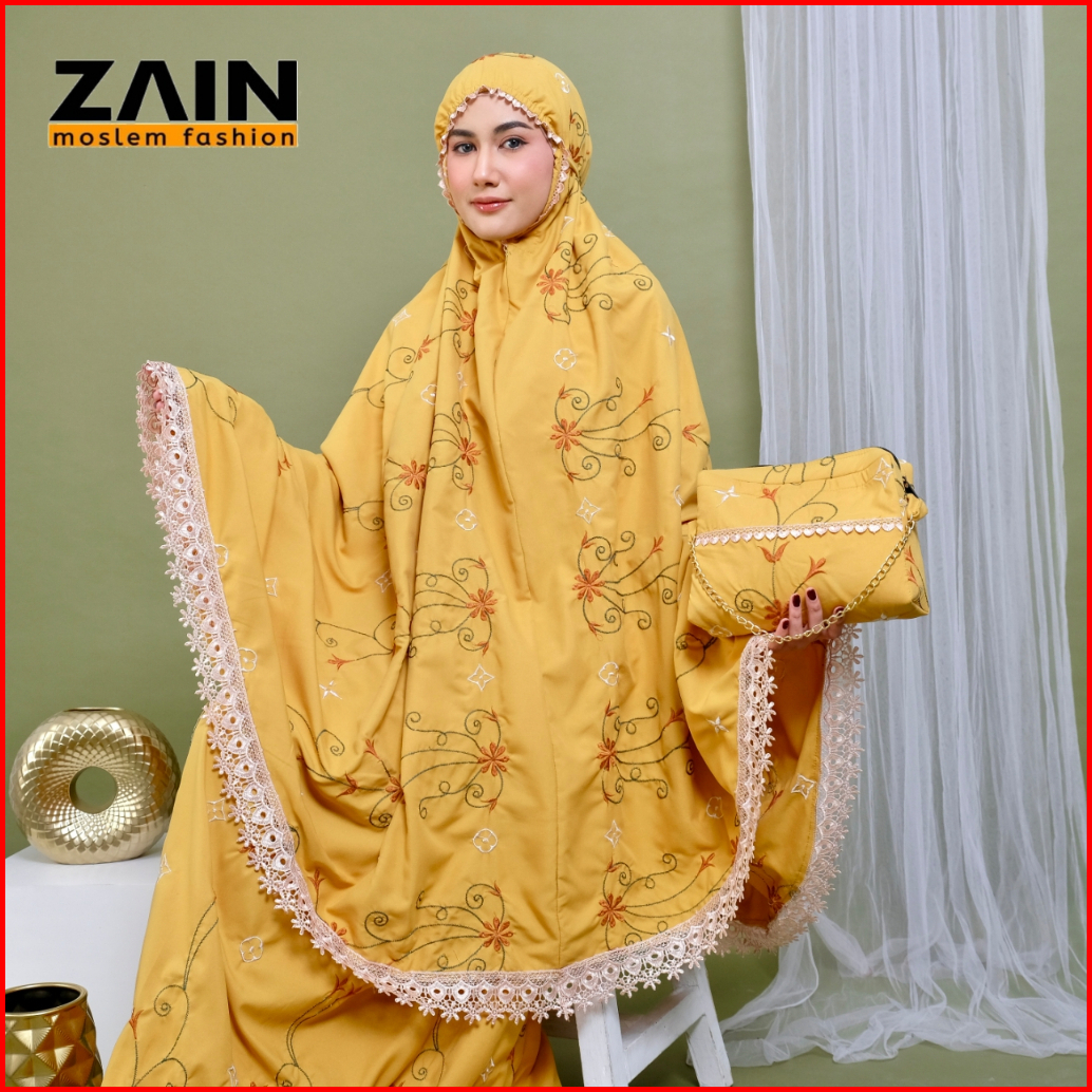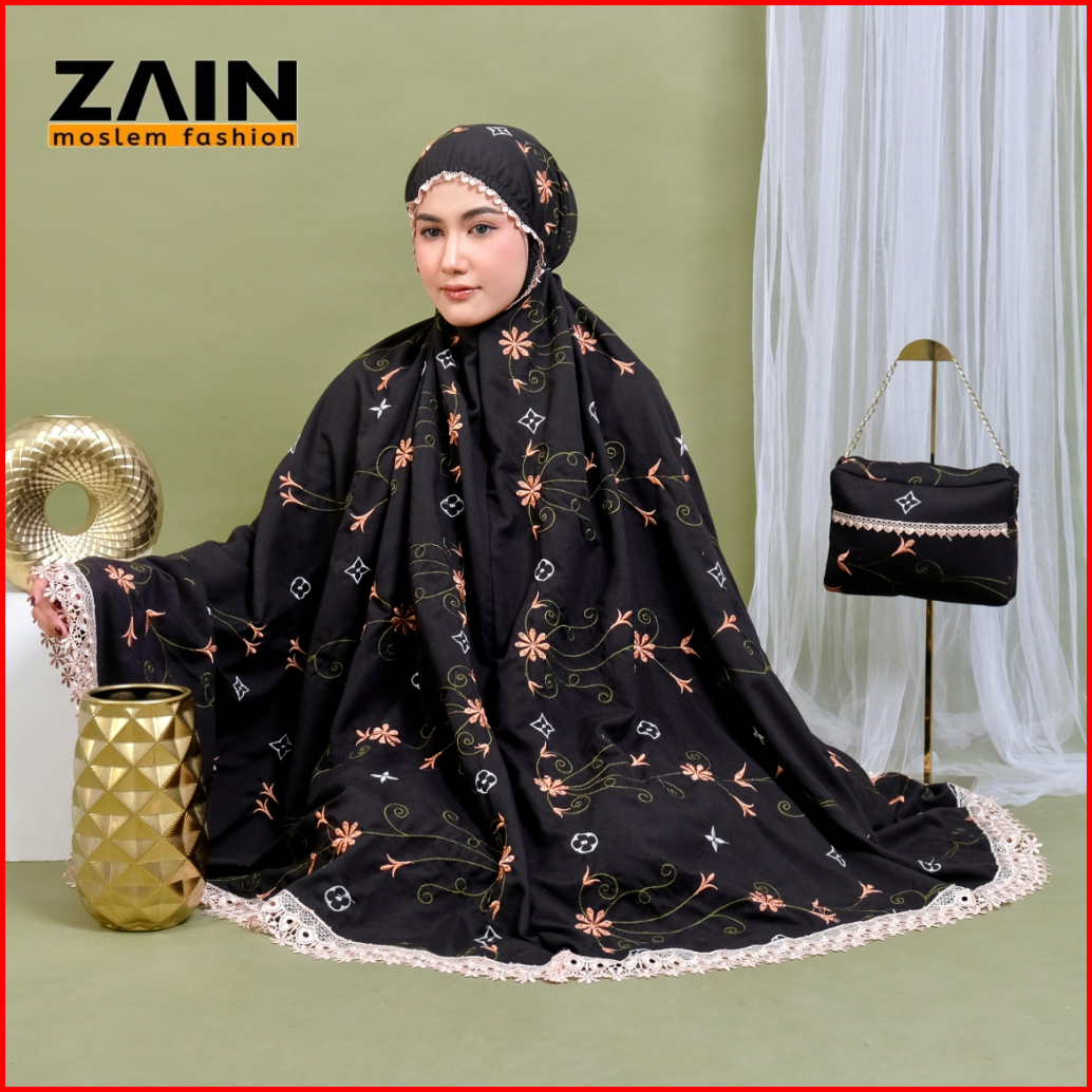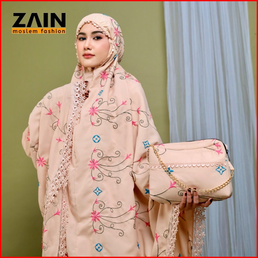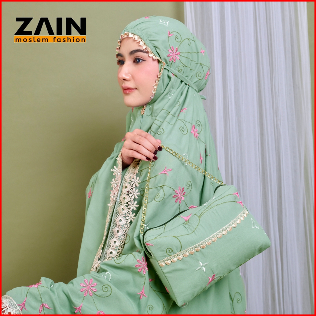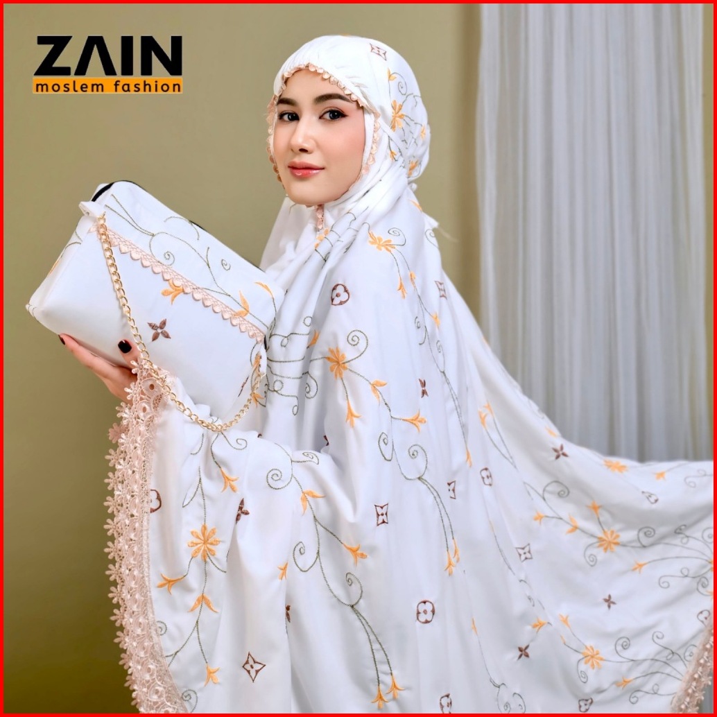 Mukena Dewasa 2in1 Katun Premium Bordir Bunga Santorini Mewah Exlusive - Zain Moslem Fashion
