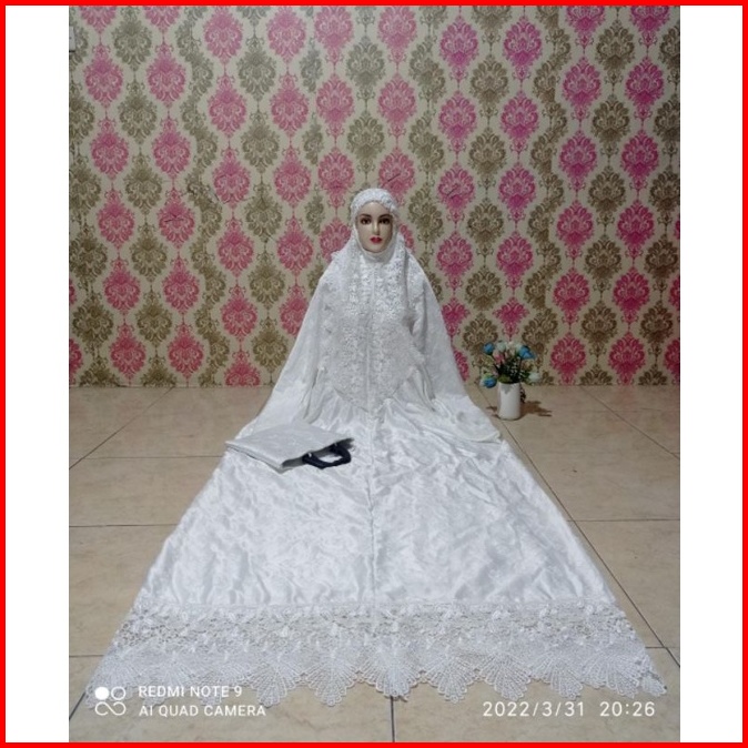 Mkr-mukena Terusan Fatimah Putih Murah Mukena Terusan Dewasa Prada
