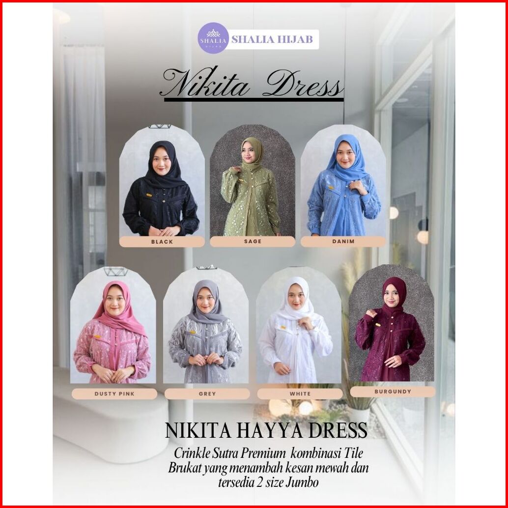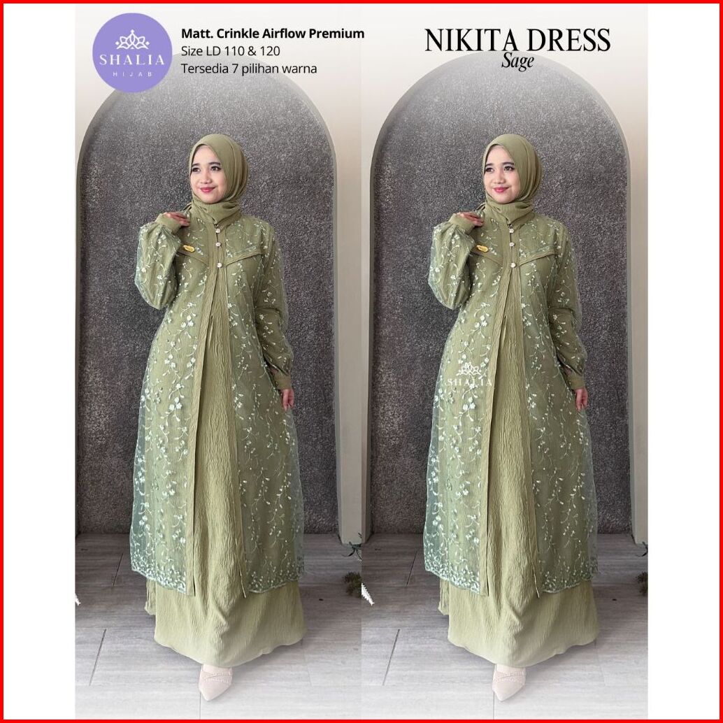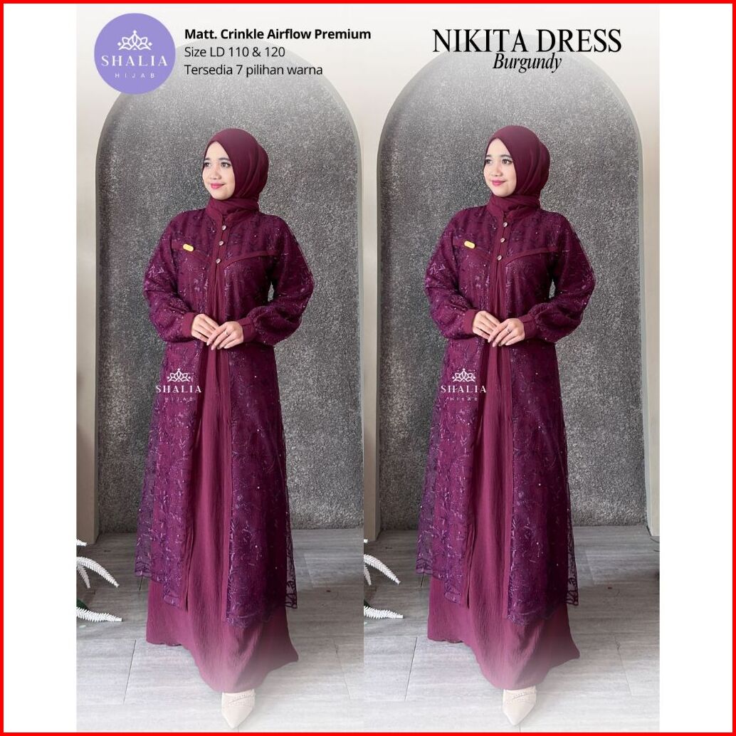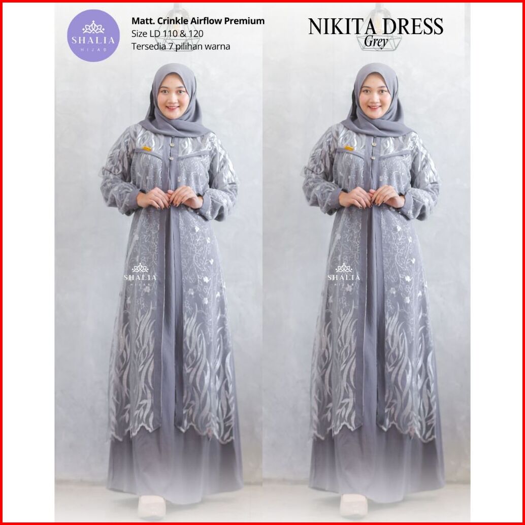 Shalia Hijab - Nikita Hayya Dress Gamis Crinkle Mix Brukat Dress Gamis Pesta Kondangan Xl Xxl Jumbo